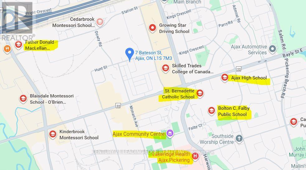 Welcome to 7 Bateson St, Ajax, an elegant residence nestled in the prestigious Hunters Crossing community in the heart of Downtown Ajax. This contemporary 3-storey townhome with a traditional front-garage design offers refined urban living surrounded by premium amenities, transit, top-rated schools, and scenic parks. Thoughtfully designed with 3 spacious bedrooms, 3 beautifully appointed bathrooms, and a generous den nearly the size of the primary suite, this home delivers exceptional flexibility-perfect as a private home office, executive retreat, or additional bedroom. The intelligent layout maximizes light, flow, and functionality, ideal for modern lifestyles. The luxurious primary bedroom features ample closet space and a private ensuite, creating a serene escape at the end of the day. Two additional bedrooms offer comfort and versatility for family or guests. Enjoy the convenience of a new front-loading washer and dryer and the efficiency of a tankless, on-demand water heater, combining comfort with sustainability. Ideally located just minutes from GO Transit, major highways, shopping, dining, community centres, and everyday essentials, this home offers effortless connectivity without compromising on style or comfort. Hunters Crossing is the destination of choice for discerning buyers seeking sophisticated living in a vibrant, walkable neighbourhood. This exceptional home must be seen-view the virtual tour and photos to fully appreciate the quality finishes and thoughtful design. (42022979)