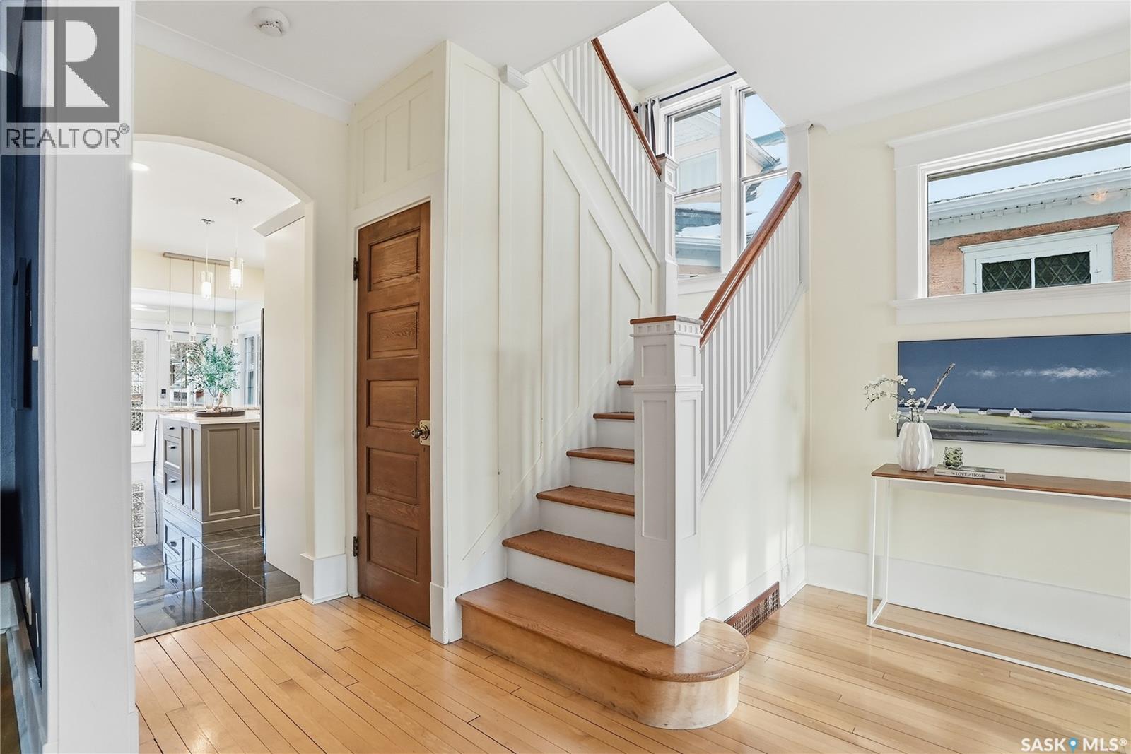 Don’t miss this INCREDIBLE character home in one of Saskatoon’s most desirable neighbourhoods! A stately family home with a fully developed basement with separate entry. This property exudes pride of ownership with charm and professional updates throughout. Enter into the main floor to find a welcoming sunroom and lrg foyer, living room with wood burning fireplace, and a formal dining with a bay window. At the heart of the home is a chef’s DREAM KITCHEN- spacious and beautifully appointed with quartz countertops, stainless appliances, and a sit-up eating area that opens onto a sitting room, overlooking a large deck and private yard. A 2-pc bath completes the main. Upstairs, you’ll find 3 bedrooms: a primary suite with an ensuite and a charming private deck of the master. Two additional lrg bedrooms and a newly renovated 3-piece bathroom complete 2nd flr. Large windows flood every room with natural light, highlighting the significant character. Extensive renovations and upgrades have been meticulously completed recently, blending heritage with modern class. The unique dev basement offers a modern living room, lounge and 1 bed layout with a sep entrance, 4-pc bath, 2 x laundry, kitchen, and a family room w/ gas fireplace — ideal for additional cash flow. The oversized, heated att garage includes a large attic storage area above. The front yard is low maintenance with a stamped concrete driveway providing parking 3 vehicles. The private backyard will impress w/manicured grounds: a two-tiered deck, garden boxes, artificial turf, curbing, and climbing vines. In total, there are three decks, including a covered front deck and the private balcony of the master. Upgrades include: furnace, hot water heater, shingles, garage, decks, kitchen, two bathrooms, basement development, many new windows, updated exterior, and driveway — the list goes on! This gem is ideally situated within walking distance to the river, downtown, U of S, and all hospitals, the location is unbeatable! (29319517)