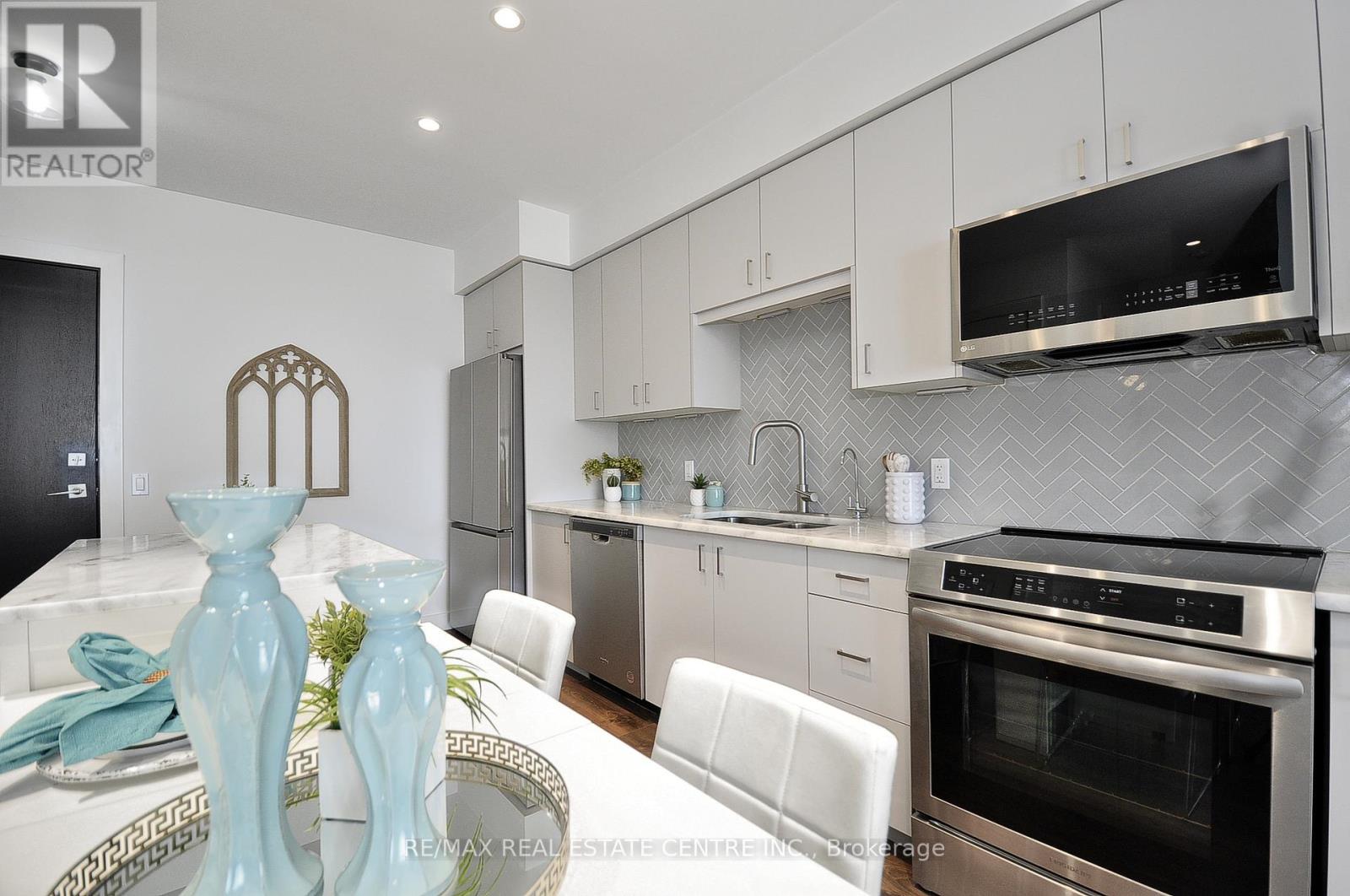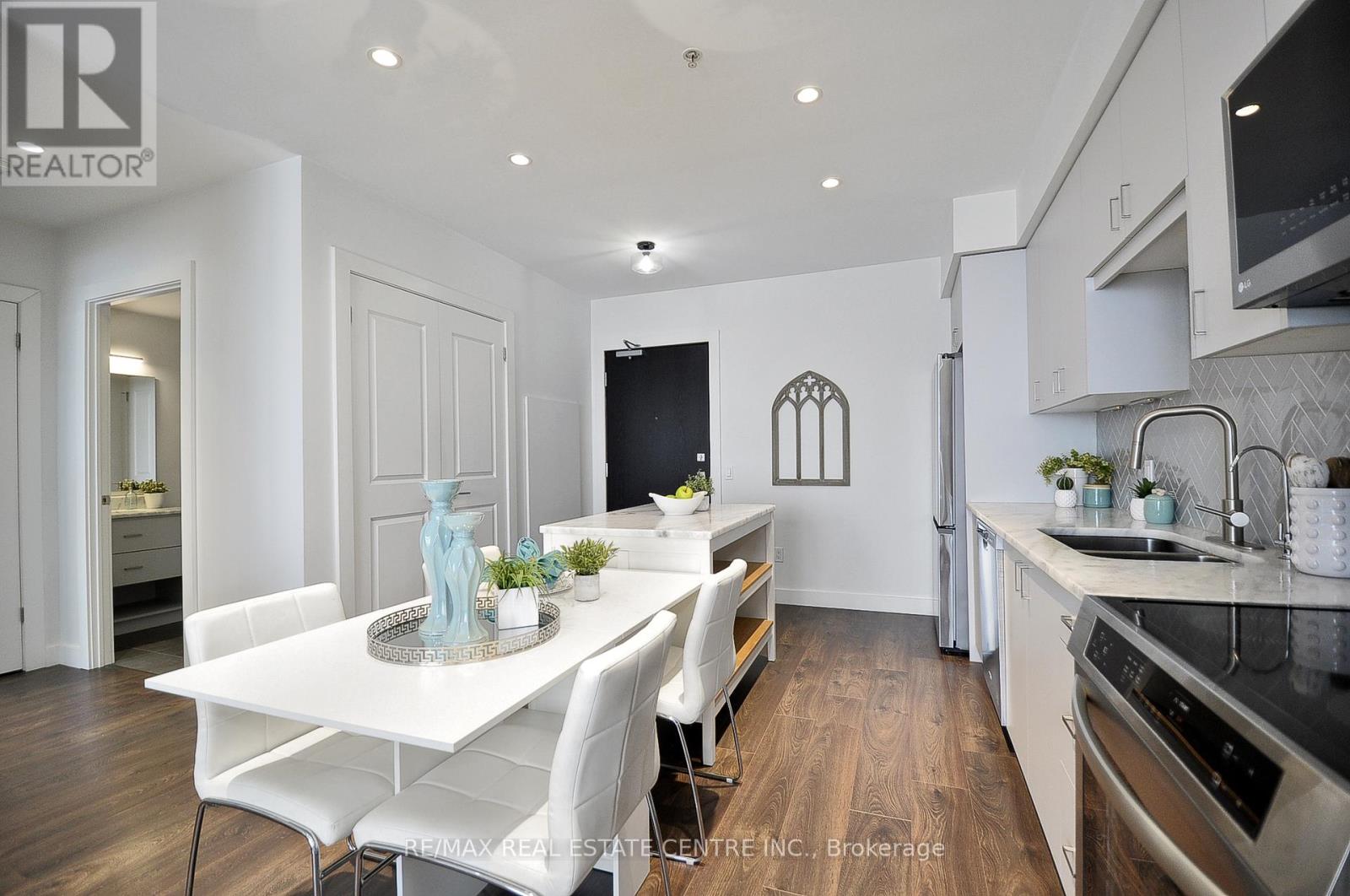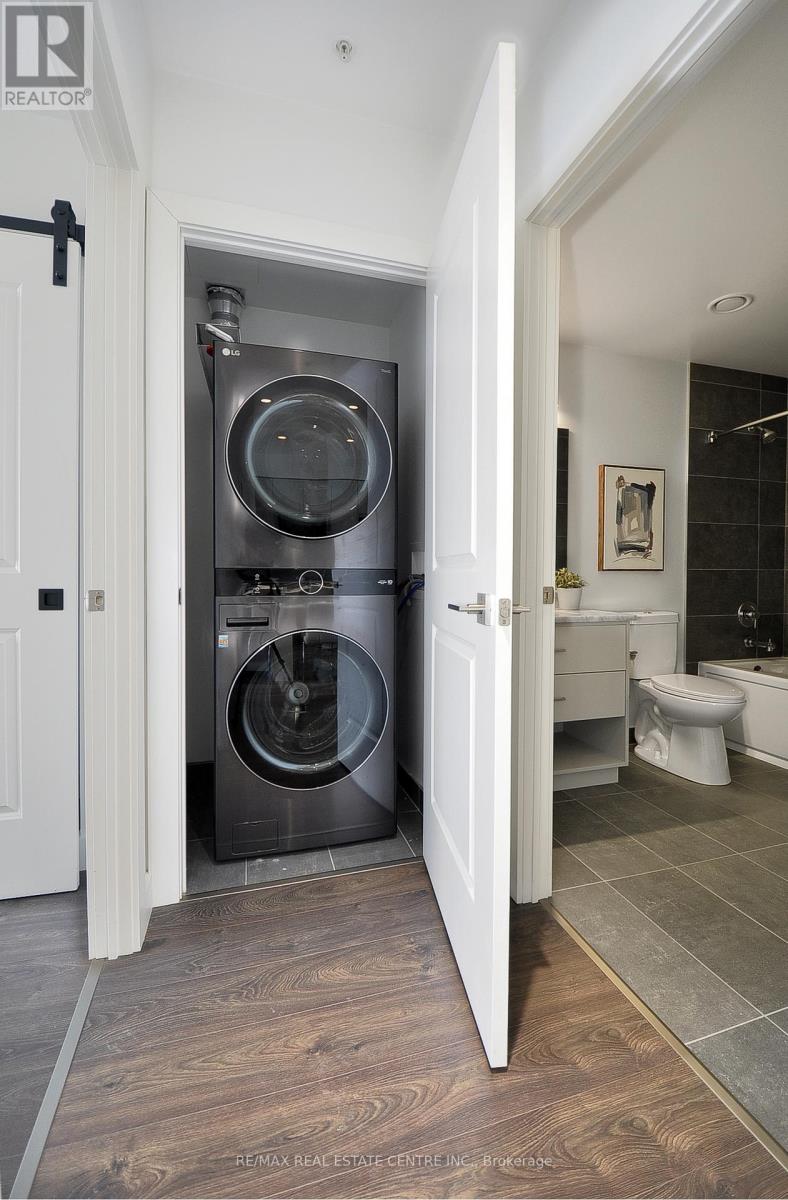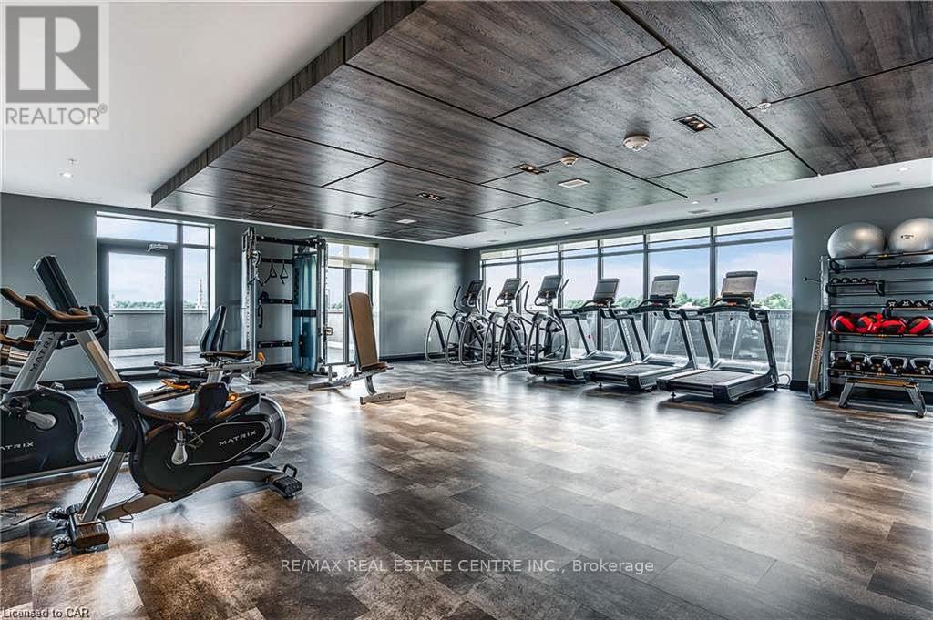This elegant and spacious 2-bedroom, 2-bathroom apartment is completely move in ready, located in the Gaslight District. A beautifully designed suite offering a bright open-concept kitchen and living area, enhanced by custom built-ins and expansive windows that flood the space with natural light. Upgraded appliances, pull out cabinetry in the pantry, and other closet built ins. Both bedrooms and the living room feature direct walkout to the expansive balcony, creating an inviting indoor-outdoor living experience. The primary ensuite is complete with double sinks, while in-suite stacked laundry adds everyday convenience. Both bathrooms are 4 piece. Reverse osmosis system, and one out of the two parking spaces is equipped with EV plug for an electrical car. Residents enjoy access to premium amenities, including a fully equipped fitness centre, outdoor terrace, and stylish event spaces. Ideally located just moments from downtown Galt's renowned restaurants, cafés, markets, and more. (42023158)