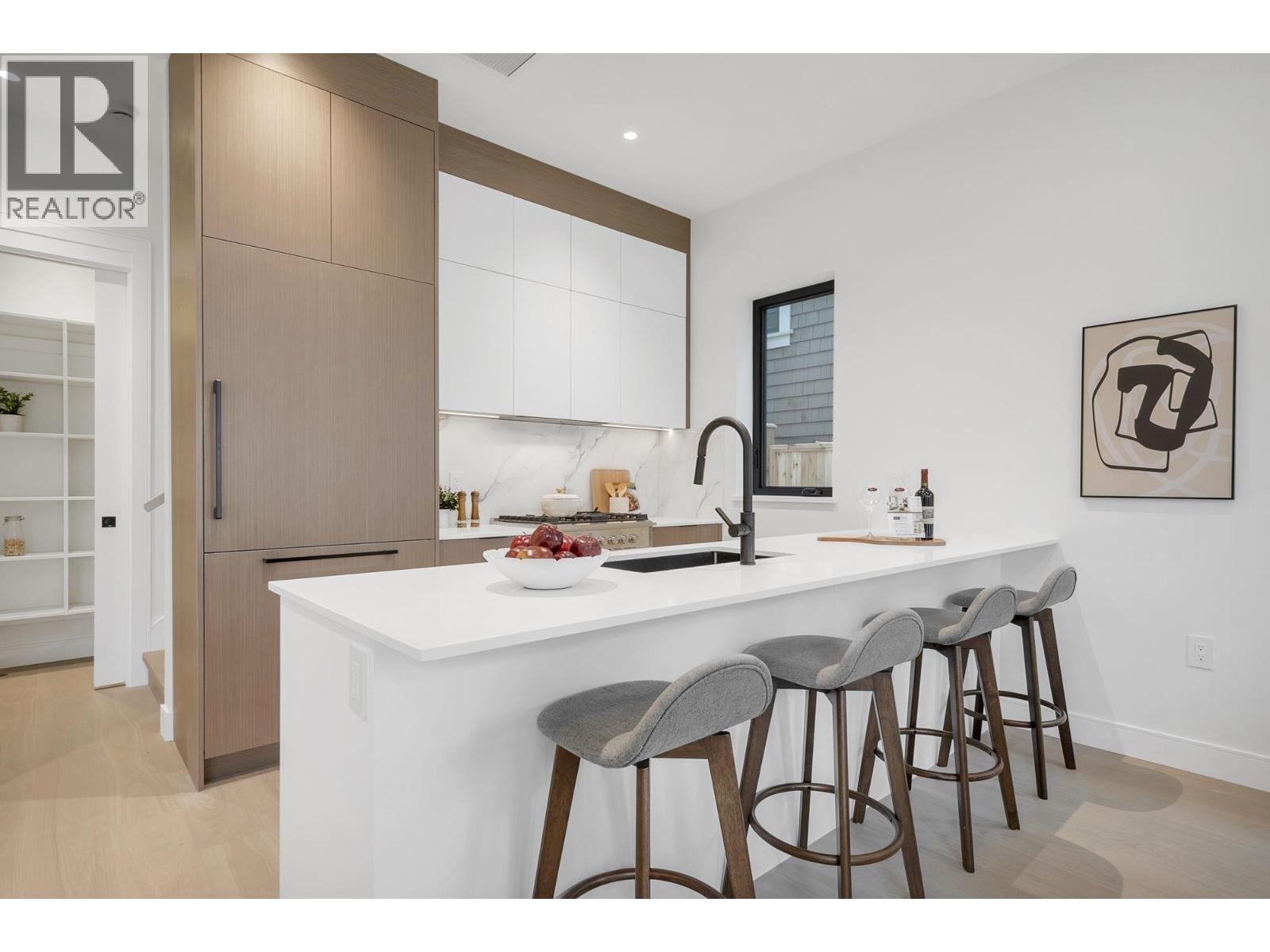 ESSENTA presents this gorgeous new 4BR, 4BA home located in PRIME DUNBAR, 2 blocks from LORD BYNG SCHOOL. The main floor features SOARING 10ft ceilings w custom millwork throughout, in-ceiling Bluetooth speakers, fireplace, a chef´s kitchen with pantry, Fisher Paykel'PRO SERIES' appliances and large French doors opening into a raised patio area overlooking the manicured rear yard. Upstairs you´ll find 2 large ensuited bedrooms, including a master suite with huge walk-in and custom built-ins. Enjoy a spacious laundry area with stacked machines and a folding counter. The top floor contains 2 BR's, with ample storage and a large patio. Additional features include engineered hardwood, LED lighting, heat pump, window coverings, alarm and much more. Located steps from Lord Byng & QE School/Park. (32375535)
