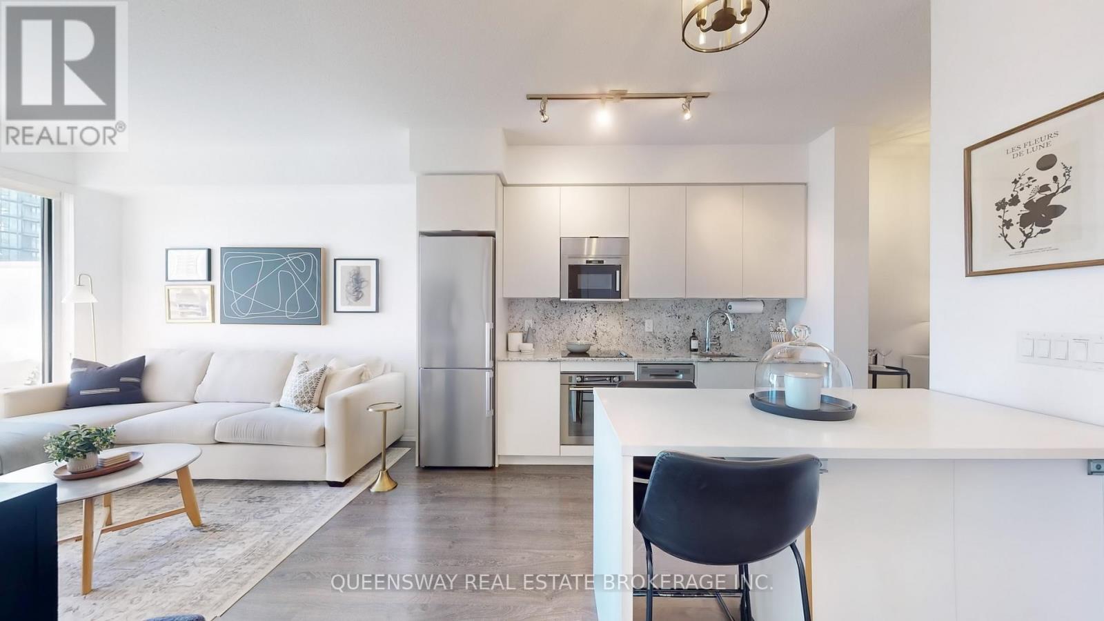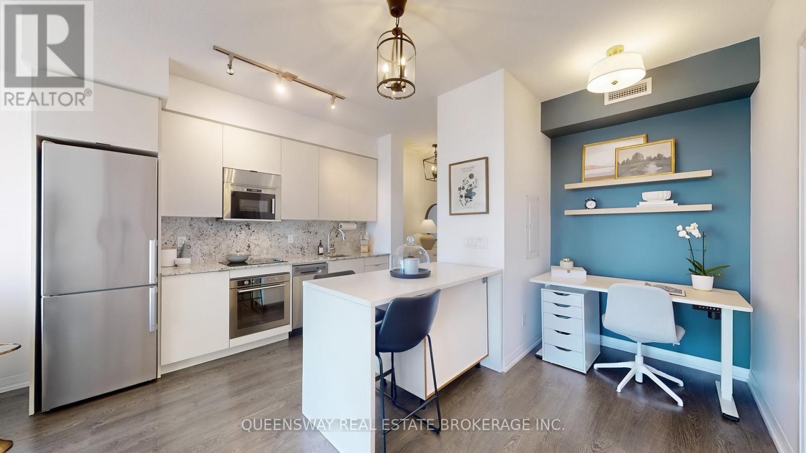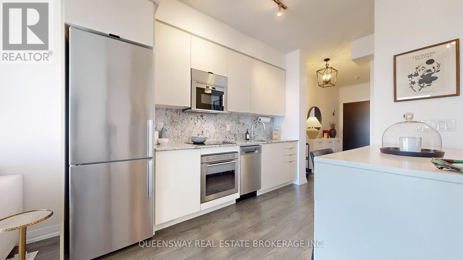 Welcome to this Luxury Tridel-Built 1+1 condo offering 9 ft ceilings and a smart, functional layout. Featuring upgraded quartz countertops, backsplash, light fixtures, and a large balcony, this unit blends modern finishes with everyday comfort. Enjoy the convenience of 1 parking spot and 1 locker, located close together for easy access. Low maintenance fees compared to the surrounding area add even more value. Unit is currently occupied by a corporate tenant paying premium rent, offering strong income appeal. Situated in the heart of midtown, just steps to transit (TTC Subway & LRT), retail, dining and more. A strong layout in a prime location for first-time buyers or investors! Building amenities include a 24-hour concierge, visitor parking, outdoor pool, gym, yoga studio, sauna, theatre, guest suites, and party room-offering a complete lifestyle right at home. (42023325)