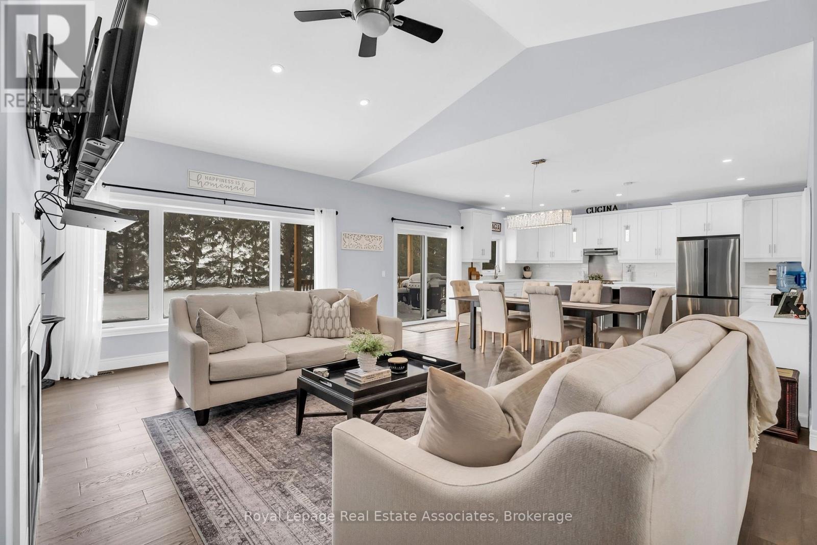 This stunning custom-built bungalow showcases exceptional craftsmanship, timeless style, and thoughtful design throughout. Built six years ago, the home offers elegant bungalow living with a bright, open-concept layout that is both impressive and highly functional. The home is completely carpet-free, featuring engineered hardwood flooring throughout.At the heart of the home is the beautifully designed kitchen, complete with quartz countertops, stainless steel appliances, pot lights, and a large centre island ideal for gathering and entertaining. The open-concept dining area flows seamlessly from the kitchen and offers a walk-out to the covered deck, extending the living space outdoors. The open-concept living room features cathedral ceilings, a cozy fireplace, and pot lights, creating a warm and inviting atmosphere.The spacious primary suite is a true retreat, featuring pot lights, a walk-in closet with custom built-ins, and a luxurious 5-piece ensuite designed for comfort and relaxation. Two additional bedrooms on the main floor are generously sized and include double-door closets. Main floor laundry adds everyday convenience, features a walk-in pantry, and offers direct access to the 3-car garage.The basement provides approximately 2,000 sq. ft. of additional living space, including a bedroom, a rough-in bathroom, and an abundance of storage.All you need is flooring to complete the basement. Outside, enjoy a serene backyard oasis set on a picturesque 1.01-acre lot. Relax under the large covered deck, unwind in the hot tub, or spend summer days by the above-ground pool, all while taking in the peace and privacy of country living.Located just 15 minutes from Shelburne for everyday amenities, this exceptional property offers the perfect blend of rural tranquility and modern convenience. Fibre optic cable and internet available. (42024227)