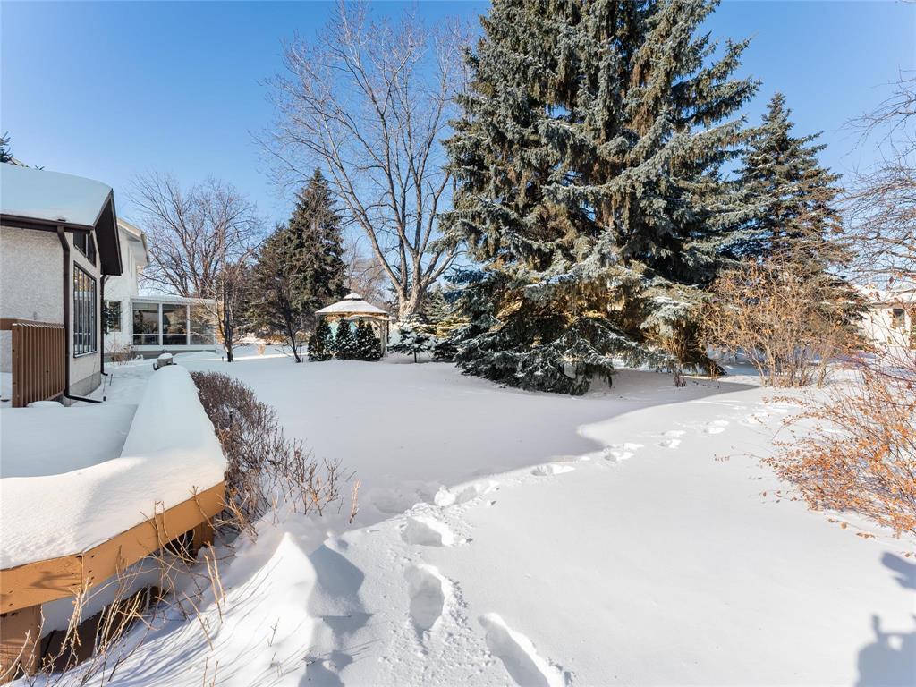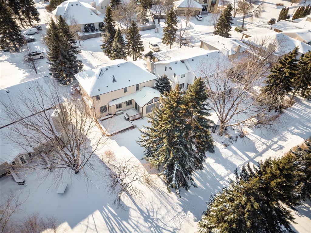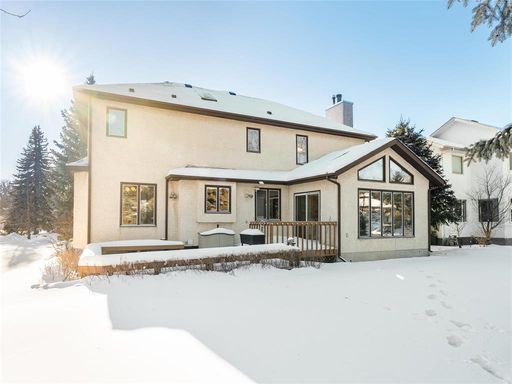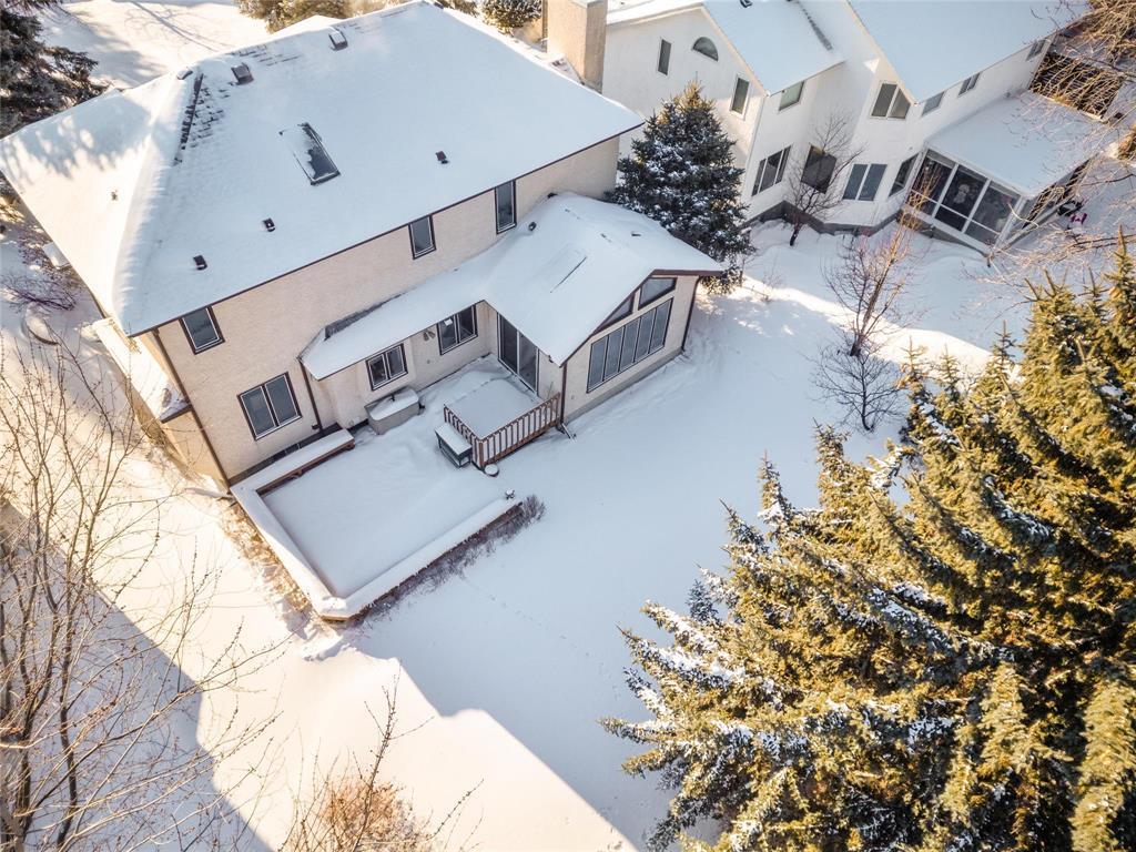 4E//Winnipeg/SS Jan 28, Offers 02/03 - OH 01/31 & 02/01 - 2-4pm. Welcome to 59 Summerview Lane. A beautifully maintained, well-built family home offering 2,177 sq. ft. of comfortable living space. This 3 bedroom, 2.5 bath home features a grand open foyer with a curved oak staircase, formal living and dining rooms, and a sunken family room highlighted by a reclaimed brick wood burning fireplace and wet bar. The eat-in kitchen includes granite countertops (directly harvested from the Whiteshell region), updated stainless steel appliances (Double Ovens '25, DishWasher '22), a bright eat-in area overlooks the backyard. A sun-filled, insulated sunroom with skylights opens to a spacious two-tier deck perfect for relaxing or entertaining. Upstairs offers three generous bedrooms, a main bath, the large primary suite has a jetted tub ensuite & walk in Shower. Main Floor Laundry and powder room. The full insulated basement with roughed in plumbing is ready for future development. This home also offers a double attached insulated garage, concrete driveway, central air, and underground sprinklers. A solid, timeless home in a desirable location set on a private, treed lot backing onto a walking path. Measures from plans. (231893269)