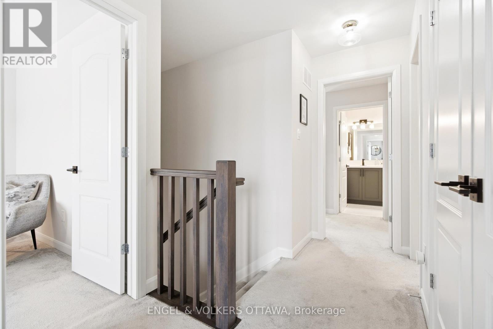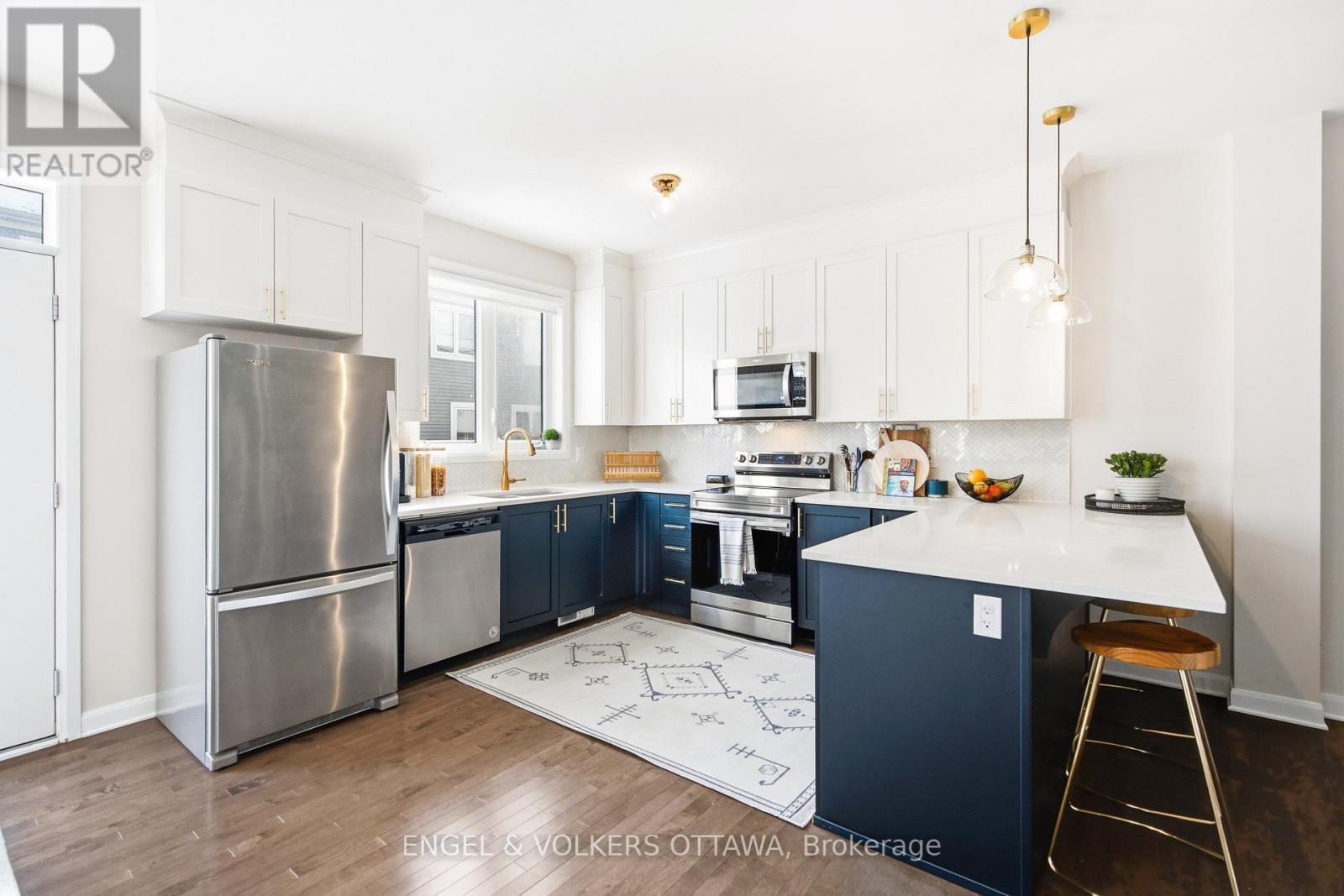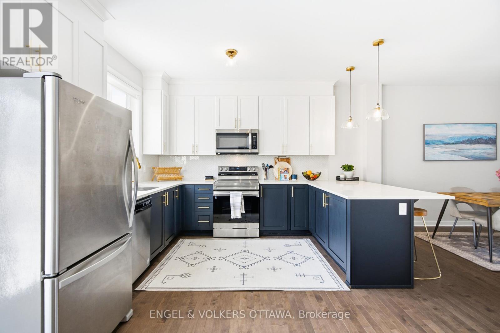 Welcome home to a property that is anything but builder basic. Every finish has been thoughtfully selected with a designer's eye. Step in and enjoy the main floor offering 9 ft ceilings and hardwood flooring flowing seamlessly throughout. An upgraded kitchen with ceiling-height cabinetry, a herringbone backsplash, quartz countertops, and pendant lighting over the peninsula. Smooth ceilings and upgraded light fixtures throughout enhance the clean, modern feel, while the living room is anchored by an elegant electric fireplace.Upstairs, the primary bedroom features a walk-in closet and a private ensuite with black faucets and upgraded lighting, along with two additional well-sized bedrooms and a full bath. The finished basement offers flexible living space with a stylish full bathroom, ideal for guests or a home office. Outside, the fully fenced backyard provides a private space to relax or entertain.Located in Orléans Village, this home is close to shopping, transit, schools, and nearby green space with walking trails. (42024303)
