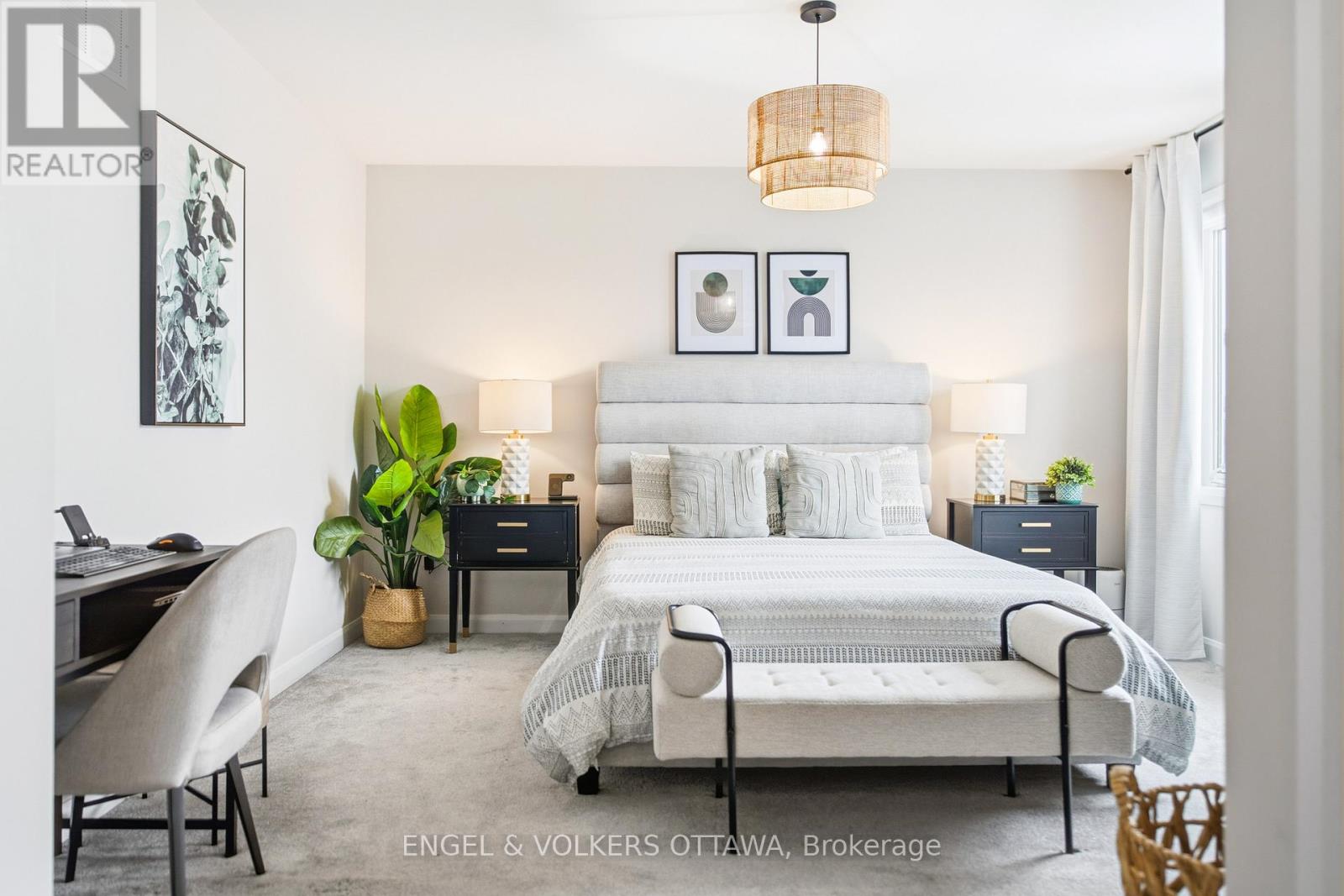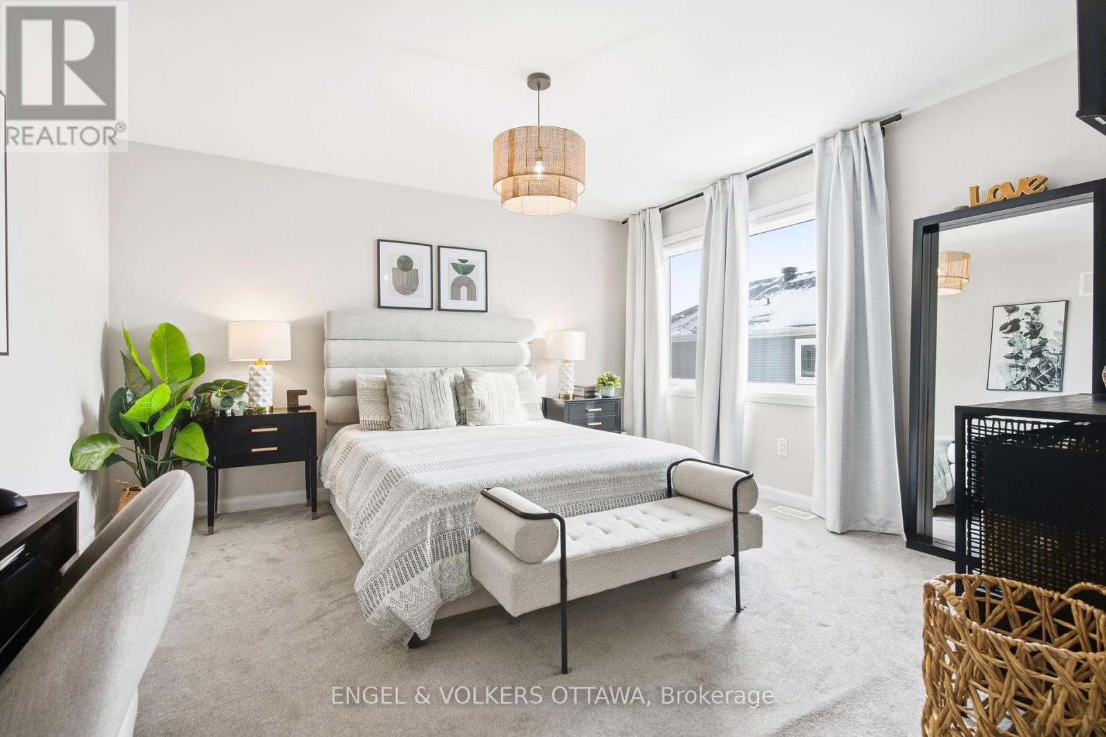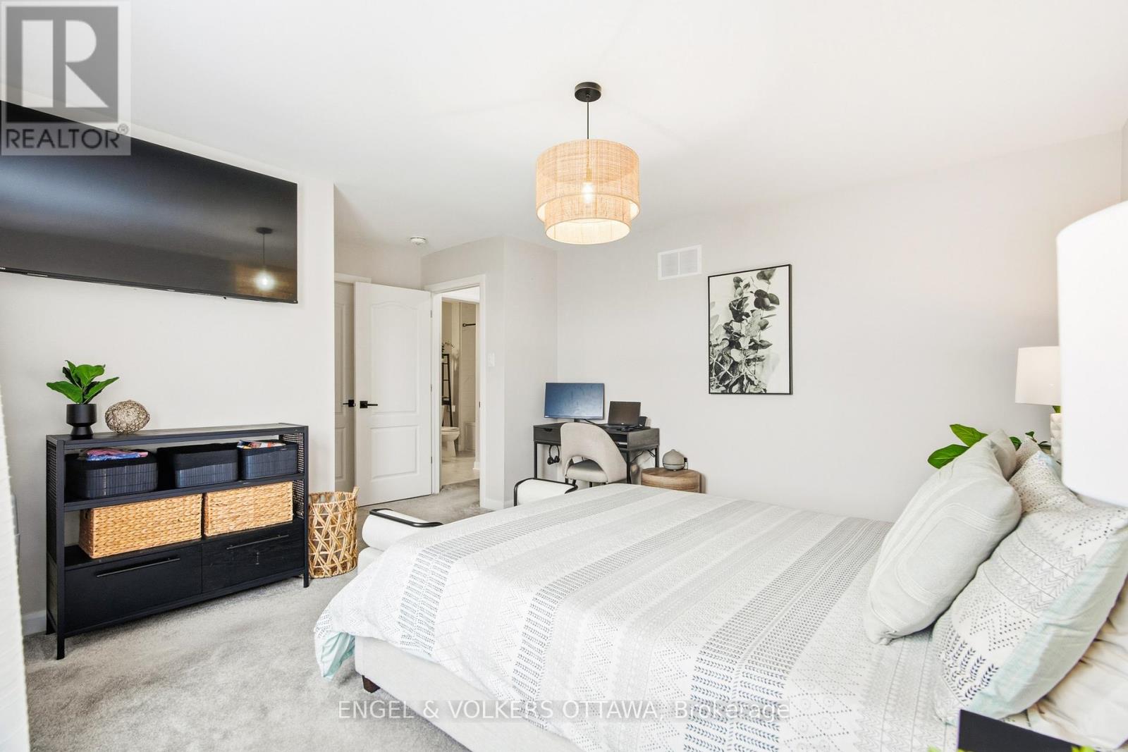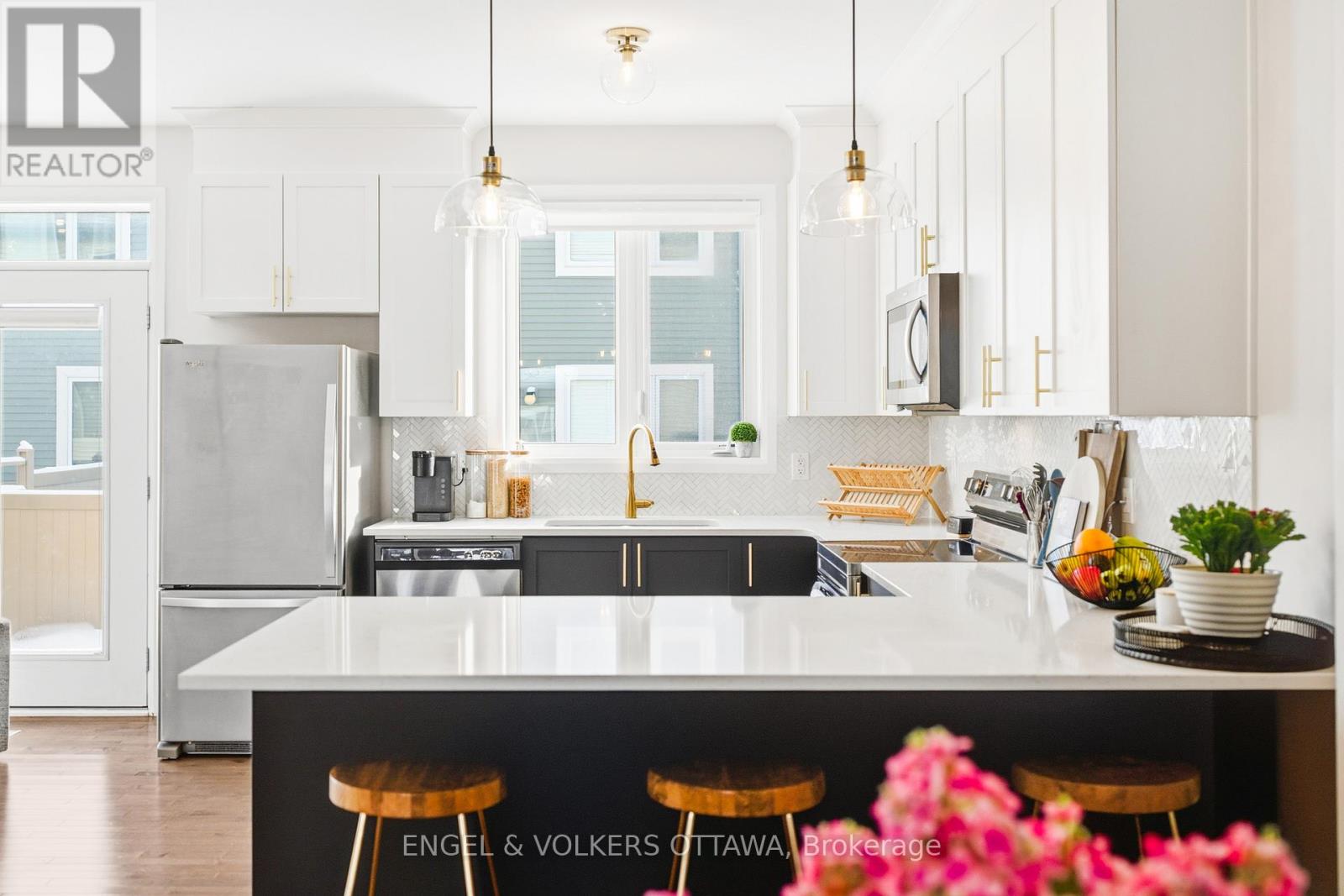 Welcome home to a property that is anything but builder basic. Every finish has been thoughtfully selected with a designer's eye. Step in and enjoy the main floor offering 9 ft ceilings and hardwood flooring flowing seamlessly throughout. An upgraded kitchen with ceiling-height cabinetry, a herringbone backsplash, quartz countertops, and pendant lighting over the peninsula. Smooth ceilings and upgraded light fixtures throughout enhance the clean, modern feel, while the living room is anchored by an elegant electric fireplace.Upstairs, the primary bedroom features a walk-in closet and a private ensuite with black faucets and upgraded lighting, along with two additional well-sized bedrooms and a full bath. The finished basement offers flexible living space with a stylish full bathroom, ideal for guests or a home office. Outside, the fully fenced backyard provides a private space to relax or entertain.Located in Orléans Village, this home is close to shopping, transit, schools, and nearby green space with walking trails. (42024303)