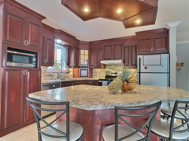 Dans un secteur calme et recherché, cette magnifique propriété saura vous séduire par son confort et son environnement paisible. Elle propose trois chambres à coucher ainsi qu'un bureau, idéal pour le télétravail ou une pièce polyvalente. La cuisine lumineuse est munie de belles armoires en merisier et d'un îlot central, offrant un espace convivial et fonctionnel. Vous bénéficierez également d'un garage double et d'un vaste terrain de 3 000 m² (32297p2). À l'extérieur, un patio couvert et grillagé vous permettra de profiter pleinement de vos soirées d'été en toute tranquillité. (38781534)