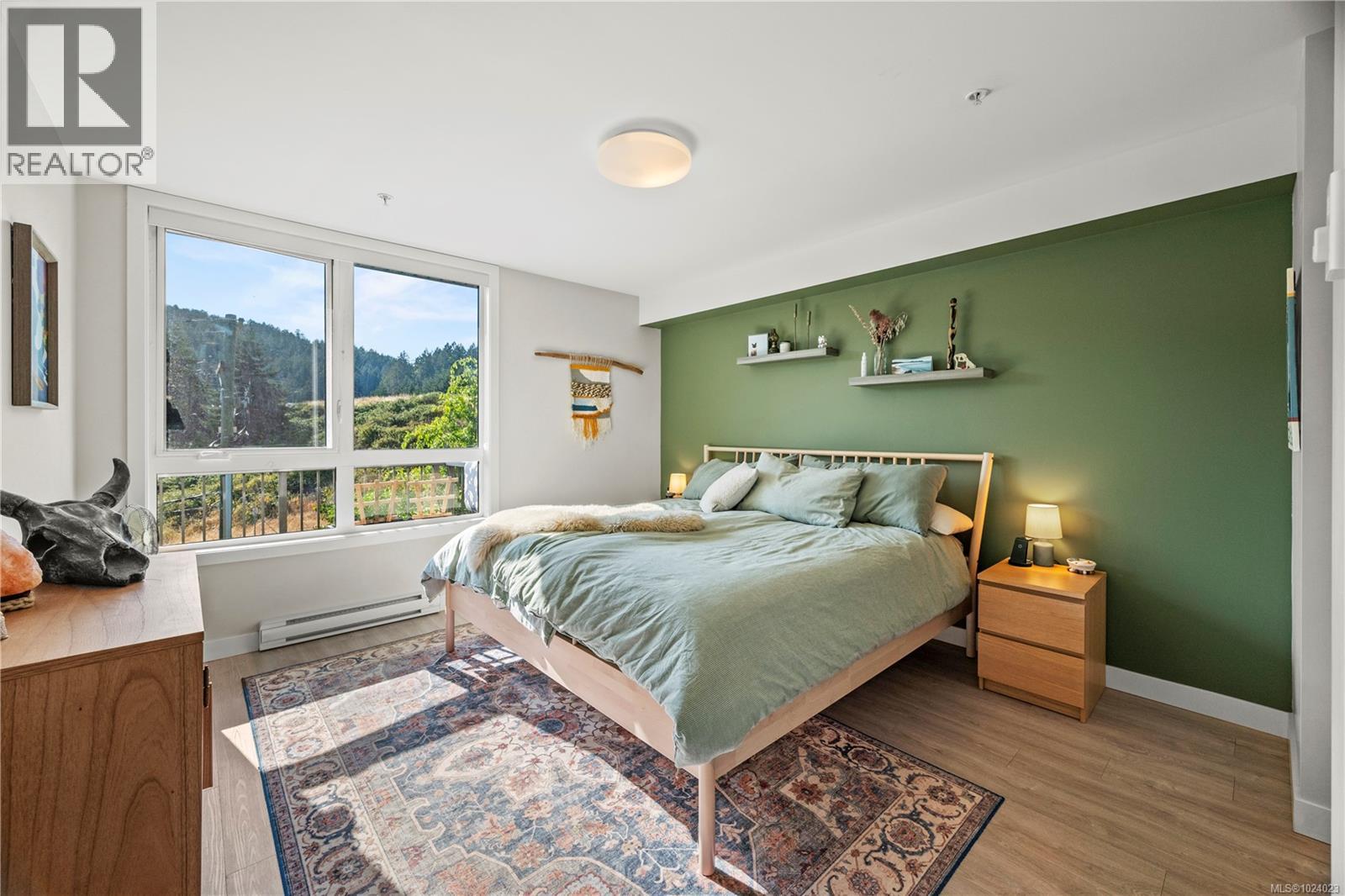 Bright and spacious 2 bed, 2 bath condo just steps from Thetis Lake and some of the best trails and recreation on the island! This 950+ sq.ft. home features a functional split-bedroom layout and south-facing exposure for tons of natural light. The large kitchen includes quartz counters, stainless steel appliances, and ample workspace. The living room opens to a generous, private balcony — no neighbours beside or across — perfect for relaxing or BBQing. The primary bedroom features a walk-through closet and ensuite, with the second bedroom and bath on the opposite side. Includes a large storage room across the hall, 1 parking stall, and lots of visitor parking. Only 9 units in the building with just two other owners on your floor and storage lockers across the hall! On the Galloping Goose and E&N bike paths and walking distance to The Nest Café and Six Mile Pub. Building amenities include bike/kayak storage and a fenced dog run. Pet-friendly with no size restrictions! (30317072)