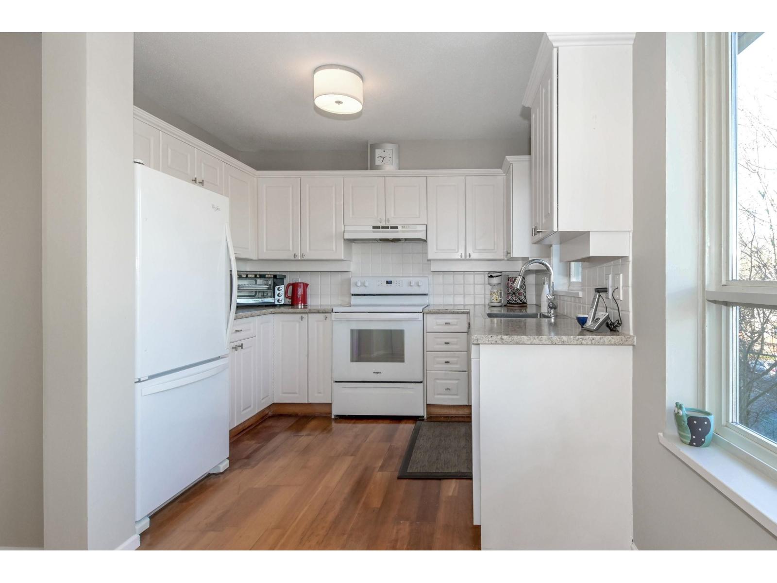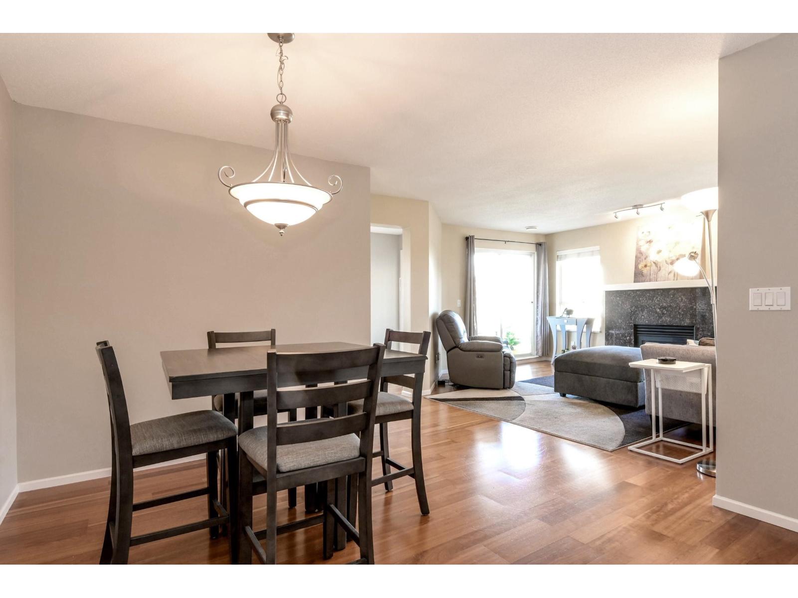 TOP FLOOR CORNER 2 bed/2 bath, feels like a home, spacious entry into a bright open living /dining area, hardwood floors /gas fireplace (gas included in maintenance)Separate kitchen, lots of cabinet space and walk out to corner patio with mountain views. Primary has updated ensuite and walkin closet. The laundry has extra storage space. This is a great building well looked after, new roof, repiping and new fencing in last 5 years. Building offers, bike room, party room gym and strata includes gas and hot water.Great walkable location near Willowbrook Mall, parks, school, and transit... just steps away to future Skytrain station.Includes (2) parking stalls #31 + #32 Locker #67. One pet(dog or cat) is allowed and not to exceed 20KG(44lbs) height 36cm(14inches) (32376292)