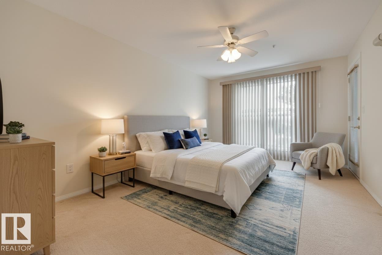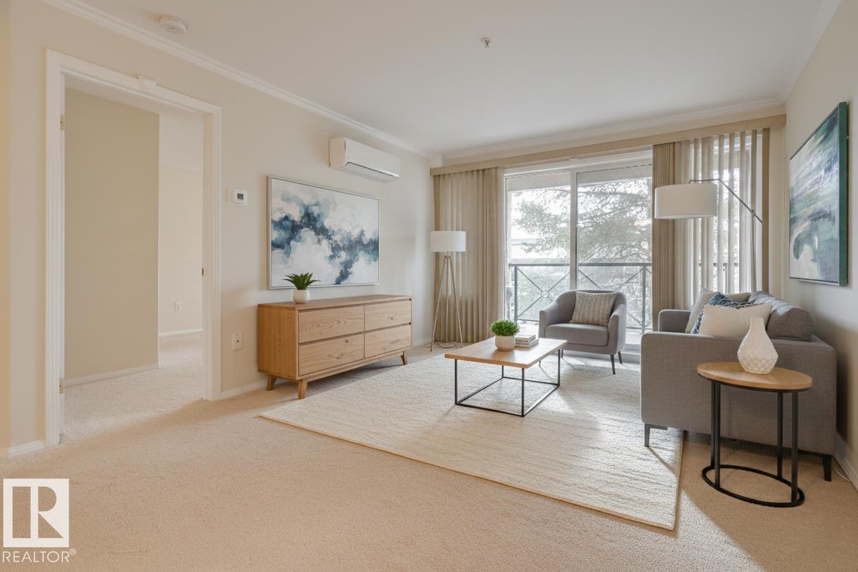 Welcome to effortless 55+ living in this spacious and beautifully maintained 1 bedroom, 1 bathroom condo, thoughtfully designed for comfort and convenience. The open-concept kitchen, living, and dining areas are filled with natural light, creating a bright and inviting space for everyday living & entertaining. The generous primary bedroom features direct access to the patio and a walk-through closet leading to the 4-piece bathroom. Added features of in suite laundry & Air Conditioning. Enjoy the added luxury of heated underground parking with a storage cage, along with outstanding building amenities including a car wash, gym, billiards area, games room, library, social room, & guest suite for visiting family and friends. Ideally located just steps from shopping, grocery stores, dining, medical services, banks, the Edmonton Public Library, public transit, and the future LRT, this home offers unbeatable convenience. This is low-maintenance, active adult living at its finest! (33764294)