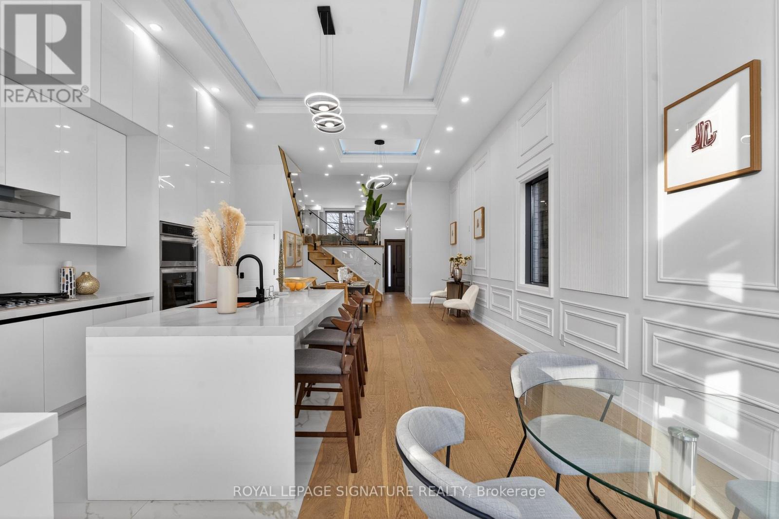 Stunning custom-built 4-bedroom home with a separate legal 2-bedroom basement suite set on a rare 30x194ft lot sought-after O'Connor-Parkview neighbourhood! This gorgeous home offers an exceptional design, space, and versatility, including an outstanding income potential! The welcoming main floor foyer features porcelain flooring, large closet and soaring 12 ft ceilings that carry through the main floor accented by refined European-inspired contemporary fluted paneling. The open-concept main level is bathed in natural light from expansive windows and showcases gorgeous engineered hardwood flooring and wainscoting throughout. The large dining area is perfect for entertaining, while the show-stopping kitchen impresses with abundant storage, top-of-the-line appliances along with sleek quartz countertops and backsplash. Sliding glass doors extend the living space outdoors to an expansive deck and a fully fenced back yard. The spacious living room overlooks the main floor, creating an ideal setting for everyday living and family gatherings. Oak stairs with glass railings lead to the second level highlighted by a large skylight and convenient upper-floor laundry. The serene primary suite is a luxurious retreat featuring a private balcony, walk-in closet, and spa-like 7-piece ensuite with double vanity, glass shower with body sprays, and a soaker jacuzzi tub. Three additional spacious bedrooms offer generous closet space, abundant natural light, and direct access to bathrooms each with glass shower with body spray. The bright, legal basement apartment includes large above-grade windows, two bedrooms each with direct walkouts to a large patio, a full kitchen, laundry, and a 4-piece bath, ideal for rental income or extended family. Set on an exceptionally deep 194-foot lot, the backyard is a rare offering with tremendous future potential for a massive garden suite. This home is ideally located near TTC and GO Transit, walk to local shops, supermarket, parks and schools! (42025758)