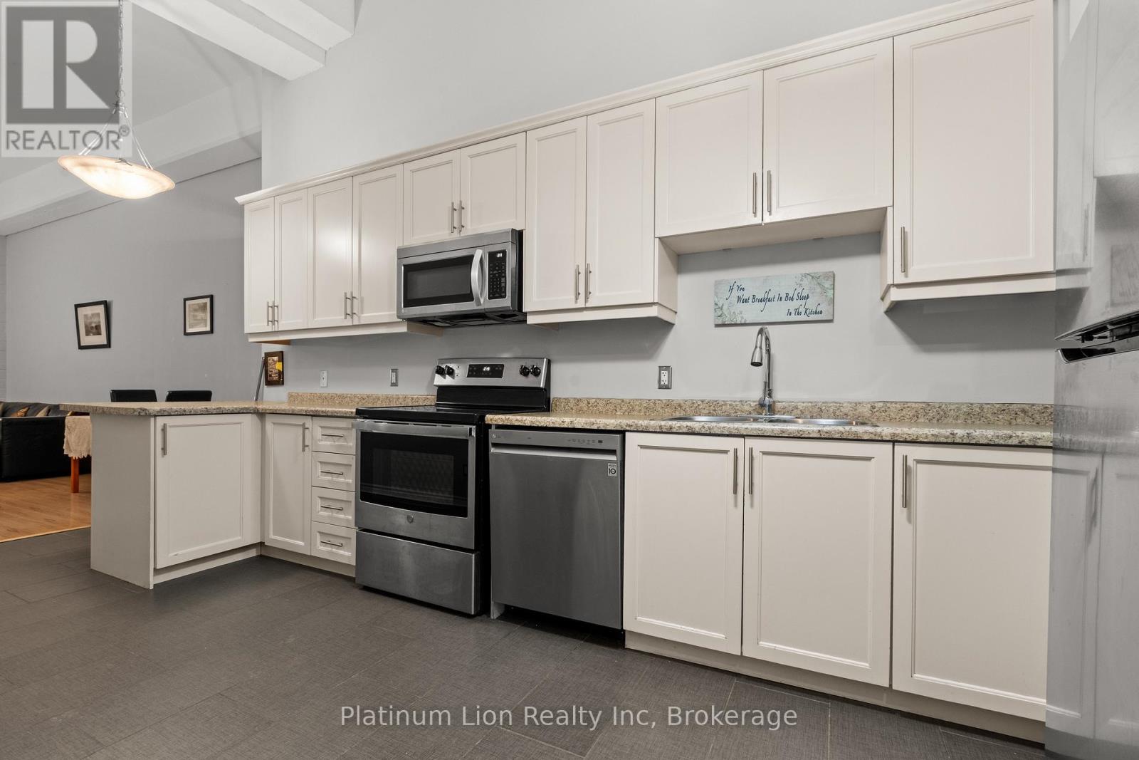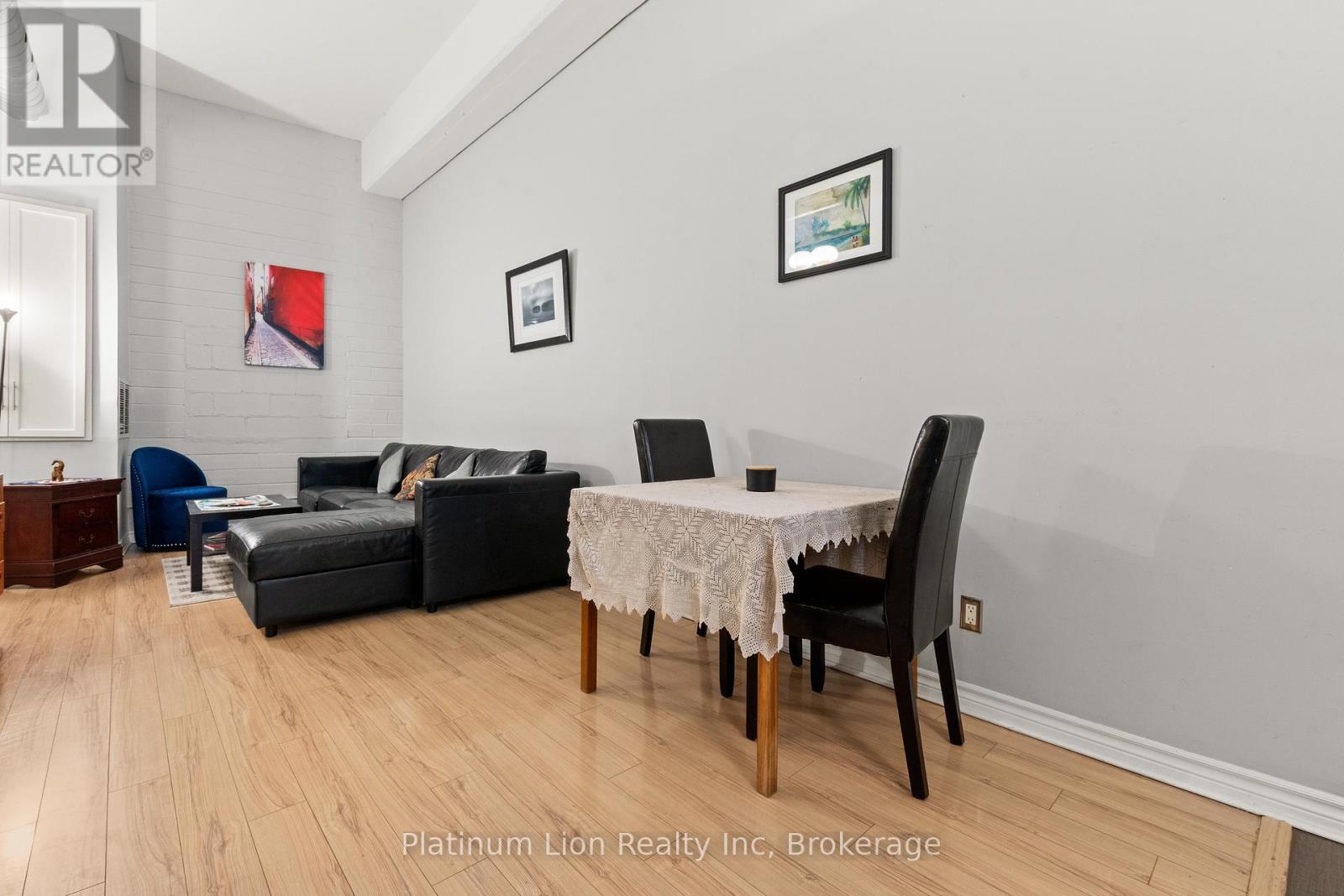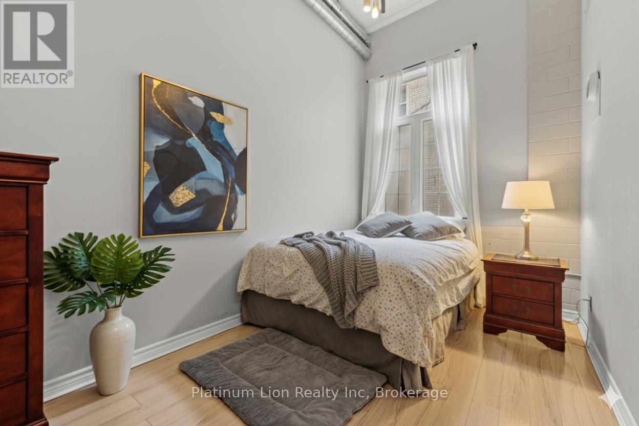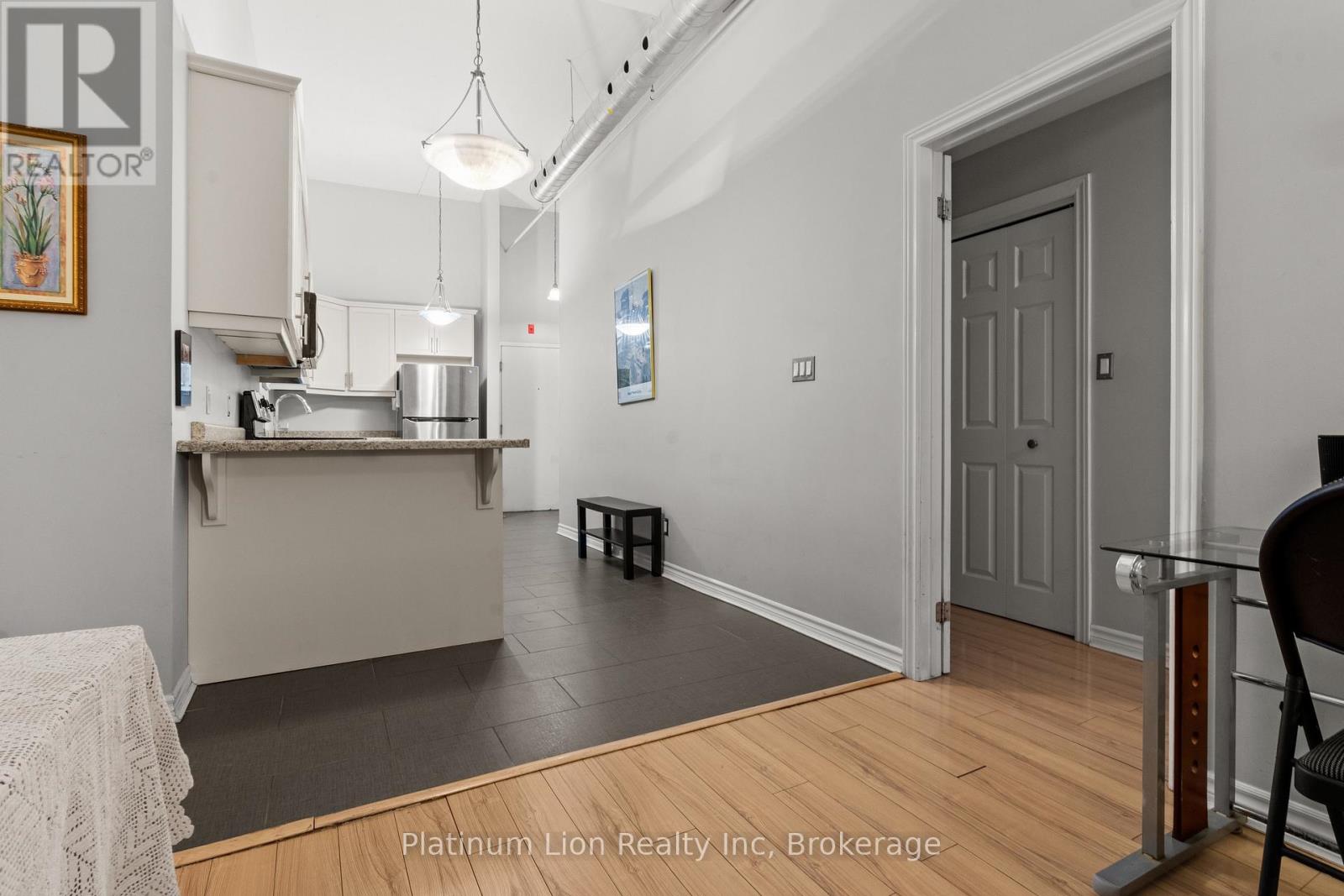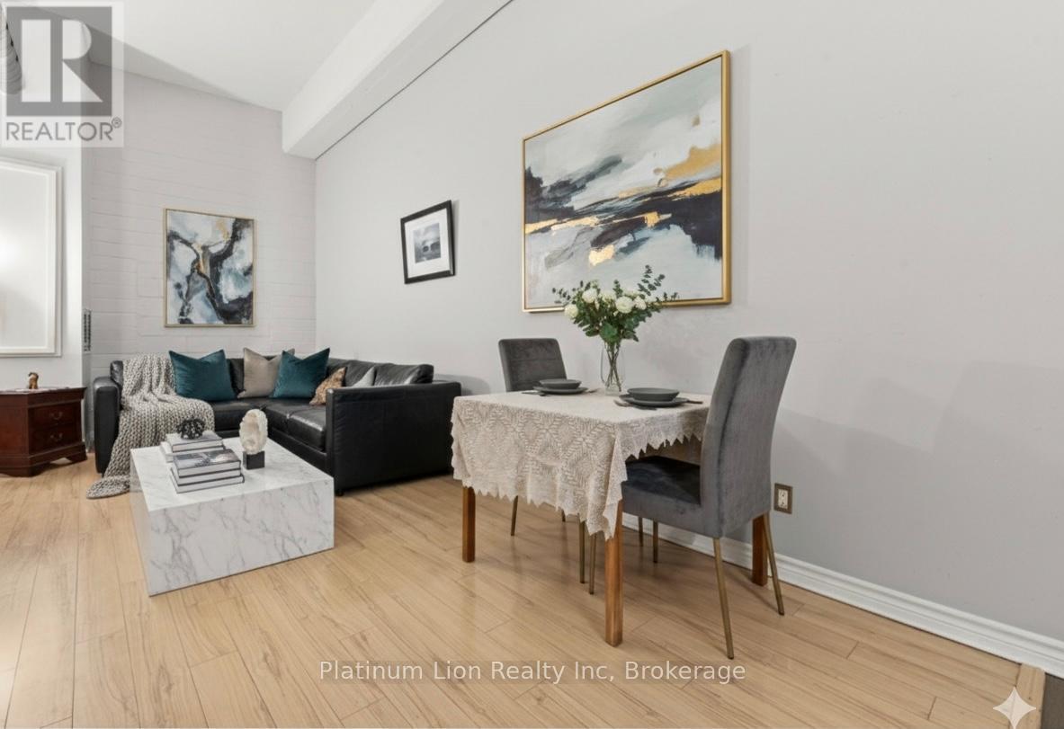 Finally, an affordable condo in the heart of the downtown core that doesn't compromise on space! Welcome to Unit 212 at 80 King William Street, the historic FilmWork Lofts. This carpet-free condo features soaring high ceilings and a kitchen big enough to actually enjoy cooking the meals you love. The oversized bedroom offers plenty of room to fit a king-sized bed plus a full home office setup, complemented by the convenience of both a full bathroom and a separate powder room. You will love the spacious living room, which easily accommodates a pull-out couch for overnight guests, and the added luxury of in-suite laundry. This pet-friendly building offers a lifestyle of ease with $518 monthly condo fees that include your water, and while there is no parking, you are within walking distance to everything the city has to offer and steps away from public transit. To top it all off, the unit includes a locker that is perfect for storing winter tires, suitcases, and more. (42026282)