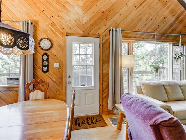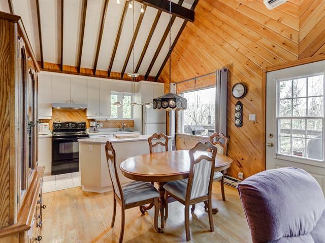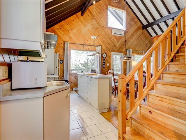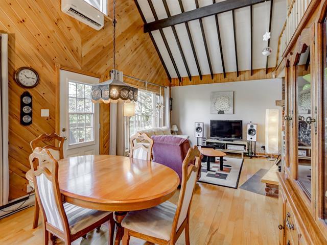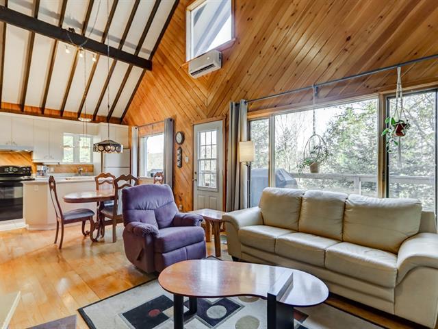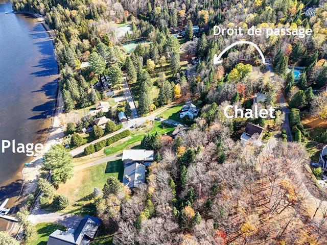 Coup de coeur assuré! Charmant chalet suisse avec vue sur le lac et accès notarié au Lac Raymond & à une plage privée à distance de marche. Offrant 2 chambres, une salle de bain rénovée en 2023, aire ouverte lumineuse, grande salle familiale & un atelier, il allie confort et cachet rustique. Foyer au bois, thermopompe, grande terrasse, aqueduc municipal et système Ecoflo. Situé dans le domaine privé le Versant Suisse, incluant plusieurs services: piscine creusée chauffée, déneigement des chemins d'accès + stationnement et tonte de pelouse. Havre de paix à voir! Visite libre ce dimanche 1e février entre 11h et 13h. Voir Addenda! (44440218)