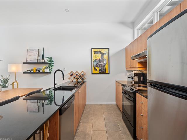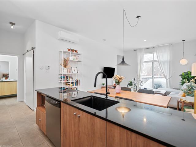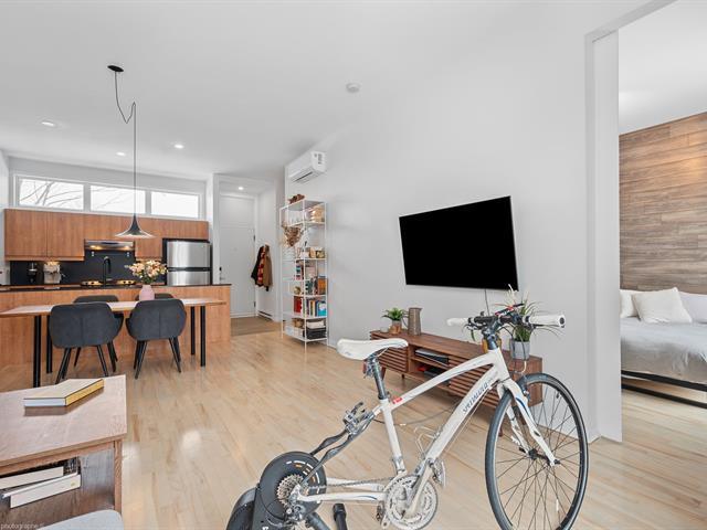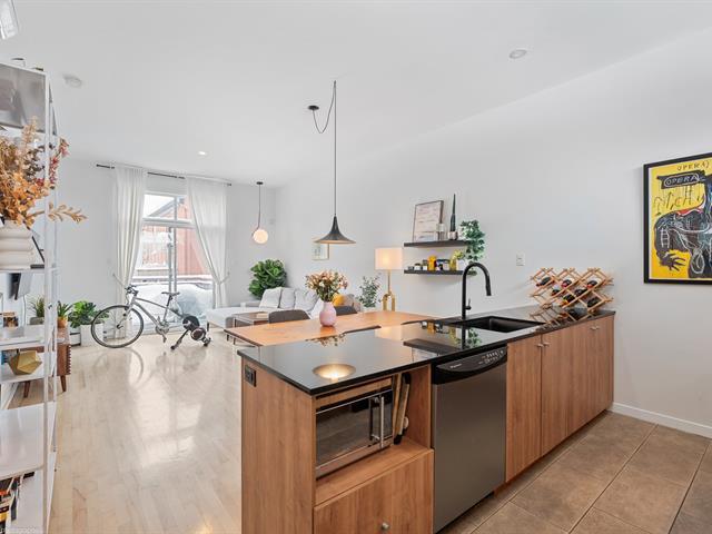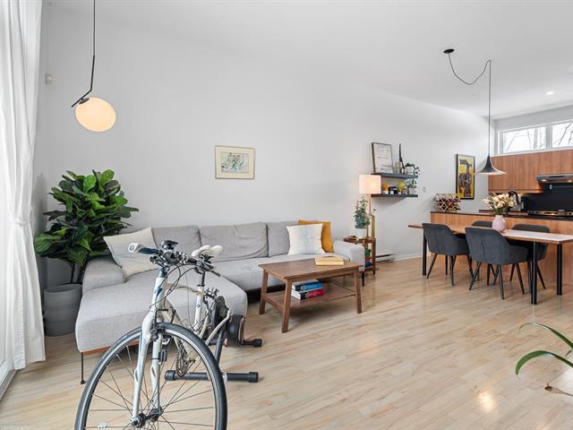 Joli condo avec hauts plafonds de 10' et très grande terrasse privée de 8' x 21', situé à quelques minutes du métro et dans un quartier vivant et à promixité de tout. Possibilité de louer un stationnement. 1 chambre fermée avec walk in et porte patio. Grand espace de vie ouvert et moderne. Vous serez charmés par la belle luminosité. Thermopompe neuve 2025. Visitez rapidement! (54675933)