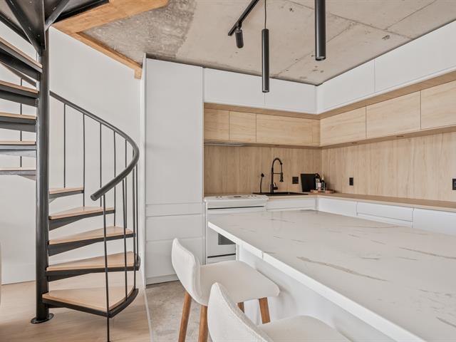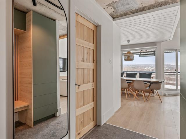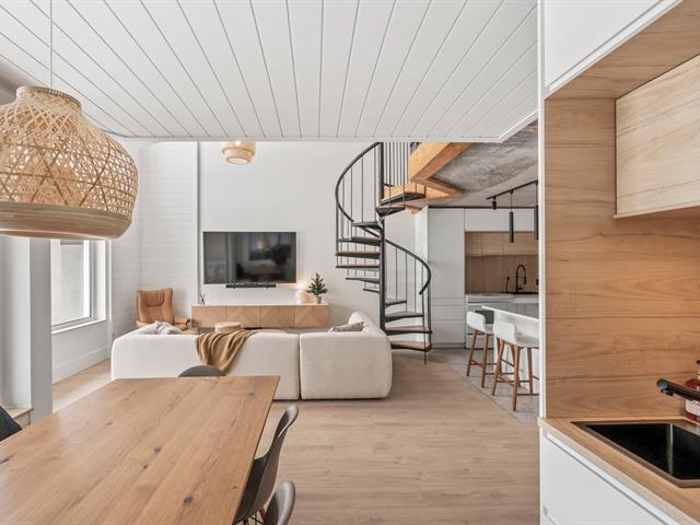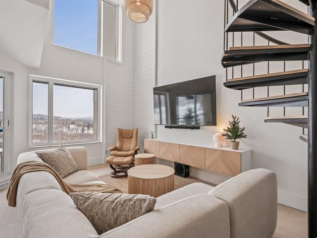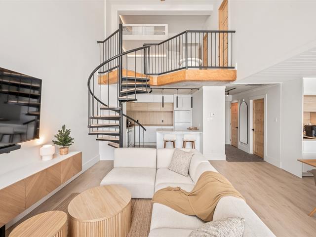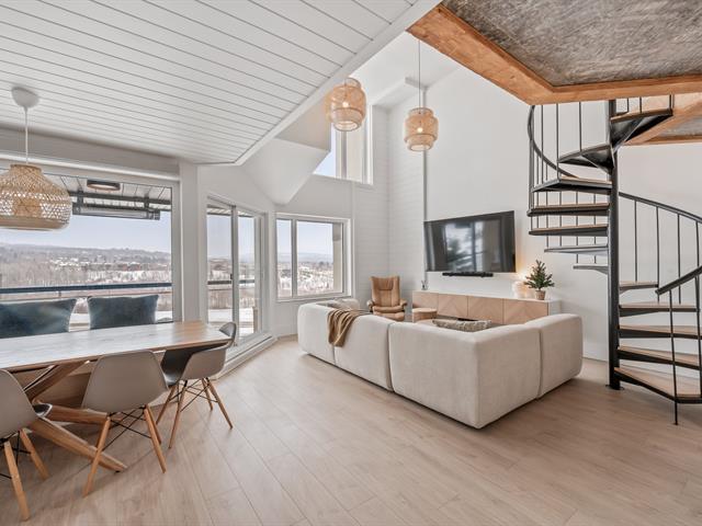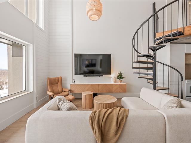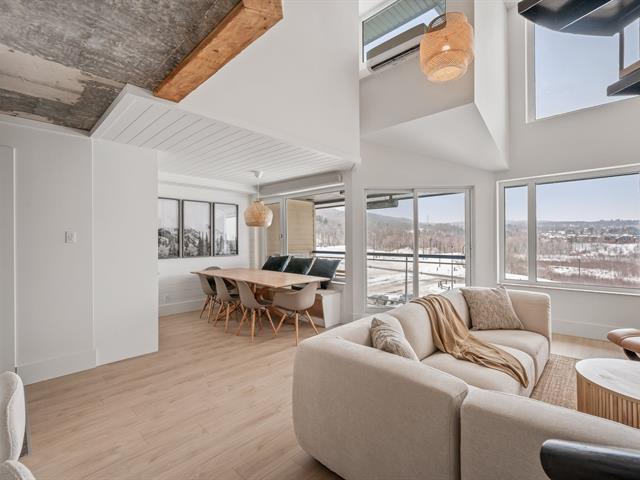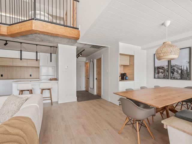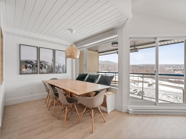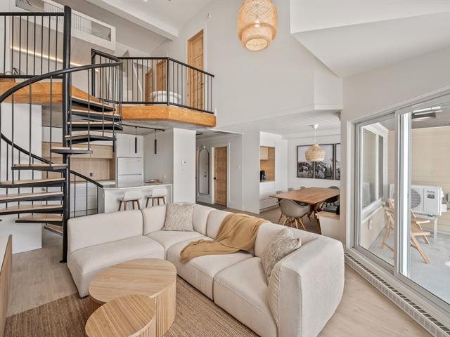 Ski-in/Ski-out. Entièrement rénové en 2025 avec des finitions haut de gamme, ce condo d'exception au style Pinterest bénéficie d'une localisation parfaite au pied du Mont-Ste-Anne. Situé au 5e étage du complexe Village Touristique, il offre 2 chambres dont une en mezzanine ouverte. Aire de vie conviviale et lumineuse. 2 salles d'eau, dont une privée à la chambre principale, ainsi qu'une salle de bains à l'étage. Inclus installation laveuse/sécheuse, thermopompe, chauffe terrasse extérieur, 2 stat. int. et un espace de rangement. Location court terme permise via firme de gestion. meublé et équipé. Un produit rare, digne d'une revue de design. GST/QST must be added to the asking price (55229552)