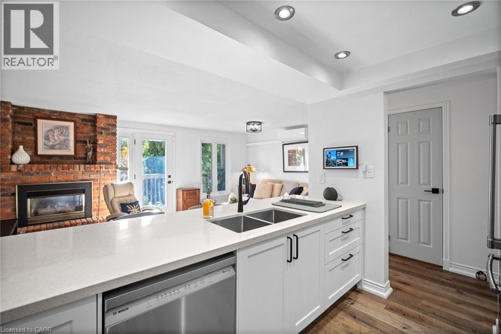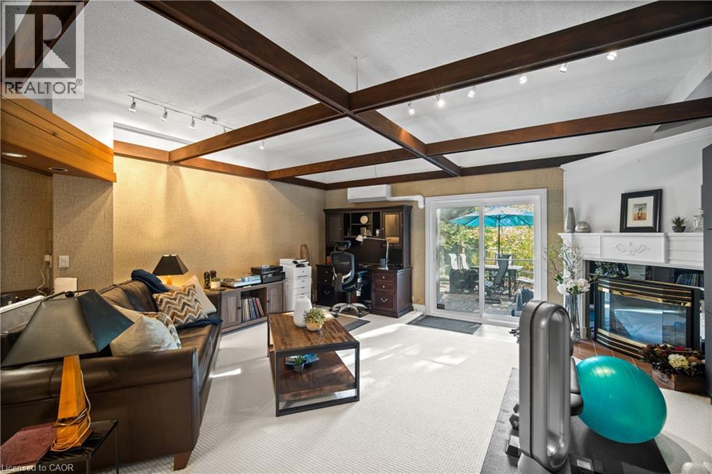 pacious 2-bedroom, 4-bath (3 half) townhouse offers over 1,700 sq. ft. of living space plus a finished walkout lower level—one of only six homes in the complex with two rear balconies and a walkout basement. The main floor features a fully updated white kitchen with quartz counters, stainless steel appliances, stylish backsplash, and a breakfast bar that opens to the family room and balcony with treed views. A combined living/dining area and convenient powder room complete the level. Upstairs you’ll find two generous bedrooms (easily reconfigured back to three). The primary suite has a private balcony overlooking the golf course and a modern ensuite, while the second bedroom includes its own 2-piece bath and a connected office nook. The lower level is designed for entertaining with soaring ceilings, a wet bar, walkout to the patio and gardens, and inside entry to the underground garage with two private parking spaces. Residents of Wellington Green enjoy resort-style amenities including a heated saltwater pool, hot tub, sauna, and beautifully landscaped grounds. Ideally located close to downtown Burlington, shopping, and quick highway access. This property is an ideal fit for downsizers or professionals seeking turnkey, low-maintenance living in a unique and private community. (70095437)