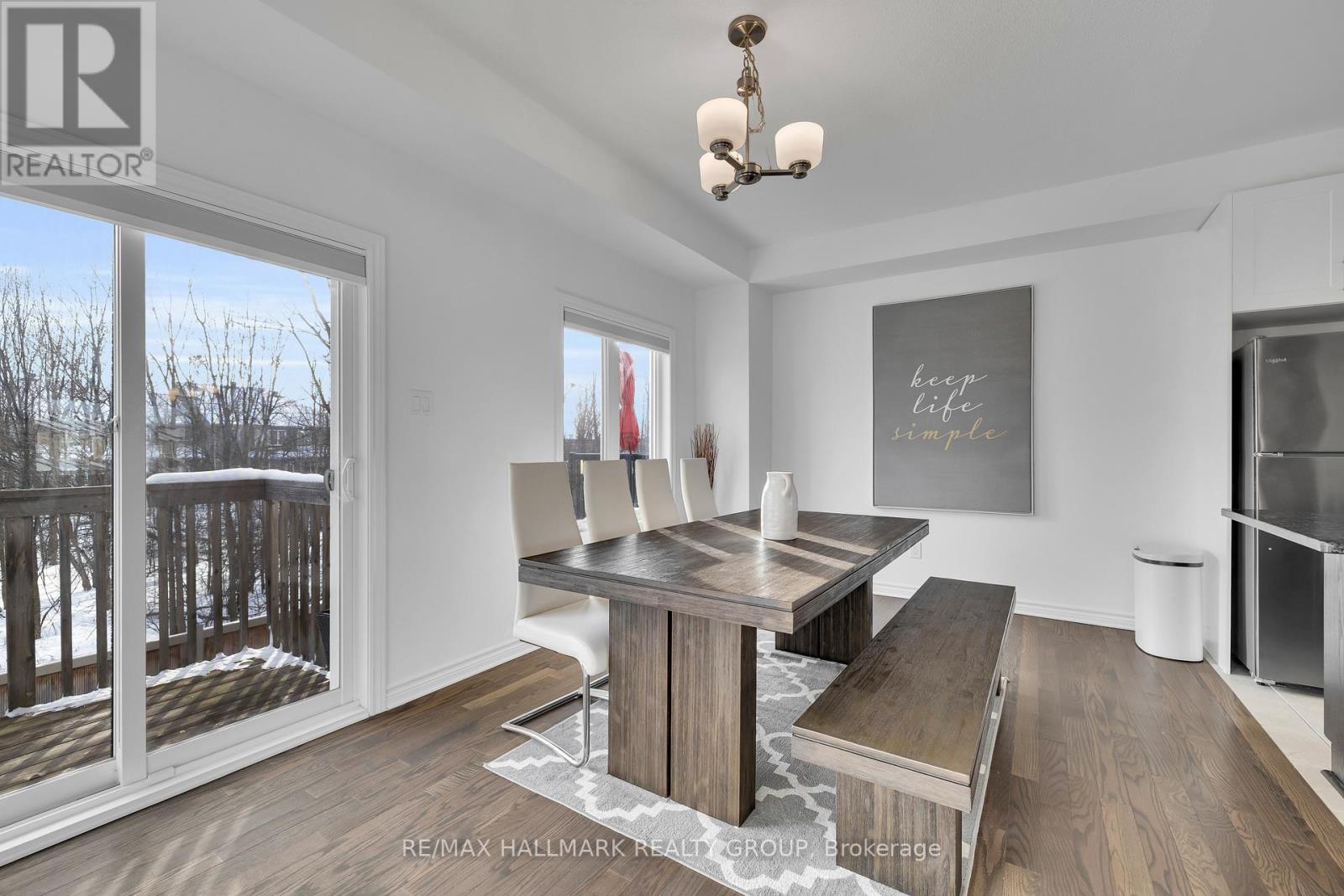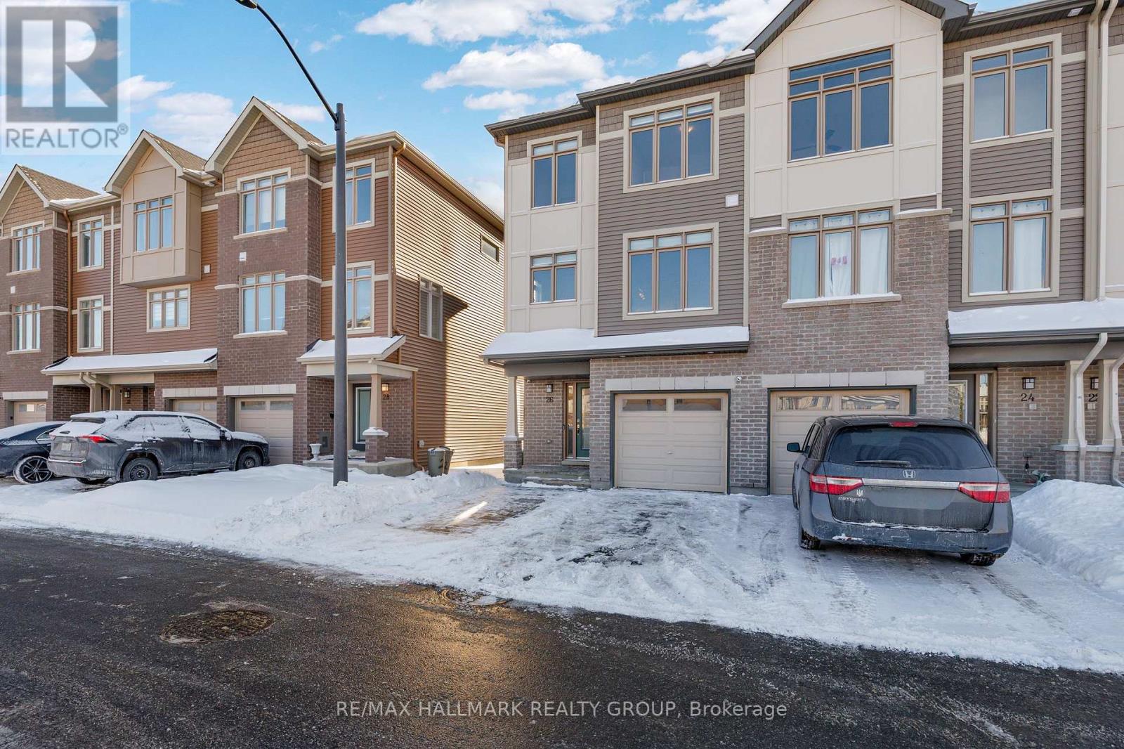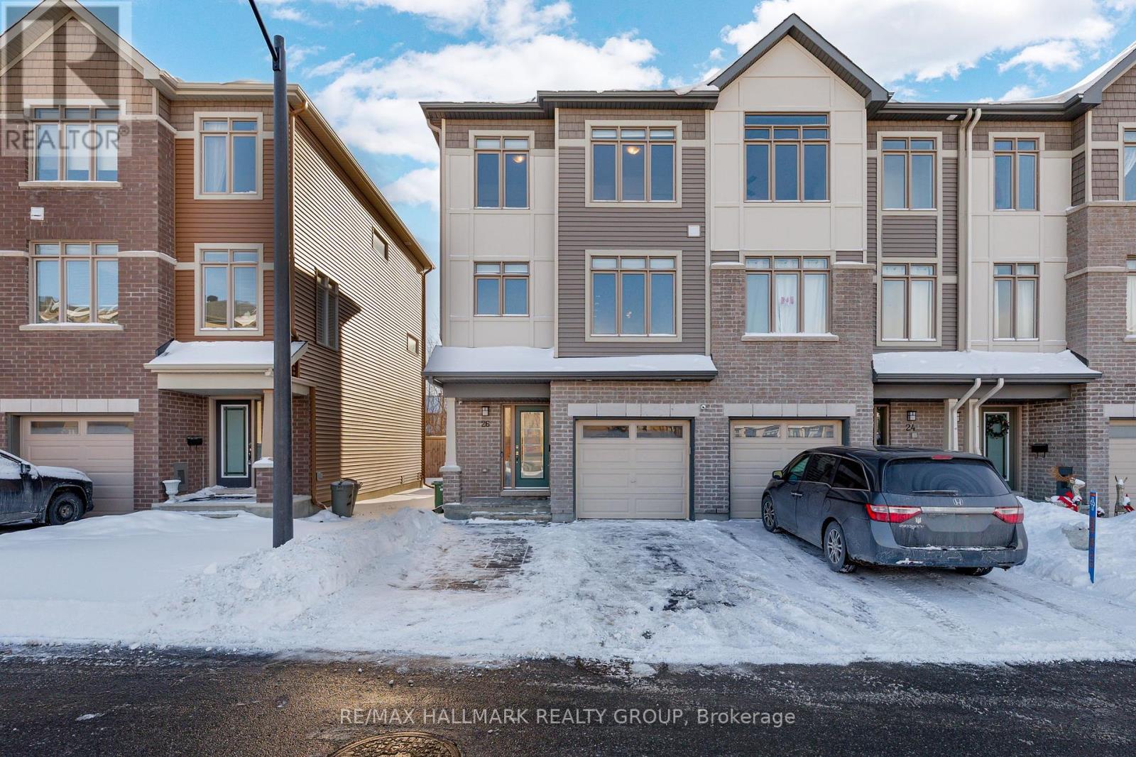 Welcome to 26 Barn Swallow Private, a meticulously maintained end-unit 3-storey townhome built in 2019 and presented in true model home condition. This bright and thoughtfully designed residence offers 3 bedrooms, 3 bathrooms, and a functional layout ideal for modern living.A tiled entry welcomes you into the main level, where upgraded hardwood flooring highlights a versatile living space at the rear of the home with direct access to a private, professionally landscaped backyard, perfect for relaxing or entertaining. The second level features a stunning open-concept kitchen, dining, and living area, anchored by an oversized stone island with seating for 6 to 8 guests. Side windows flood the space with natural light, showcasing dark hardwood floors, crisp white cabinetry, and stainless steel appliances. A dedicated dining area opens to a balcony overlooking a mature, tree-lined ravine, offering a peaceful backdrop rarely found in townhome living.The third floor hosts three well-proportioned bedrooms, including a spacious primary retreat large enough for a king-size bed, complete with two walk-in closets and a sleek ensuite featuring a full glass shower. The additional bedrooms are ideal for children, guests, or a home office.The unfinished basement provides excellent flexibility and is currently used as a gym, with potential for a family room, bedroom, or additional living space to suit your needs.Ideally located just off Earl Armstrong Road between Prince of Wales Drive and Limebank or Riverside Drive, this home offers convenient access throughout the city, nearby shopping, schools, and everyday amenities. The private road includes 11 additional visitor parking spaces, along with nearby street parking. (42027612)