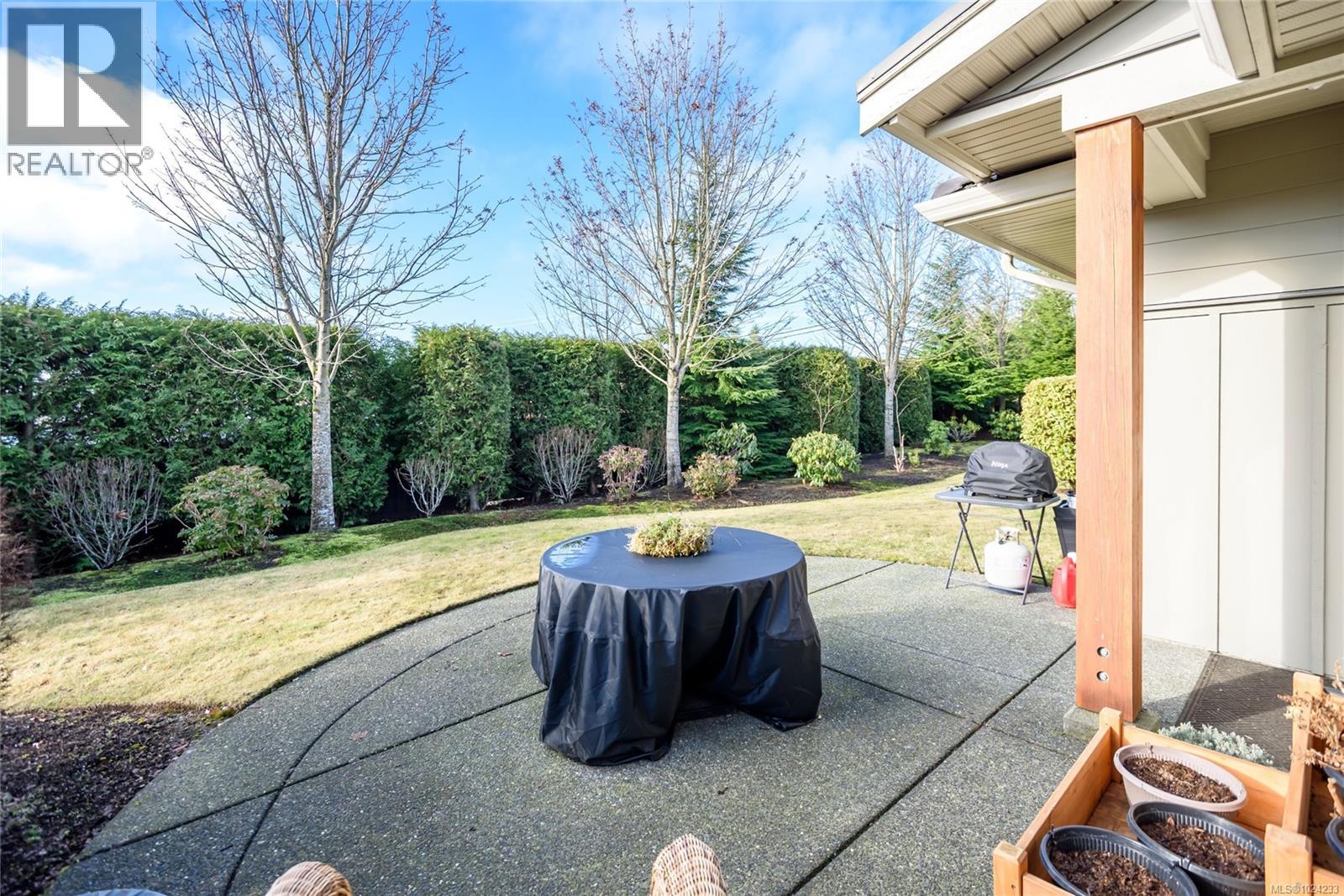 Here is your rare opportunity to own in the coveted Grove Townhouse complex, and live in this immaculate patio home with the largest floor plan of 1612 sq. ft. This 3 Bdrm unit includes a bright, open floor plan with large windows, a sunny SW exposure, private backyard, 9 foot ceilings with coffered ceiling, piano windows in dining room area, large open kitchen with island with center sink and gorgeous quartz countertops. There is a butler's pantry, 5 pc ensuite with a soaker tub and glass shower, immaculate finishings, and a large double garage with custom workbench cabinetry. Just a few steps to the Thrifty Foods shopping center, bus stop, Cr. Isle golf course and clubhouse, Hospital, Aquatic centre, North Island College and close to all amenities. (30319105)
