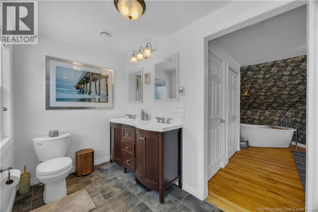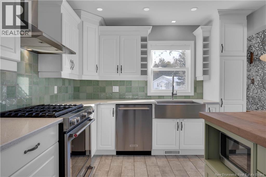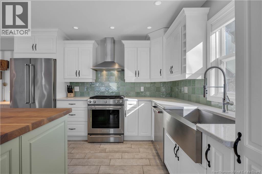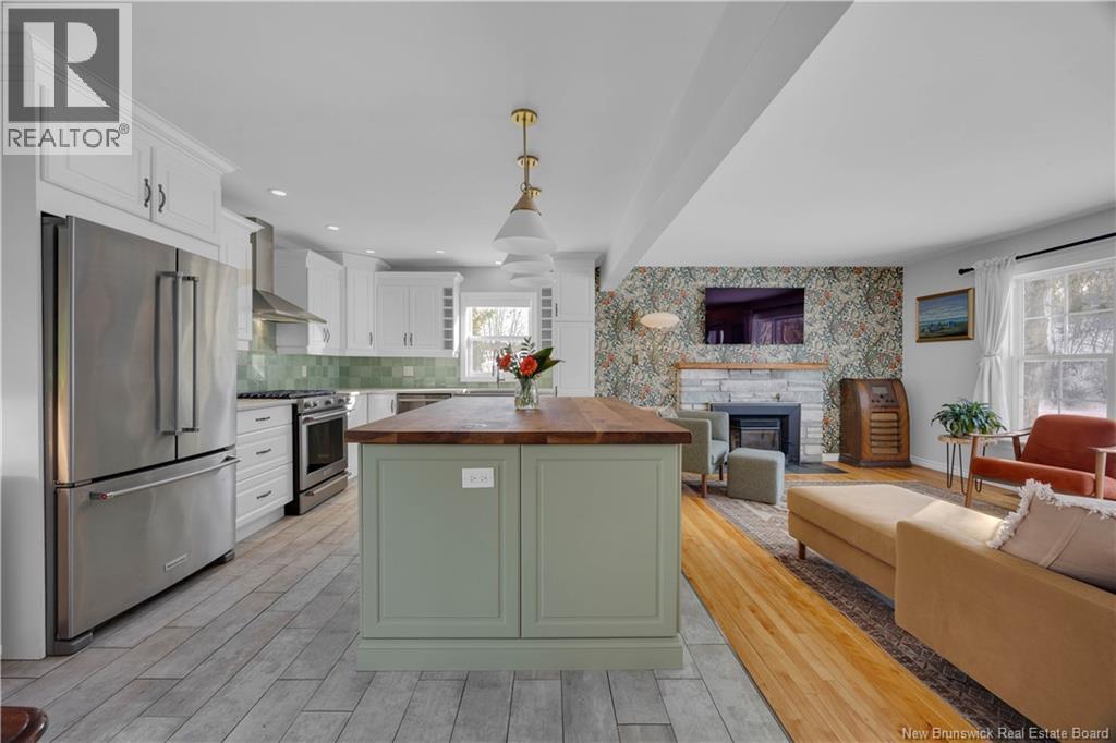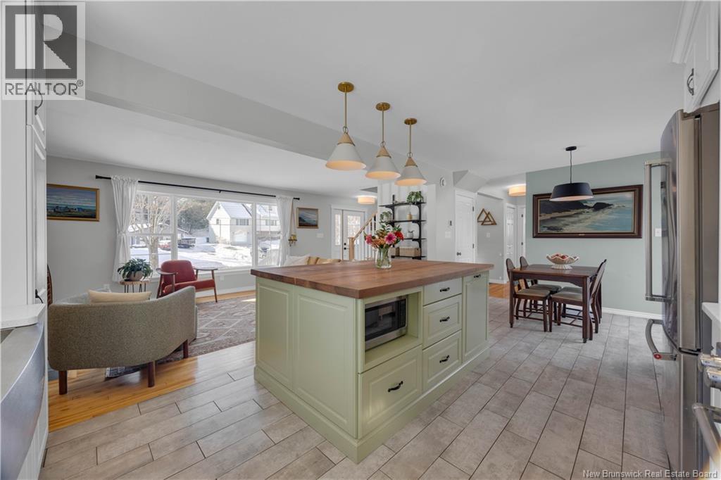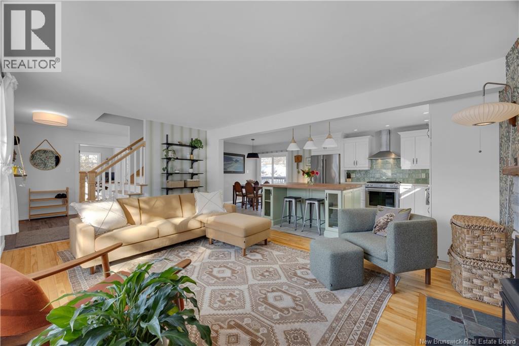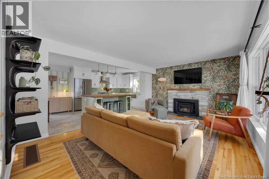 Welcome to 100 Meadowbank Ave, a beautifully reimagined home that has been taken right to the studs and rebuilt with exceptional care, quality, and attention to detail. Set on a rare 1/2 acre lot in Millidgeville, which has been recently landscaped to create generous green space, along with a second driveway leading to an ideal future garage site. The main level offers a welcoming entryway and a stunning open-concept layout connecting the living room, kitchen, and dining area. Perfect for everyday living and entertaining. A cozy fireplace anchors the space, while the custom kitchen impresses with heated floors, a large island, stainless steel appliances, and a gas range for cooking enthusiasts. Patio doors provide easy access to the deck. A bright home office with built-in shelving (could be a fourth bedroom) and a bedroom complete this level. Upstairs you will find a spacious primary suite featuring a relaxing soaker tub & a separate ensuite with tiled shower. Another bedroom and a full bathroom are also upstairs. The lower level includes a mudroom off the garage, a comfortable family room ideal for movie nights or kids play space, and a storage room. Additional highlights include abundant natural light, ducted heat pump, stylish custom lighting, and high-quality finishes throughout. Ideally located steps to the Royal Kennebecasis Yacht Club, minutes to Rockwood Parks trails & golf course, excellent schools nearby, and close to Uptown Saint John. List of updates available (29427720)
