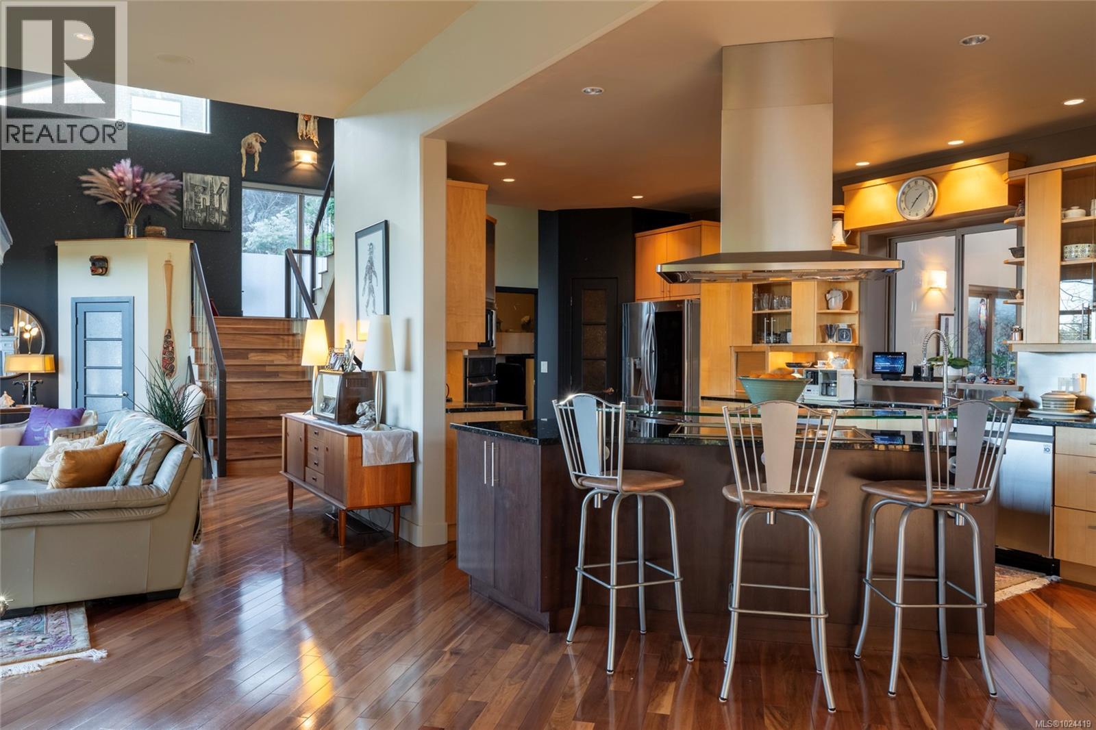 Welcome to 3354 Haida Dr on Triangle Mountain. This custom 4,400+ sqft, 5 bedroom, 4 bath home has beautiful south facing ocean and mountain views that are respected from all focal points of the home. Constructed with ICF from the ground floor to the ceiling, this unique floor plan is immediately welcoming with its 20ft high ceiling entry into an open floor plan kitchen/living/dining and finished offer with a spectacular adjoining sunroom. The second tier up to the top floor has an expansive patio to be utilized as is or expand to add another bedroom with ensuite. The upper lvl, features add'l family or sitting room, with primary, walk-in closet, ensuite and private south facing balcony. The lower lvl contain a well kept 2 bedroom suite, second bdrm, and easily convertible work space to add'l bedroom if needed. This 2006 custom build was awarded the Gold CARE Award for Best Custom Home over 4.500sqft is a must see property with very low maint., tranquil rocky bad year and so much more. (30319533)
