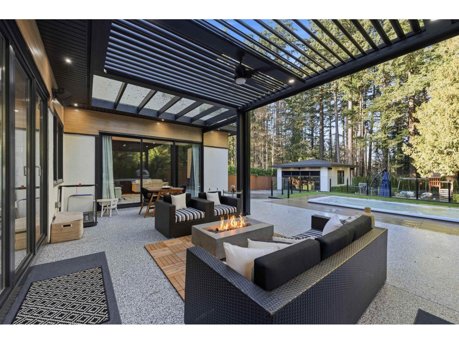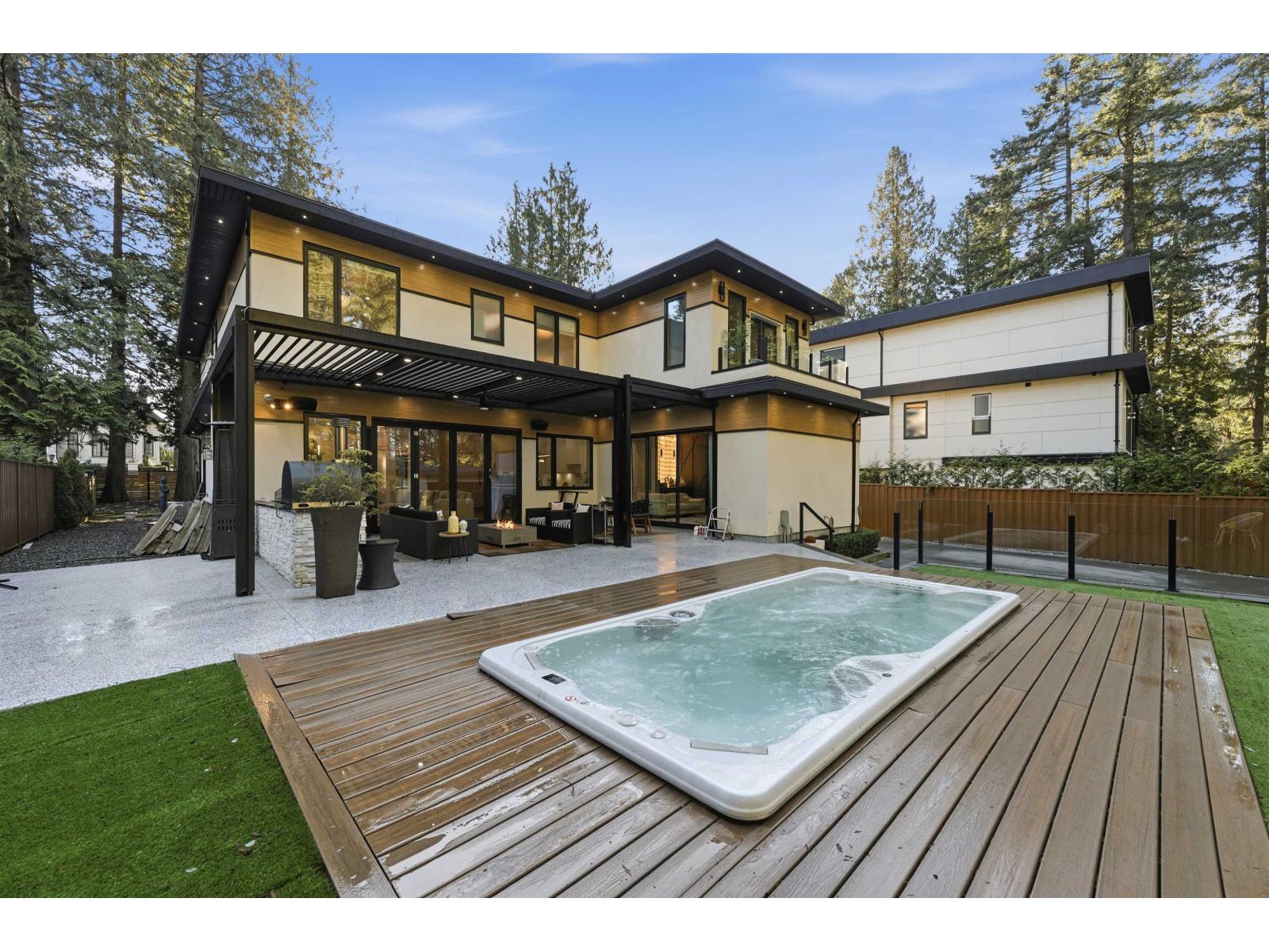GATED ELGIN MASTERPIECE | BACKS TO CRESCENT PARK. This custom, like-new luxury estate offers ultimate privacy in one of South Surrey's most desirable pockets. Built for entertaining, the main level features a private theatre, bar, and chef's kitchen + spice kitchen with pro appliances. Enjoy true 365-day outdoor living with powered screens and a StruXure automated louvered patio, complete with a swim spa, pizza oven, and 2 gas fireplaces. Fully gated with smart-home automation and a backup generator. Upstairs includes a stunning primary suite with balcony & dream W/I closet, plus 3 large bedrooms with W/I closets and a built-in flex/workstation area with cabinetry . Main-floor guest ensuite. Steps to top schools and beach trails. (32378540)