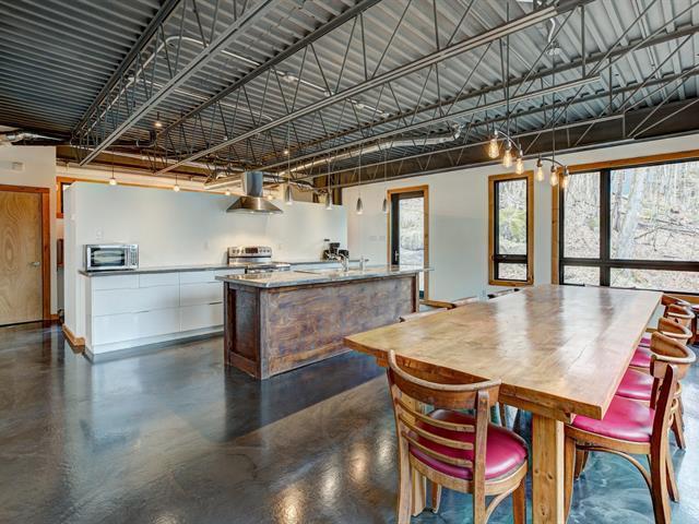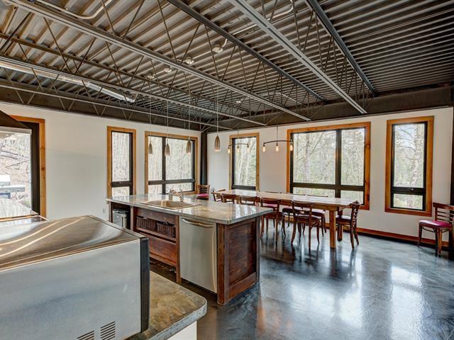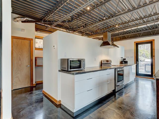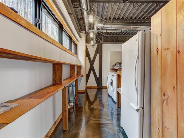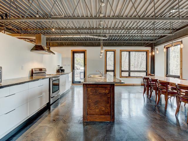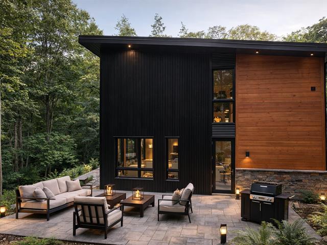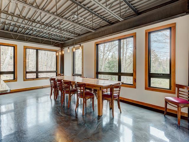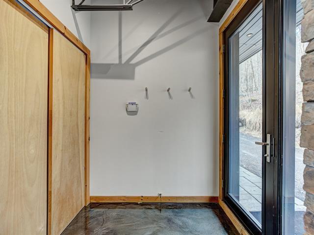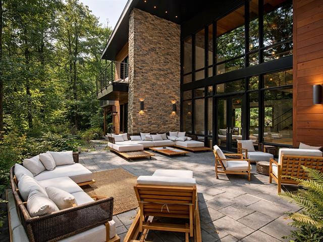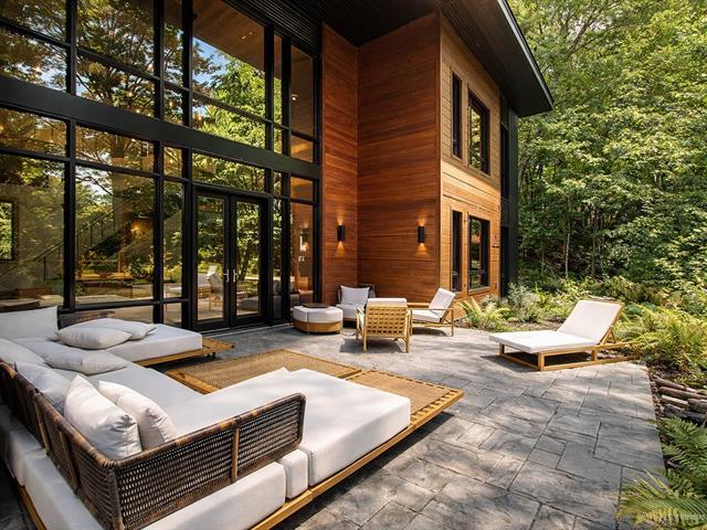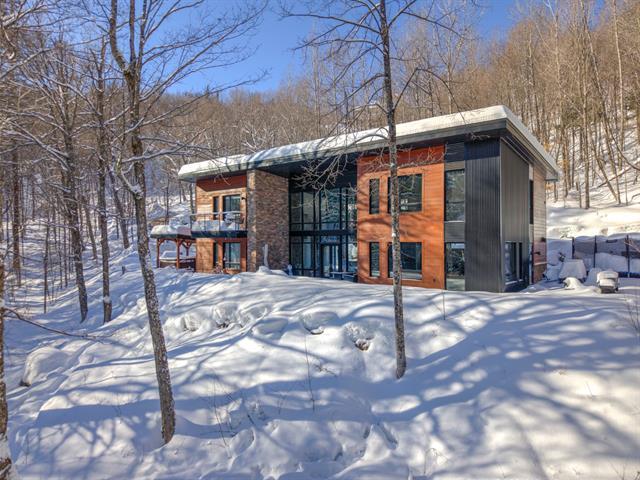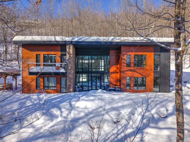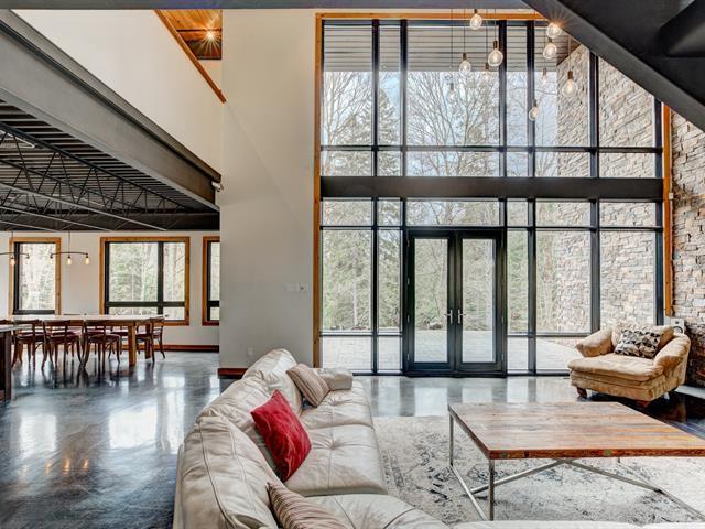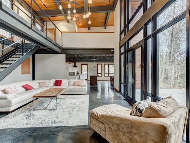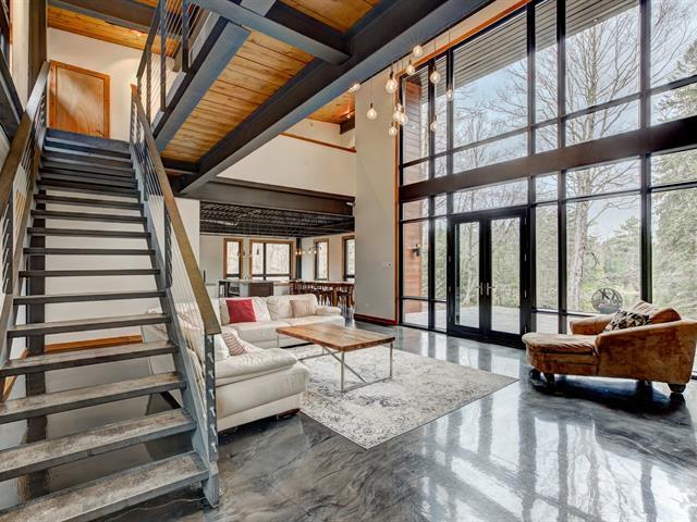 Stunning modern home with refined industrial architecture, set on a premier private lot bordering Lac Mud and offering complete tranquility. Defined by dramatic 20-foot ceilings, heated concrete floors, and expansive floor-to-ceiling windows, the home showcases breathtaking views of pristine natural surroundings. High-end materials, a geothermal system, and a thoughtfully designed layout ensure year-round comfort and efficiency. Ideally positioned for outdoor enthusiasts, with direct access to recreational trails and close proximity to Sommet Morin-Heights, Balmoral Golf Club, and the Aerobic Corridor. (53876640)