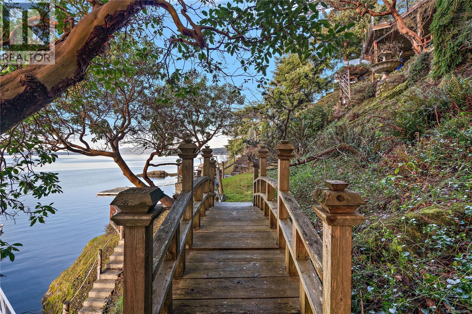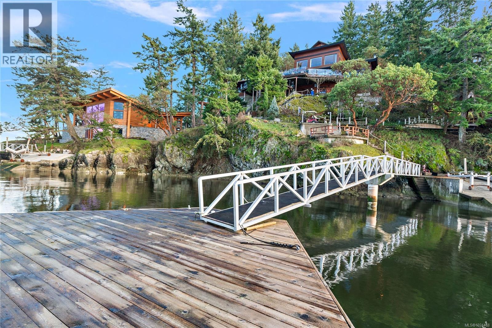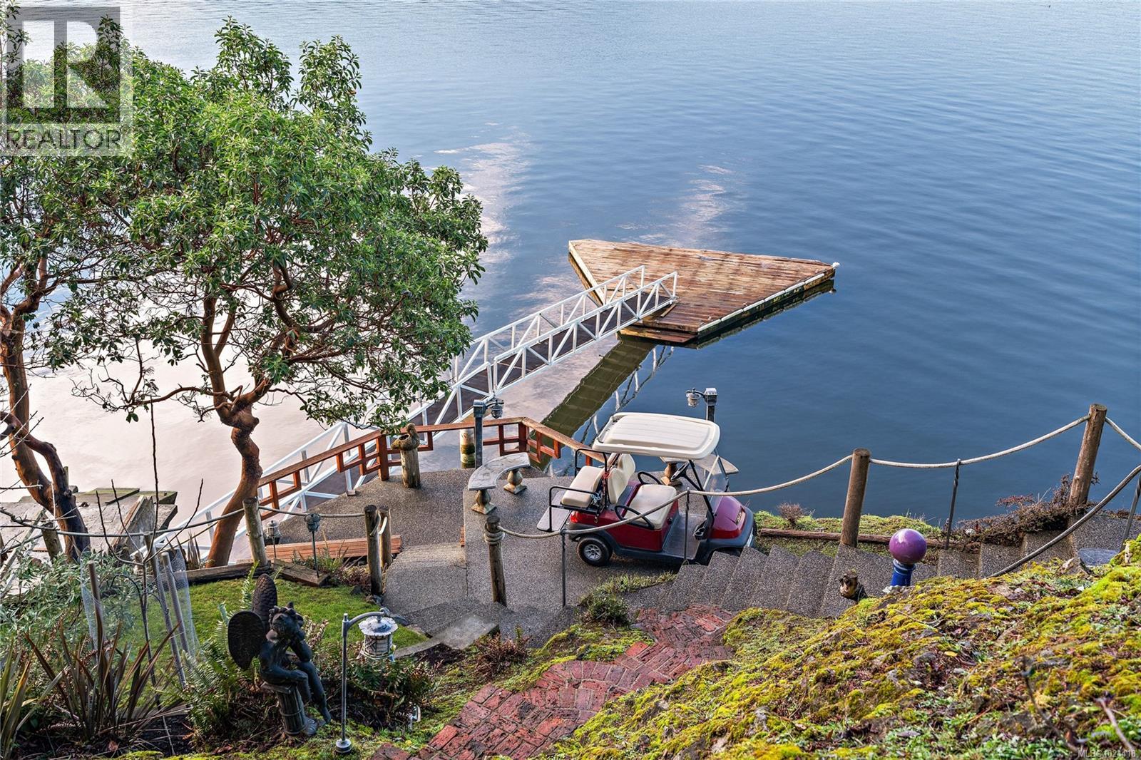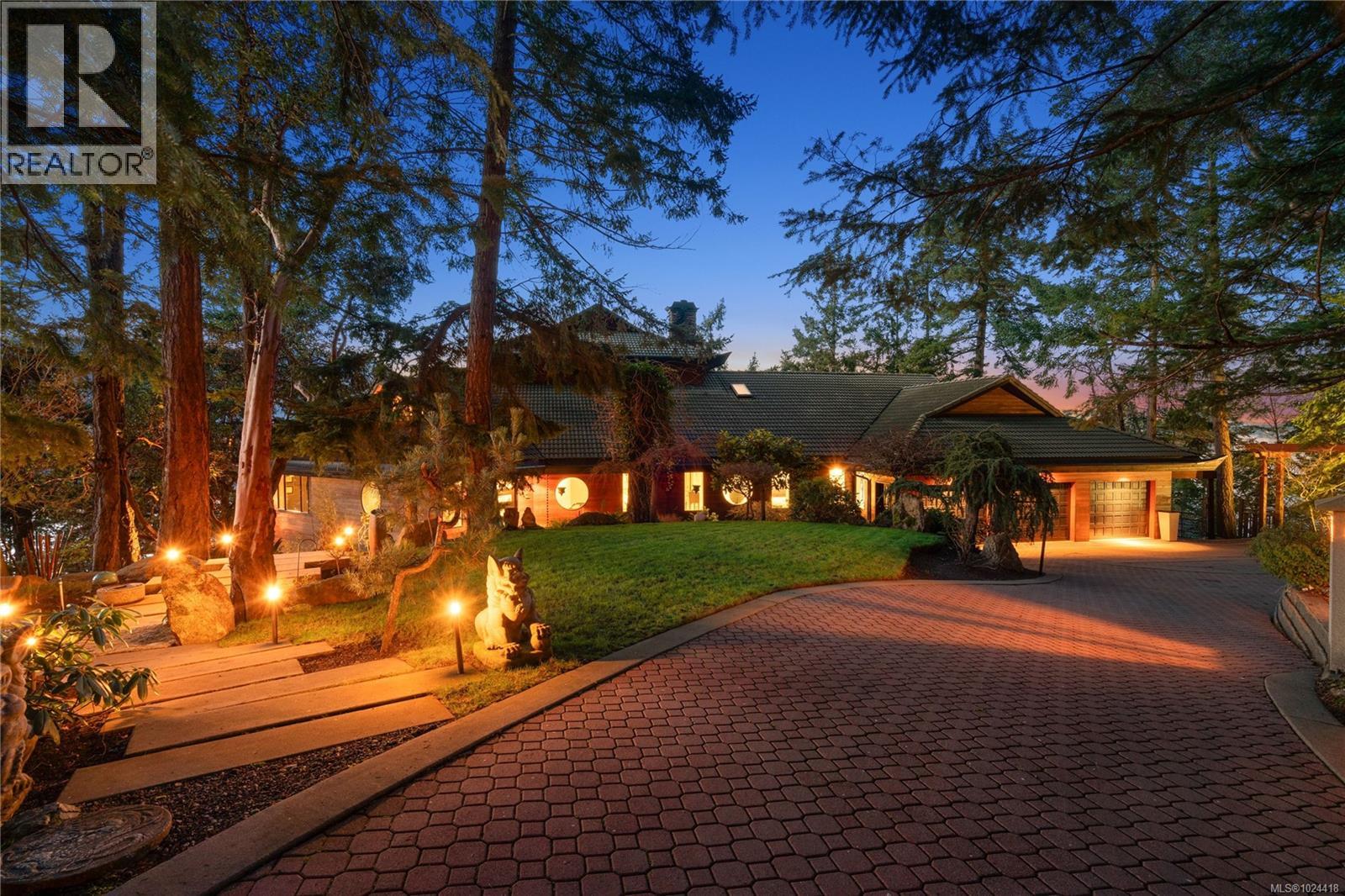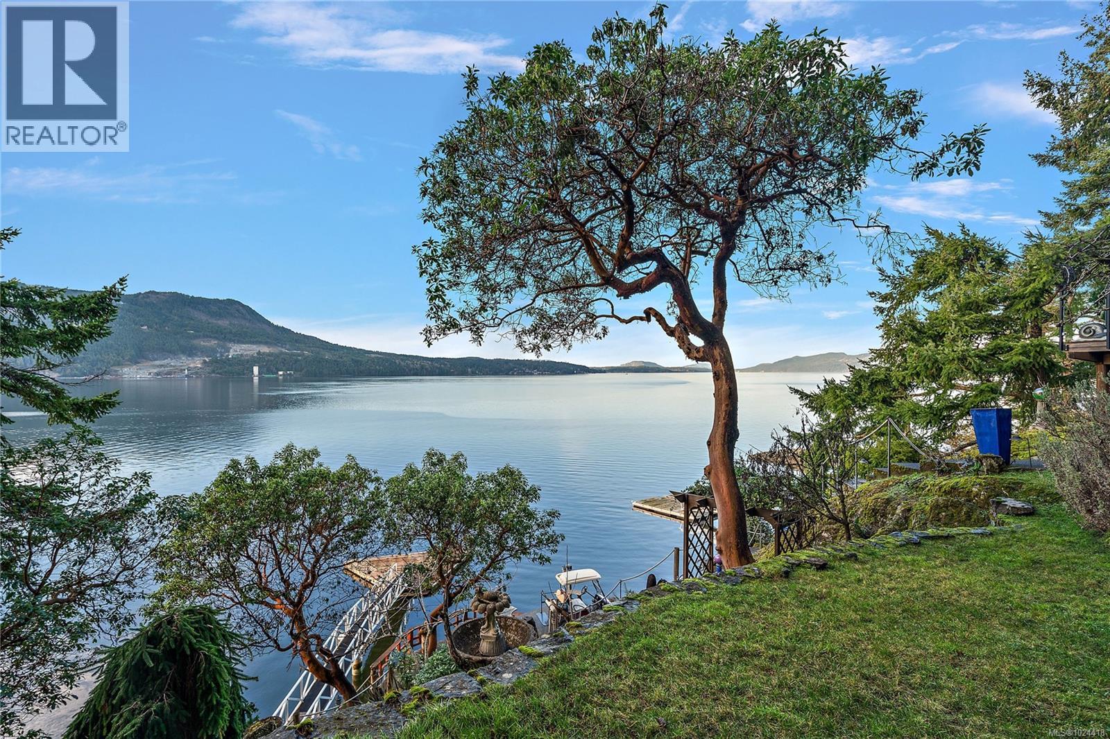 Discover this exceptional 3-bed, 4-bath, 7,091 sq ft custom-built waterfront estate on nearly an acre at the tip of Willis Point with a registered foreshore featuring a deep-water dock and slipway boat launch. Positioned to capture panoramic 180-degree Saanich Inlet views with west-facing exposure, this home bathes in natural light from sunrise to sunset. A grand 2-storey entrance greets you with a striking staircase and water feature setting a luxurious tone. Vaulted ceilings, floor-to-ceiling picture windows, and open-concept design create seamless indoor-outdoor living. Designer details include custom stone and millwork, refined crown molding, and luxurious finishes throughout. An entertainer's dream, the high-end chef's kitchen anchors the main level, where every principal room flows onto expansive decks overlooking protected inlet waters. The primary suite offers a private sanctuary with breathtaking views and spa-inspired ensuite. Lower level includes a media room, office, a kitchen and separate entrance making the addition of a suite simple. Meticulously terraced grounds provide easy waterfront access. The deep-water dock and slipway boat launch is perfect for kayaking, swimming, and boating. Tiered gardens with paver walkways showcase exceptional landscaping. Large accessory building accommodates RV/boat storage. Take advantage of the nearby wooded walking/biking trails, parks, lakes and beaches. This is more than a home—it's a lifestyle. An opportunity not to be missed for those seeking the ultimate in coastal luxury and year-round outdoor recreation. (30320161)