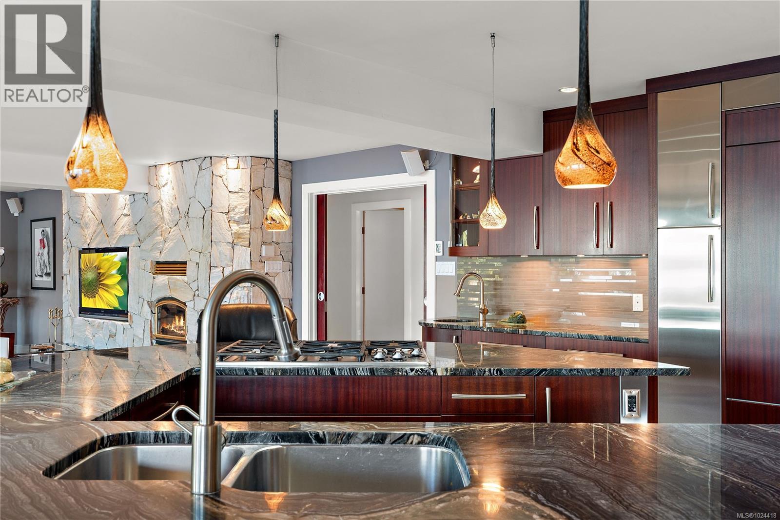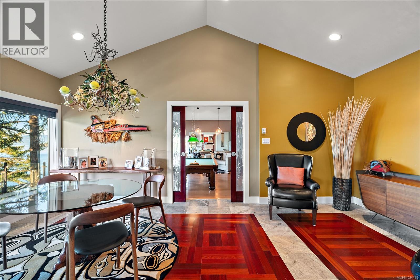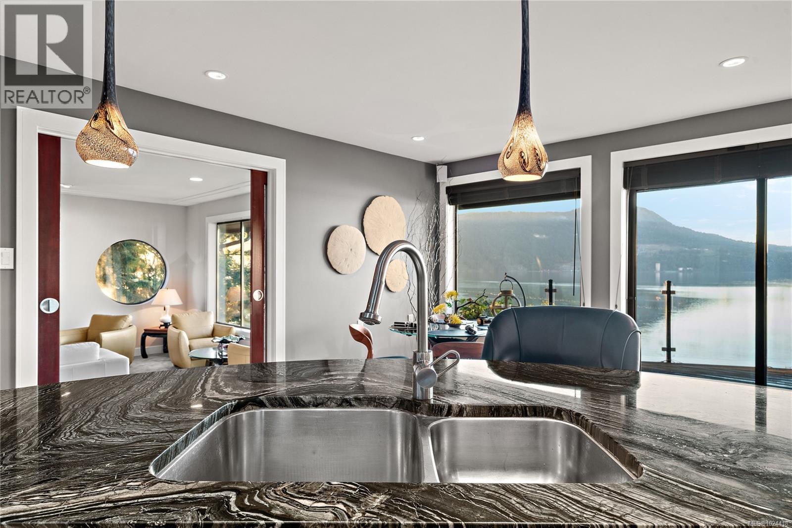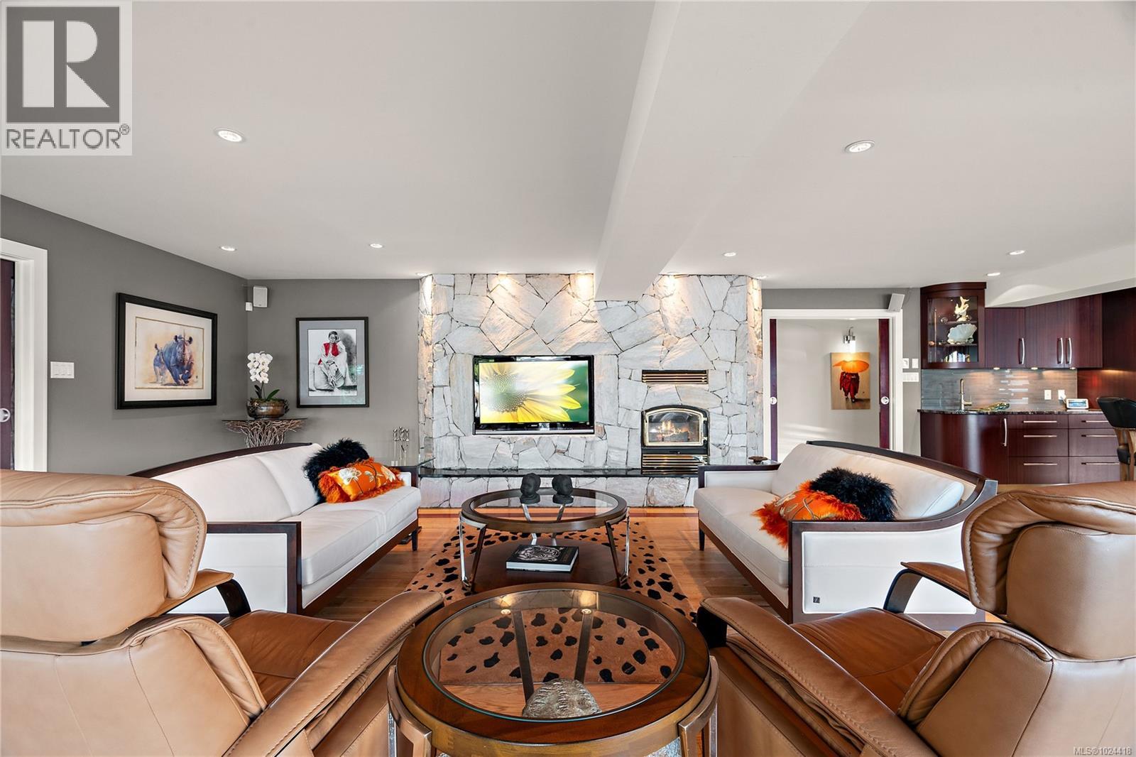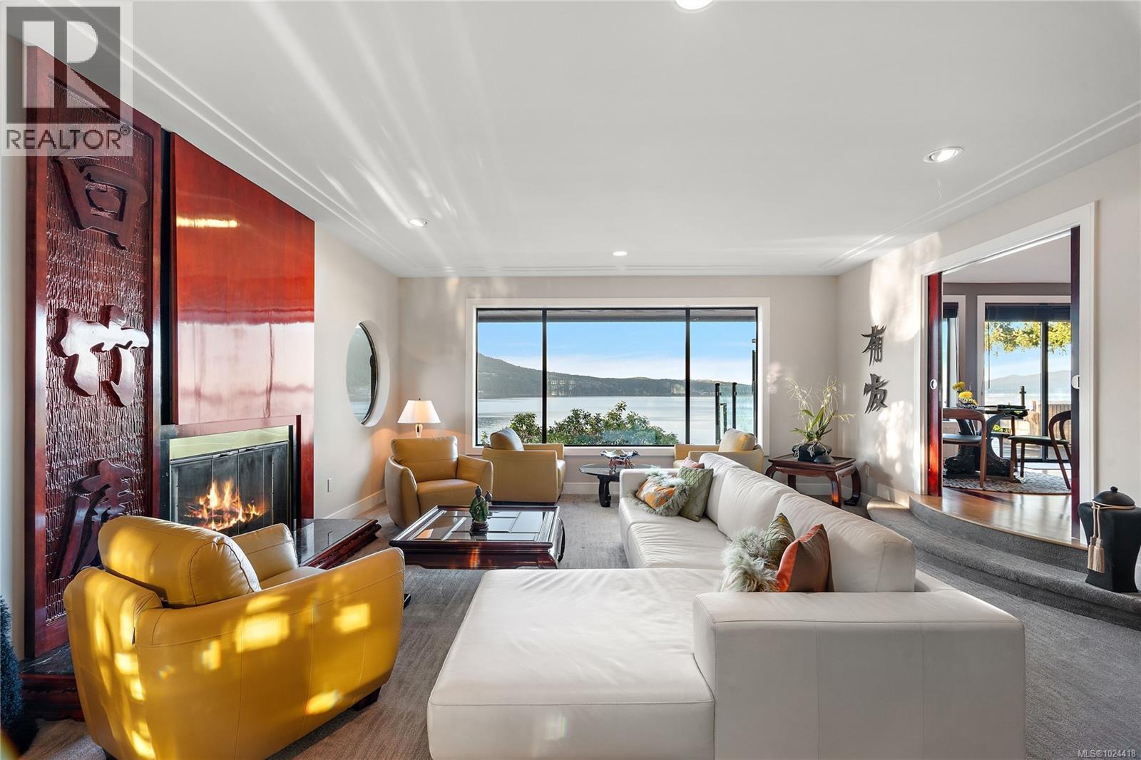 Discover this exceptional 3-bed, 4-bath, 7,091 sq ft custom-built waterfront estate on nearly an acre at the tip of Willis Point with a registered foreshore featuring a deep-water dock and slipway boat launch. Positioned to capture panoramic 180-degree Saanich Inlet views with west-facing exposure, this home bathes in natural light from sunrise to sunset. A grand 2-storey entrance greets you with a striking staircase and water feature setting a luxurious tone. Vaulted ceilings, floor-to-ceiling picture windows, and open-concept design create seamless indoor-outdoor living. Designer details include custom stone and millwork, refined crown molding, and luxurious finishes throughout. An entertainer's dream, the high-end chef's kitchen anchors the main level, where every principal room flows onto expansive decks overlooking protected inlet waters. The primary suite offers a private sanctuary with breathtaking views and spa-inspired ensuite. Lower level includes a media room, office, a kitchen and separate entrance making the addition of a suite simple. Meticulously terraced grounds provide easy waterfront access. The deep-water dock and slipway boat launch is perfect for kayaking, swimming, and boating. Tiered gardens with paver walkways showcase exceptional landscaping. Large accessory building accommodates RV/boat storage. Take advantage of the nearby wooded walking/biking trails, parks, lakes and beaches. This is more than a home—it's a lifestyle. An opportunity not to be missed for those seeking the ultimate in coastal luxury and year-round outdoor recreation. (30320161)