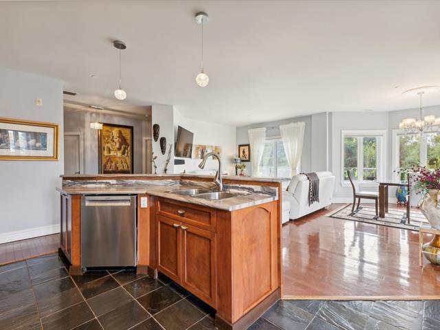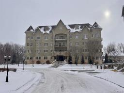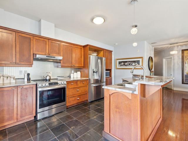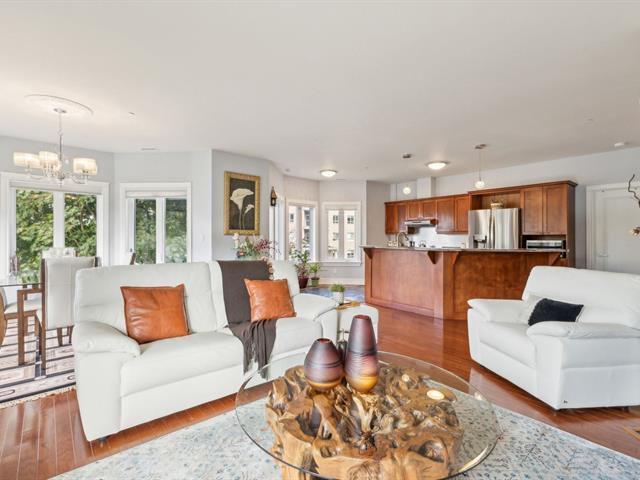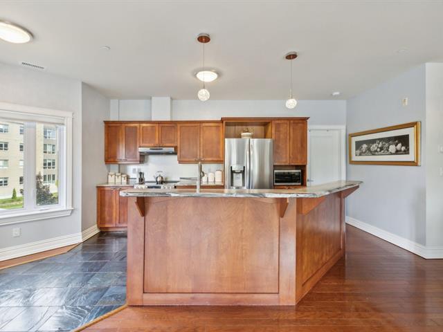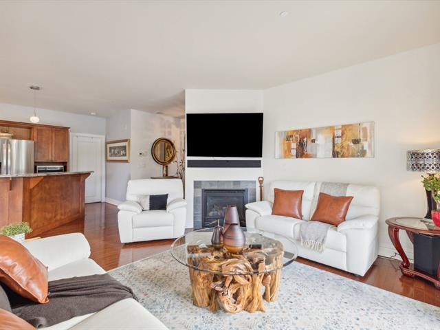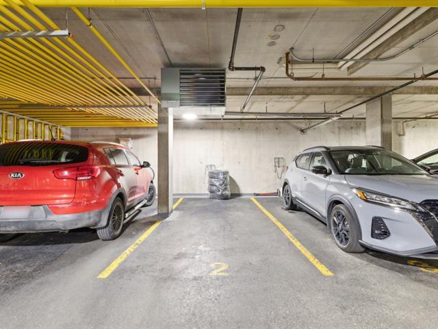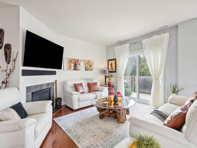 Estate sale- Modern 2-bedroom condo with 2 bathrooms, including an ensuite in the master bedroom with a walk-in closet. Open-concept kitchen, living room, and dining area, featuring hardwood floors and natural stone ceramic tiles. The living room has a natural gas fireplace and access to the balcony through a patio door. 9-foot ceilings add to the spacious feel. Two parking spaces included: one indoor in the garage and one outdoor, along with a storage space in the garage. Ideally located near the river and bike path. Well-managed and maintained building. (51161454)