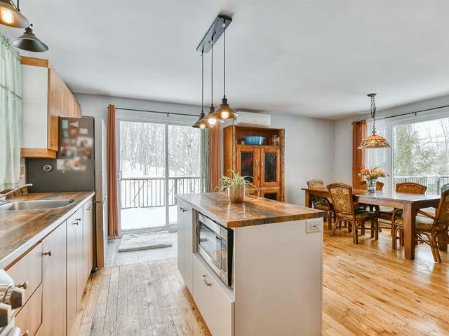 Beautiful property located in a peaceful area. Access to 2 lakes: Garry and Pierre Aubin. It has 3 bedrooms. Kitchen with island, open area with living room and dining room. 2 full bathrooms. Many renovations. Garage. Hookup for a generator and electric car charging station. Large balcony with view of the woods. You will be charmed. (41139730)
