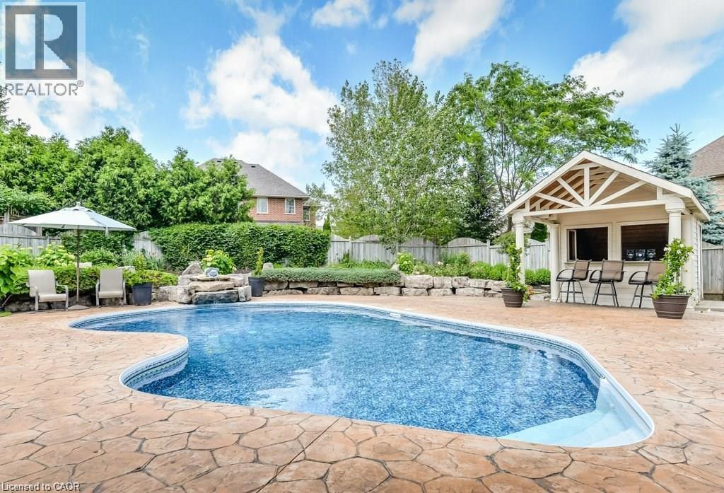 Welcome home to 333 Milla Court, an exceptional custom-built walk-out bungalow by Milla, ideally located on one of Beechwood’s most prestigious courts. This residence is built on one of the courts premier sized lots and is sure to impress with soaring ceilings, vaulted throughout, including 10’ principal ceilings, solid 9’ doors, a breathtaking foyer and a striking circular staircase leading to the fully finished walk-out lower level. The main-floor primary retreat features a marble spa-inspired ensuite, body and rain shower heads, timeless basket weave marble shower tile, whirlpool tub, walk-in closet with custom cabinetry and lighting. The gourmet kitchen offers granite countertops, stainless steel appliances, a circular island, opening to the great room and anchored by a dramatic double-sided fireplace shared with the formal dining room. A versatile bedroom or office, an additional bath with steam shower and main floor laundry complete the main level. The finished lower level is ideal for entertaining or can be optimized as an in-law suite, featuring a kitchen/bar, gas fireplace, and two additional bedrooms with a shared four-piece bathroom. The ultimate showstopper awaits outdoors—your private backyard oasis eliminates the need for the cottage commute, complete with an in-ground pool, rock waterfall, cabana bar, extensive stonework, newer deck, hot tub and exceptional privacy. Also not to be missed, the extra-large, double-height garage is a car enthusiast’s dream, with ample space to accommodate car lifts. While the home retains its timeless finishes, the pricing has been thoughtfully positioned to invite customization, offering the opportunity to tailor the residence to your personal vision while enhancing long-term value for an unparalleled lifestyle opportunity in Beechwood’s most coveted locations. The presentation of offers is scheduled for Wednesday, February 18th at 12:00 p.m. (70097540)