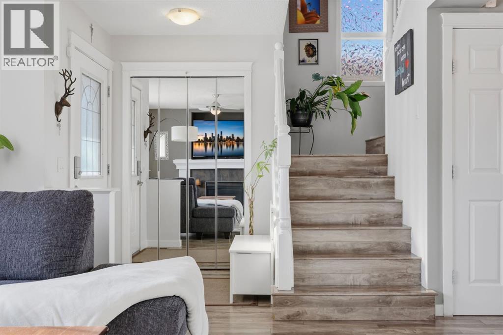 If you’re looking for a bright, well cared for home with a functional layout and a great backyard, this Sagewood property is worth a look. The main floor features a cozy living room with a gas fireplace, plus an eat in kitchen with stainless steel appliances and two tone cabinetry. You’ll also find a mudroom, powder room, and access to a full width deck off the kitchen.The backyard offers plenty of room for kids, pets, gardening, or entertaining, and there’s still space for the double detached garage with paved alley access. You’re also close to pathways that connect into Airdrie’s trail system and the canal.Upstairs has three bedrooms and a full four piece bathroom, while the finished basement adds extra living space and another full bathroom, giving you flexibility for an office, gym, or guest area. Located just steps from C.W. Perry School and Monkland Fields, with Woodside Golf Course nearby as well.Come take a look and see if this one feels like home. (31578724)