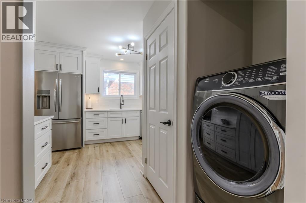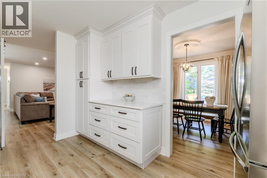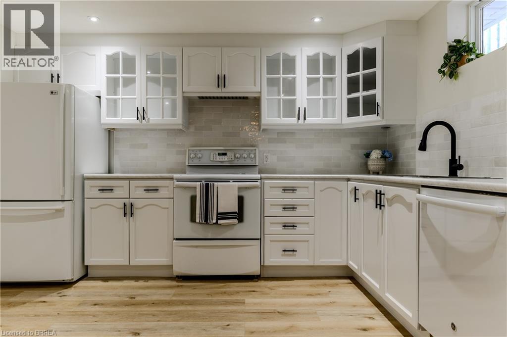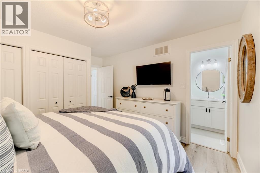 Catch the breeze—lake town living awaits at 5 Newport Lane in Port Dover. Located in the desirable Woodlands neighbourhood, this fully renovated all-brick bungalow blends modern comfort with functional multi-family living. Thoughtful updates throughout make this home move-in ready and designed for family flexibility. The main level features three generous bedrooms, including a primary suite with its own ensuite bathroom, plus a second full bathroom for the family. Bright open living and dining areas connect to a refreshed kitchen with contemporary cabinetry, made-in-Canada countertops, and stylish finishes. Featuring convenient main-level laundry adds ease for the primary household. An additional rear family room with large windows overlooks the yard and peaceful ravine, providing a natural backdrop. The lower level stands out as a complete second living space—two dwellings in one home. The suite includes two bedrooms, a full kitchen, its own laundry, and two large living or recreation areas, plus accessible entrance through the side garage door. This setup offers comfort, privacy, and independence for multi-family arrangements, in-law accommodation, adult children, or extended family stays. Set on a ravine lot with a brand-new 2025 deck, the backyard provides space for outdoor enjoyment, a hot tub, or quiet moments in a tree-lined setting. Modern updates throughout the home, including an upgraded 200-amp electrical panel, contribute to a truly move-in ready experience for the next owners. 5 Newport Lane combines space, flexibility, and lake town charm—just moments from the sandy shoreline of Lake Erie and the beauty of Port Dover. (70097285)