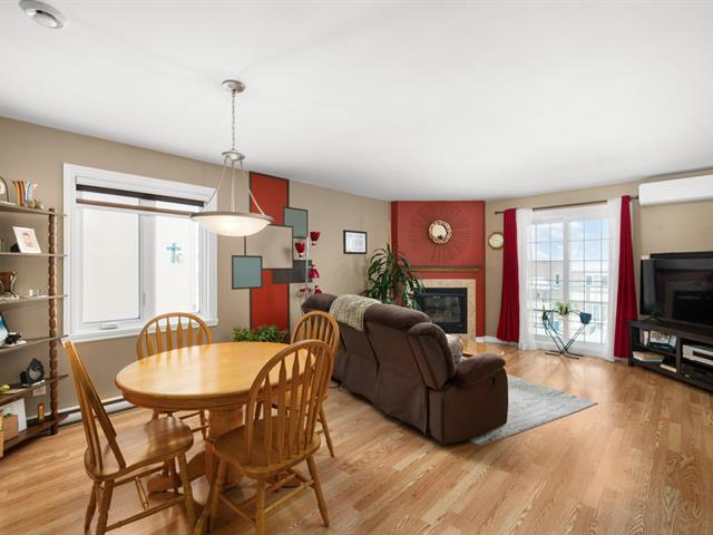 Beautiful 2-bedroom corner-unit condo for sale in Vaudreuil-Dorion. Features a spacious open-concept living area with a cozy gas fireplace, natural light, wall-mounted heat pump, and a large primary bedroom with walk-in closet. Includes two parking spaces and an outdoor storage locker. Ideally located within walking distance to public transportation and close to all amenities. A perfect blend of comfort, convenience, and tranquility. (39028679)