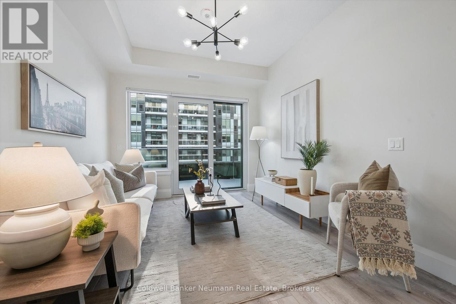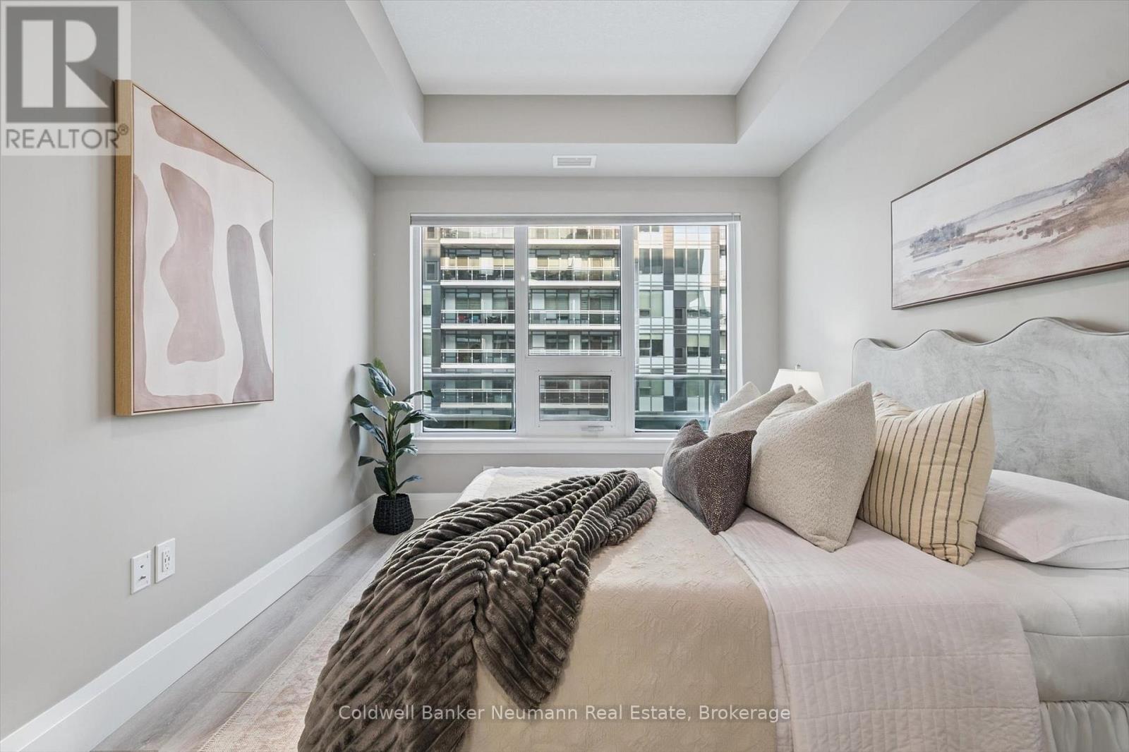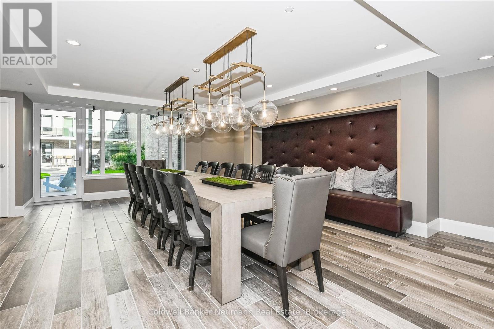 Located in Guelph's iconic and highly sought-after Metalworks community, this bright and spacious one-bedroom plus den condo offers a well-designed open-concept layout, featuring hardwood and ceramic flooring (no carpet throughout), and is filled with natural light (built in 2021, the 3rd building). It showcases beautiful views of the River and courtyard, along with glimpses of downtown from the 5th floor. The upgraded kitchen features granite countertops, a large island with breakfast bar seating, and stainless steel appliances, all of which are included. The large bedroom has both walk-in and linen closets.Thoughtful upgrades continue throughout this condo with all new light fixtures and custom blinds, adding a polished, move-in-ready feel. The generous living and dining area flows seamlessly to a private 115 sq ft patio, perfect for relaxing or entertaining. The den provides flexible space ideal for a home office, dining room, guest bedroom or reading nook. Additional highlights include in-suite laundry, a heated storage locker, and one underground parking space. Monthly fees include heat and water, adding to the convenience and value. Residents of the Metalworks buildings enjoy exceptional amenities, including a speakeasy lounge, party room, fully equipped gym, pet cleaning station, and more. Known for its strong sense of community, safety and secure environment, this well-maintained building is conveniently located in the heart of downtown Guelph. Steps from shops, restaurants, transit, GO Station, groceries, trails, parks, and schools, this is urban living at its best - stylish, walkable, and connected. (42032435)