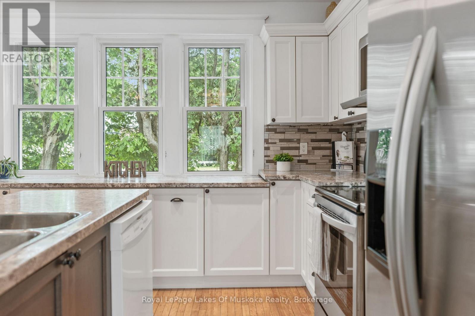 Just steps to Lake of Bays, this charming 1915 century home at 8 North Road offers that perfect Baysville blend of heritage character, everyday comfort, and an unbeatable in-town location. With the public dock directly across the street for swimming and paddling-and a boat launch at the end of the road-you can slip into the lake lifestyle in minutes while still being within easy walking distance of village amenities. Inside, you'll find 3 bedrooms, 2 bathrooms, and generously sized principal rooms that retain the warmth and personality you'd expect from a classic century home. The main floor features a welcoming living room and dining area, kitchen complete with stainless steel appliances and a centre island. The main-floor primary bedroom includes a walkout to the yard and is conveniently located near a 3-piece bath. Upstairs, two bright and spacious bedrooms-each with walk-in closets-share a 5-piece bathroom and enjoy access to a private balcony, where treetop views meet glimpses of the water. The basement provides excellent utility and workspace with workshop potential, a utility sink, and the home's forced-air heating system. Outdoors, the private backyard is framed by mature trees and level lawn, and includes a hard-wired DogWatch invisible fence-ideal for pets. A detached double garage with loft adds valuable flexibility for storage, hobbies, or future studio ideas. With the marina, brewery, parks, and the heart of Baysville all close by, this is a standout opportunity for a full-time residence, four-season retreat, or potential rental in one of Muskoka's most sought-after lake communities. (42032499)