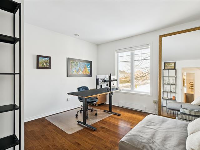 Discover this exceptional condo located in the heart of the Harmonie area, combining space, light, and privacy. With an area of 1,4138 sq ft, it offers a perfect balance of modernity, comfort, and tranquility. Upon entering, the spacious rooms and natural light create a warm and soothing atmosphere. The layout includes two bedrooms, an office ideal for remote work, and a large glass-enclosed sunroom filled with light, perfect for relaxation or entertaining. Each room fosters a calm and cozy ambiance, conducive to a superior quality of life. A double attached garage with storage space completes this exceptional property. (43208476)