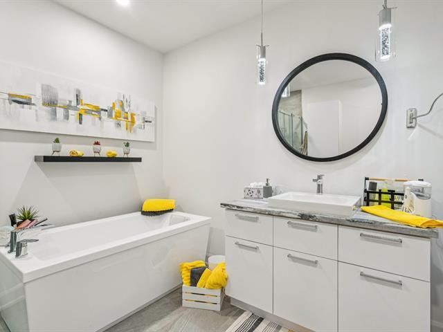 Sublime condo de 1 216 pc situé dans le secteur recherché de Blainville! Cette unité de coin séduit par sa luminosité abondante, ses plafonds de 9 pieds et ses magnifiques planchers. L'aire de vie ouverte met en valeur une superbe cuisine moderne et fonctionnelle, bonifiée de plusieurs extras. On yretrouve 2 chambres, dont une suite principale avec walk-in, une salle de bains complète avec douche vitrée et bain séparé, ainsi qu'une salle d'eau pratique avec espace lavage. Patio, garage chauffé, ascenseur, stationnement extérieur, rangement intérieur et emplacement idéal comblent le tout. Une propriété clé en main à découvrir sans tarder! (47521917)