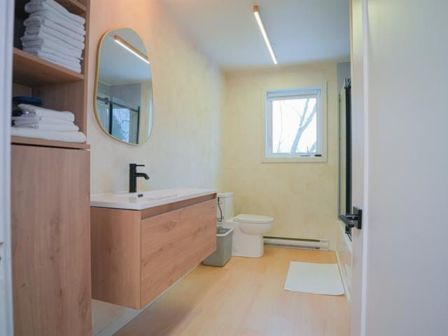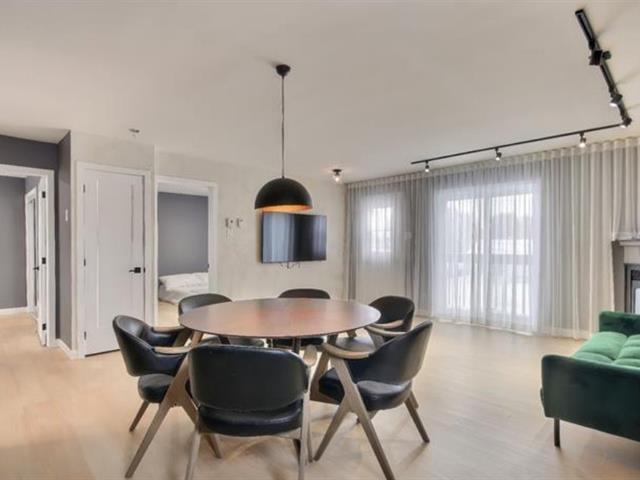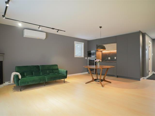 Available February 1, 2026 (winter season or annual rental). Modern 2-bedroom, 1 full bathroom apartment in the heart of Saint-Sauveur. Just steps from shops, restaurants, and outdoor activities, this bright and stylish unit offers the perfect blend of comfort and convenience. Ideal for year-round living or as a charming pied-à-terre. With its high-end finishes, this apartment exudes style and sophistication. The modern kitchen is complemented by an integrated refrigerator for a sleek, contemporary look. Two outdoor parking spaces are included. Indoor garages are not included. (49706735)