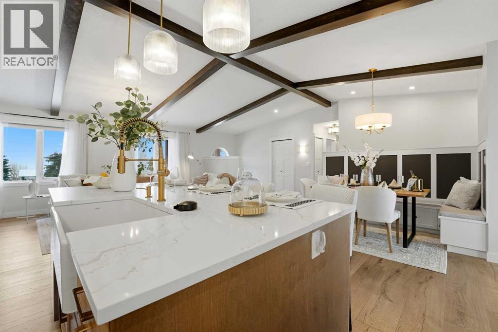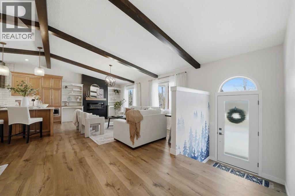 Set on a scenic acreage just 2 minutes East of Red Deer, this modernized home offers an exceptional combination of beautiful living space, outdoor amenities, and infrastructure—including a 30x40 heated shop and an attached double heated garage. The heart of the home is a recently redesigned chef-like kitchen that balances clean design with thoughtful detail. A generous island anchors the space, complemented by a pot filler, custom spice storage, integrated cutting board, and high-end appliances. Adjacent to the kitchen, the dining area features custom bench seating with concealed storage, opening naturally into a comfortable living space highlighted by a contemporary shiplap facing electric fireplace and custom mantel. Durable luxury vinyl plank flooring, refreshed paint, updated trim and doors, and modern lighting carry throughout the main floor. The primary bedroom functions as a true retreat, complete with a private ensuite showcasing heated floors, double sinks, and a large walk-in shower. Two additional bedrooms and a fully updated main bathroom complete the upper level. Downstairs offers excellent flexibility, with a wet bar off of the spacious family room warmed by a gas fireplace, two more bedrooms, and a full bathroom—making it ideal for guests or extended family. Major system improvements have already been completed, including a new septic system (2021), replacement of furnaces, hot water tank, pressure tank, and the full removal of poly-B plumbing—ensuring long-term reliability and confidence for the next owner. Central A/C & permanent Gemstone exterior lighting is an added luxury. Outdoor living is equally impressive. A covered deck with new railing overlooks the expansive fenced yard, while a 2023 hot tub provides the perfect place to unwind. For those needing serious workspace or storage, the 30x40 heated shop is fully outfitted with radiant heat, floor drains, metal walls, mezzanine storage, a commercial-grade air compressor, and an oversized overhead door. The attached 23x28 heated garage and extensive paved parking easily accommodate RVs, trailers, and heavy equipment. Additionally you will find a "she-shed" which is fully insulated and heated with new LED lighting. This property stands out for its quality of upgrades, exceptional utility, and peaceful setting just minutes from city amenities. A rare opportunity to secure a stunning move-in-ready acreage with spectacular year-round views, space, and infrastructure already in place. This house truly feels like a home. (31579533)
