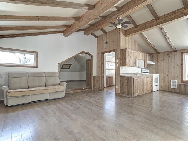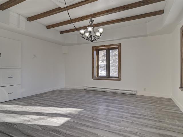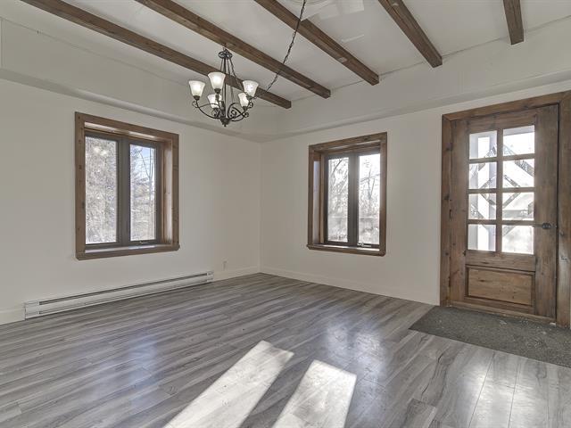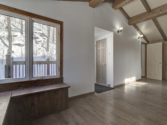 Vacant occupancy - Charming 3-bedroom, 3-story house situated on a 10,000+ sq ft private lot - perfect for nature lovers and those with multiple pets. Space available for additional buildings (garages, enclosures, etc.). Close to the village and amenities. Each floor is connected by an interior staircase, but the one between the main floor and garden level is currently blocked but can easily be reconnected if needed. Living quarters on the garden level. All floors have good natural light and a view of Lake of Two Mountains. Features include laminate flooring, ceramic tiles, PVC windows, a steel and shingle roof, and two practical outdoor shed (40189881)