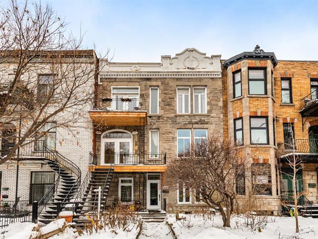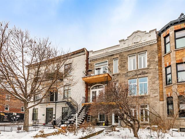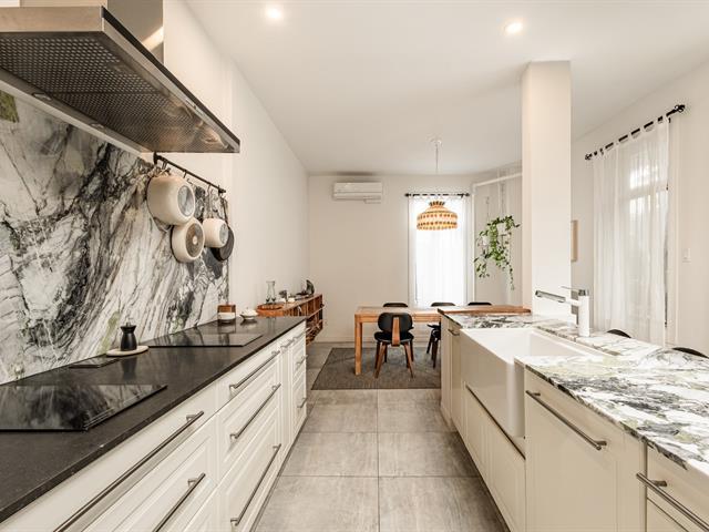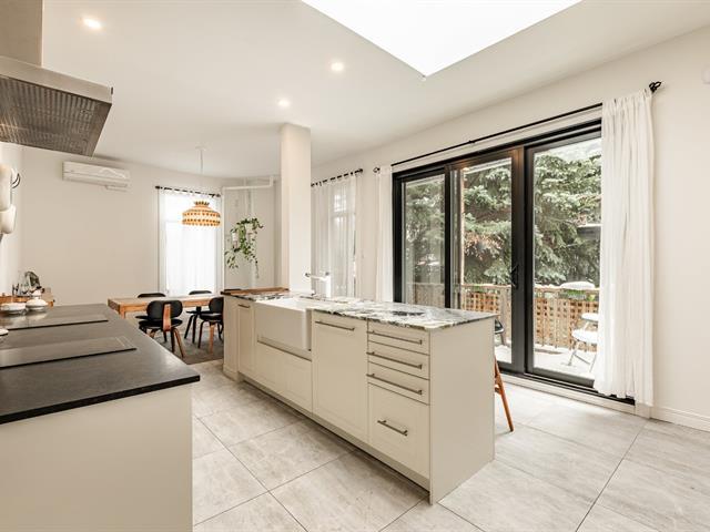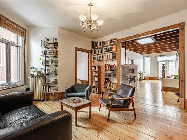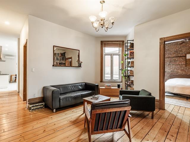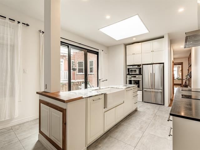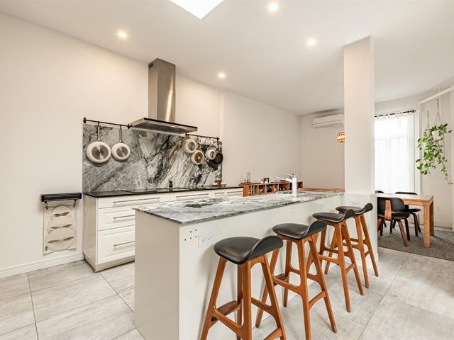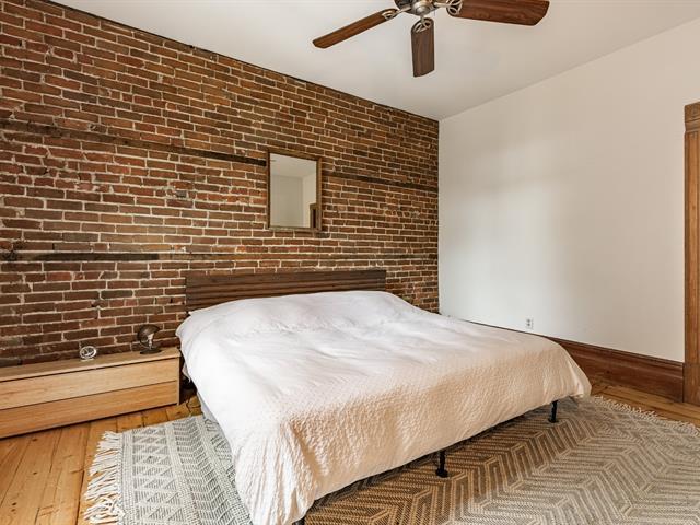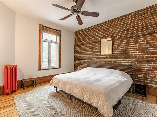 EXCEPTIONAL CONDO - TOP FLOOR. Abundant windows provide beautiful natural light. Exposed brick walls, high ceilings, and other original architectural details lend the space a warm and authentic atmosphere. The current layout offers two bedrooms, with the possibility of creating a third bedroom to suit your needs (office, children's room, or guest room). The gourmet kitchen, adjacent to the dining room, is ideal for both everyday meals and entertaining. The bedrooms are generously sized, one with a walk-in closet. Walking distance to several parks and amenities in the Plateau area. (40777750)