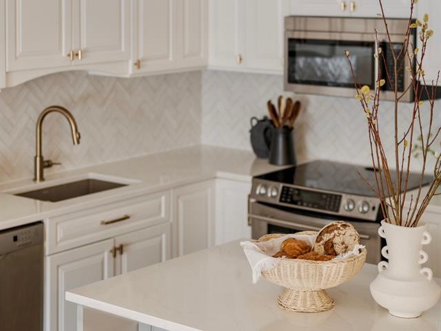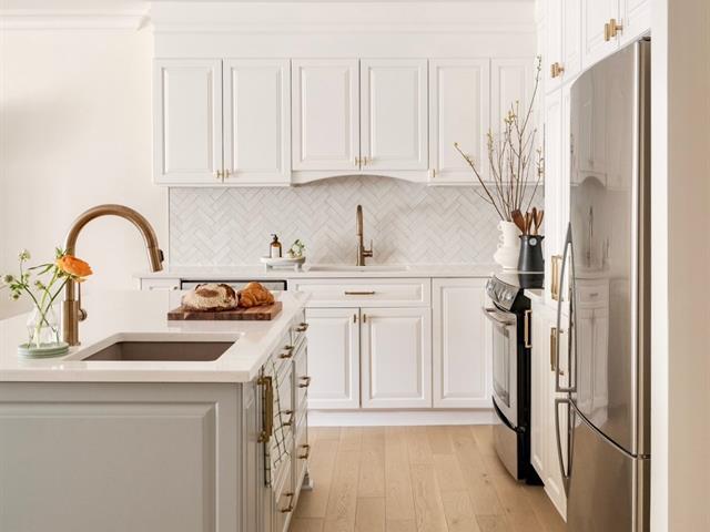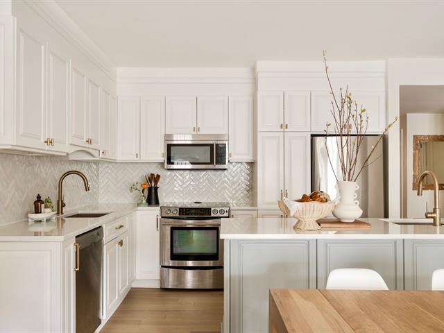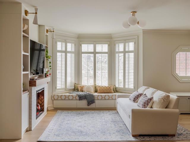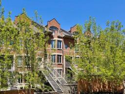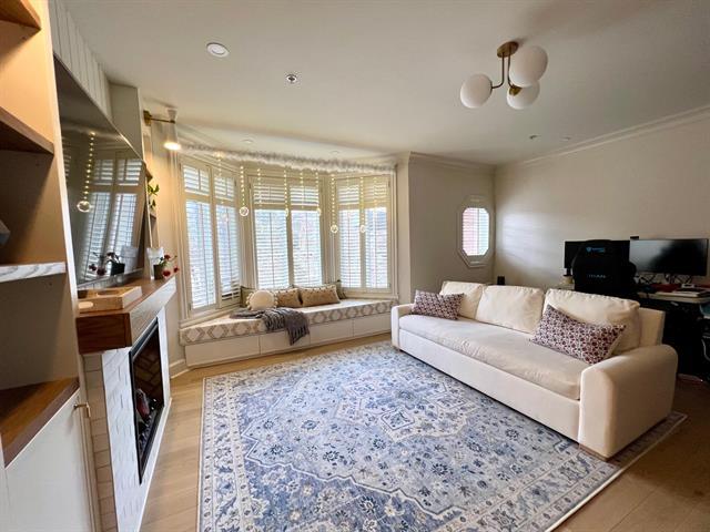 ADJACENT OUTREMONT. Stunning ground-floor townhouse-style condo, fully renovated, located on a quiet cul-de-sac. Open-concept living, dining, and kitchen, 2 bedrooms and 2 bathrooms. Multi-zone heated floors, central air conditioning, electric fireplace, private entrance, and semi-private elevator with garage access. Landscaped front yard and private fenced backyard. Fast electric car charger. One parking included, second parking possible with extra fee. Close to universities, hospitals, metro, REM, and all amenities. Available May 1, 2026. (40818374)