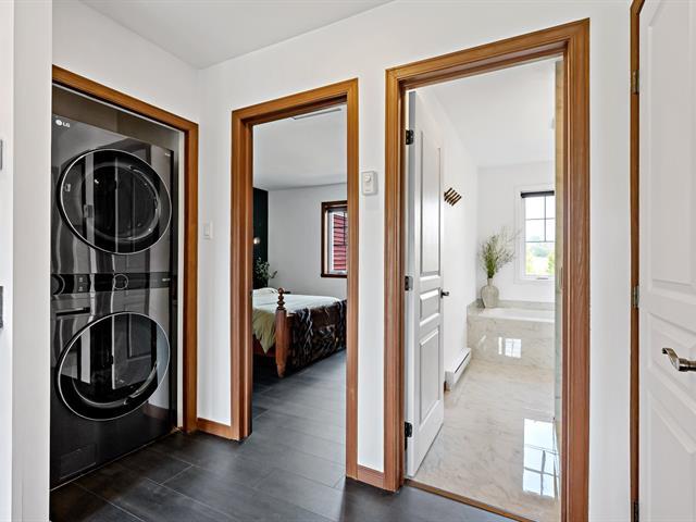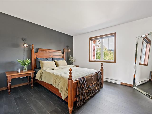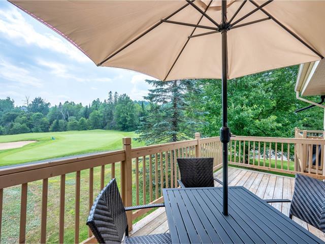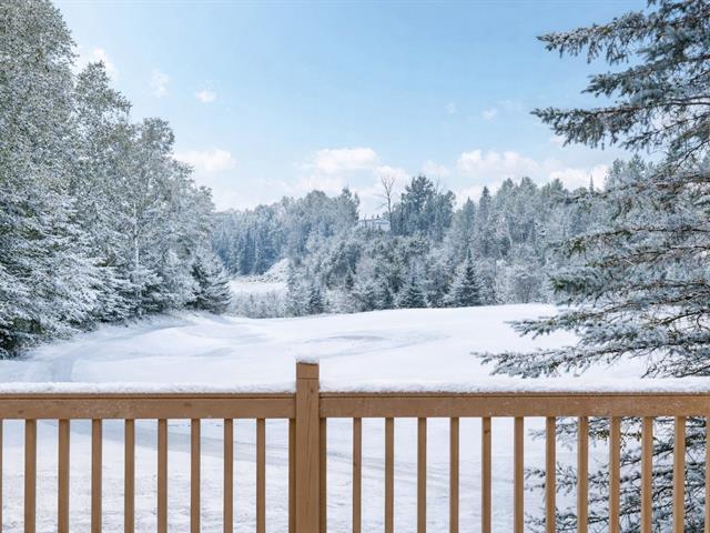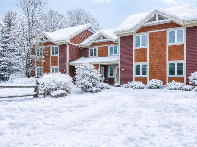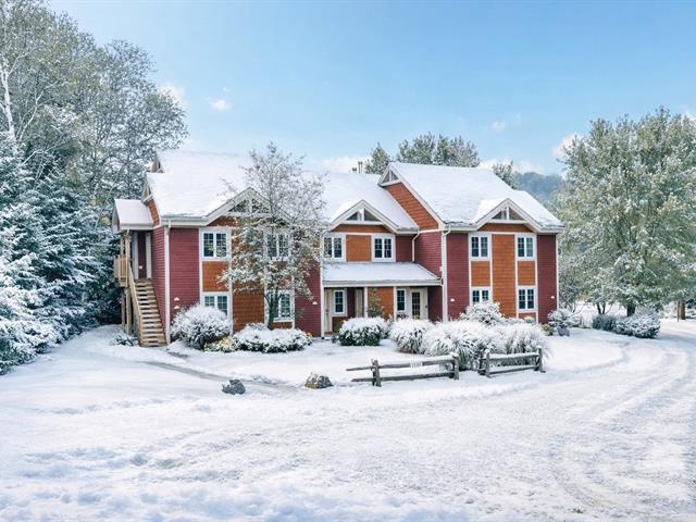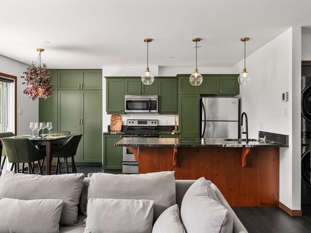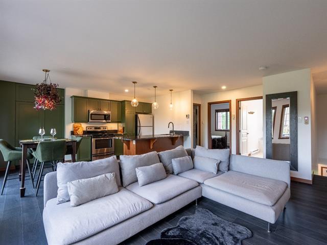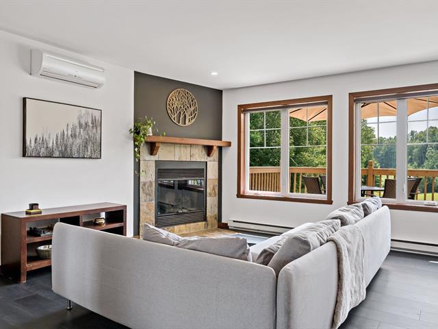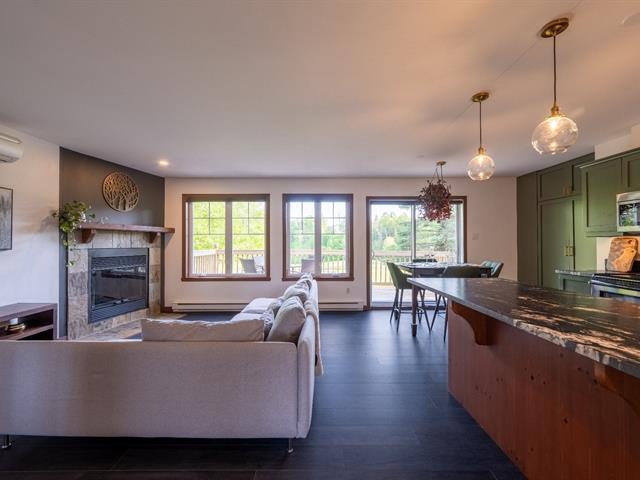 Abundant natural light thanks to the south-facing balcony. High-end unit: granite and marble countertops, separate shower and bathtub with mountain view, wood-burning fireplace, and access to 2 shared pools. Prime location: 1 minute from the Scandinave Spa, kayak launch, bike path, and 5 minutes from the ski slopes. Short-term rentals allowed. Potential annual income: $32,000 to $42,000. GST/QST already paid. (55254393)