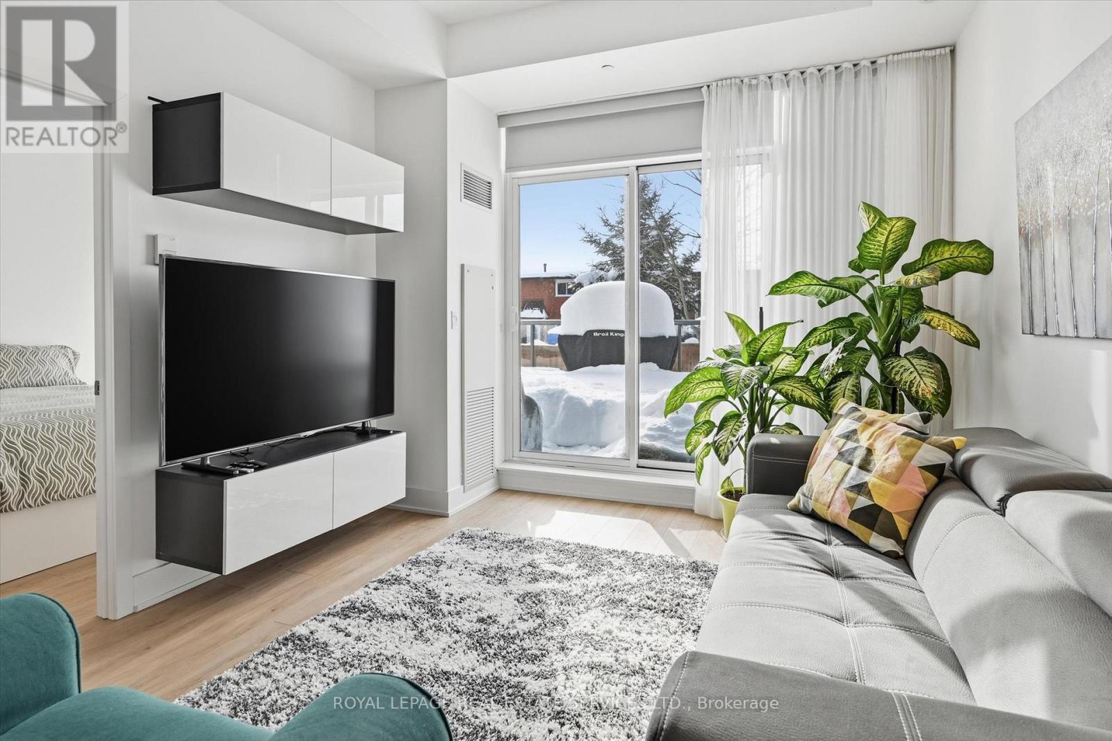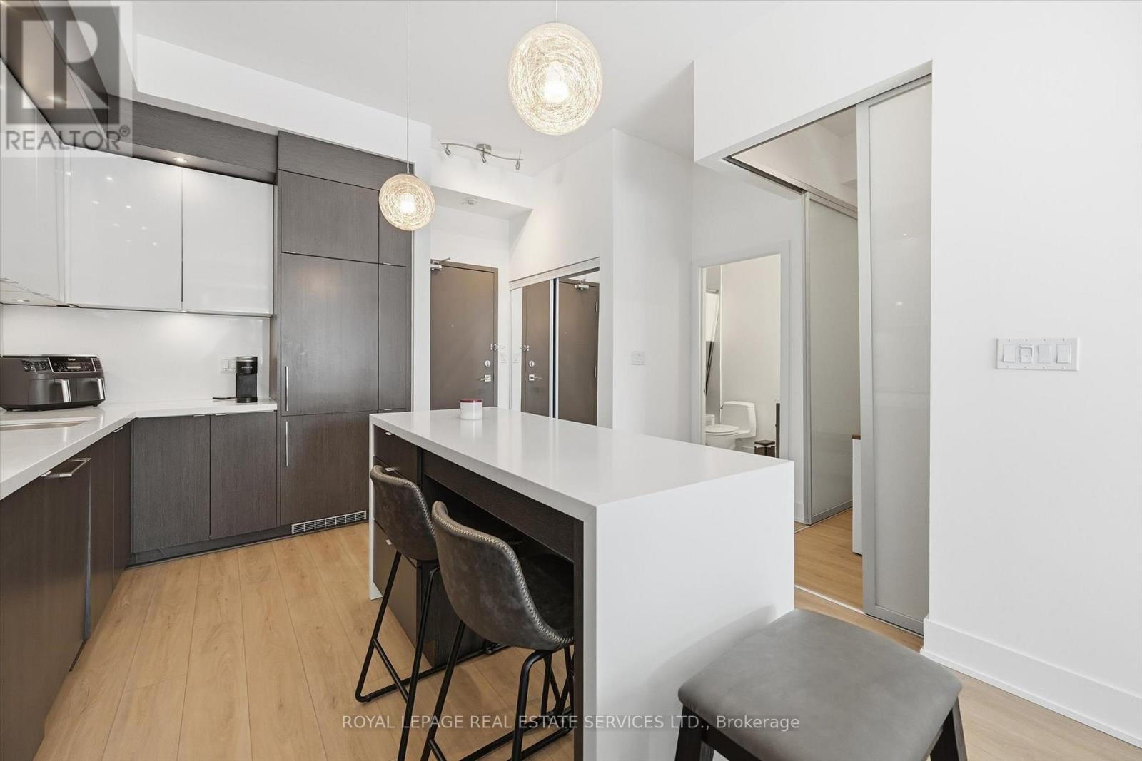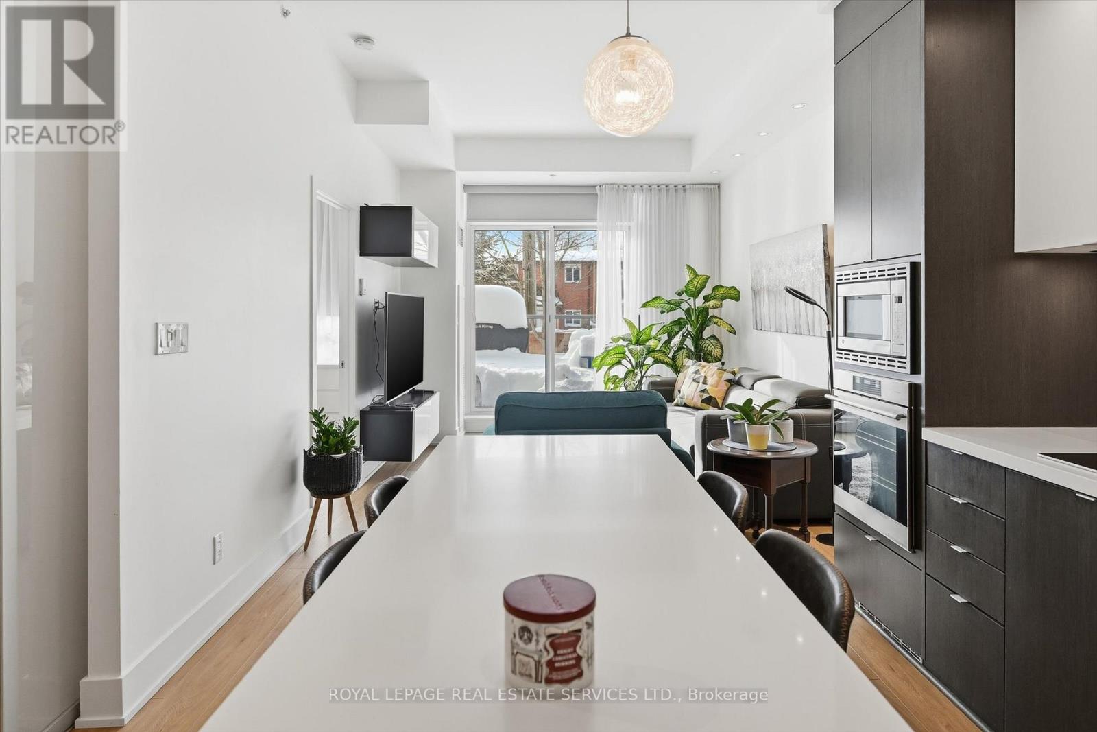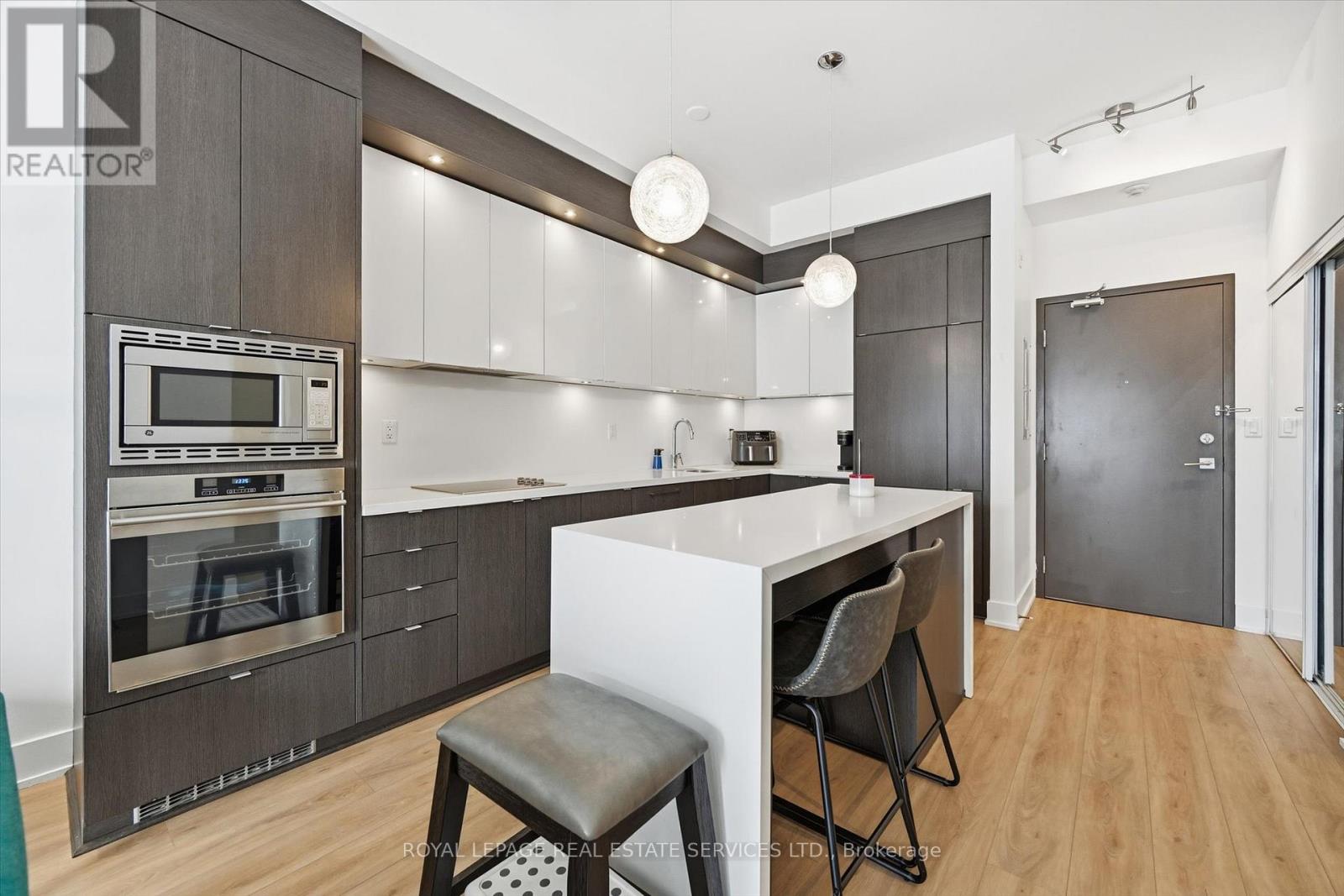 BOUTIQUE FOUR-STOREY CONDOMINIUM! STYLISH ONE BEDROOM PLUS DEN! Welcome to this beautifully appointed one bedroom plus den suite offering 10' ceilings, wide-plank luxury vinyl flooring, and a thoughtfully designed open concept layout ideal for modern living and entertaining. The living area seamlessly extends to an impressive 21' x 12' private terrace with sleek glass panels creating an exceptional indoor-outdoor lifestyle. The contemporary kitchen is both stylish and functional, featuring granite countertops, an abundance of cabinetry, integrated appliances, and a generous island with seating for four. A spacious primary bedroom, versatile den perfect for a home office or guest space, a spa-inspired four-piece bathroom, and in-suite laundry completes the space. Two side-by-side parking spaces conveniently located near the elevator and a dedicated storage locker are included. The monthly condominium fee of $684.23 covers building insurance, common elements, heat, central air conditioning, water, and parking. Residents of the desirable Mod'rn Condominium enjoy exceptional amenities, including a party room with fireplace and full kitchen, rooftop patio with BBQ's, dining and lounge areas, and visitor parking. Ideally situated close to parks, shopping, restaurants, entertainment, Burlington Centre, and vibrant downtown Burlington. A commuter's dream with easy access to public transit, major highways and the GO Train. An exceptional Burlington location, perfectly positioned for today's urban lifestyle. (42034185)