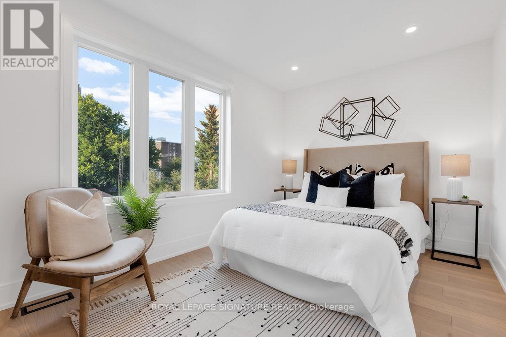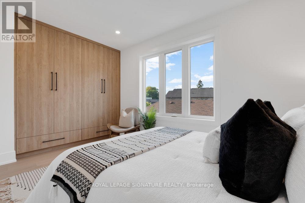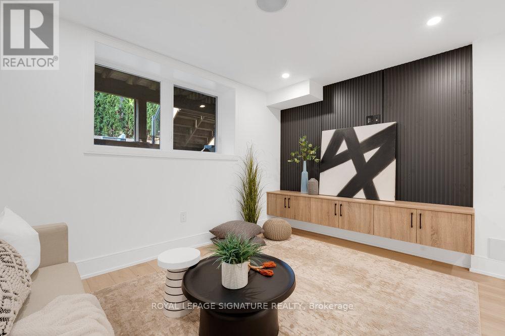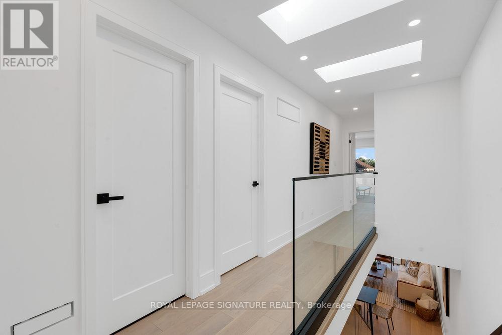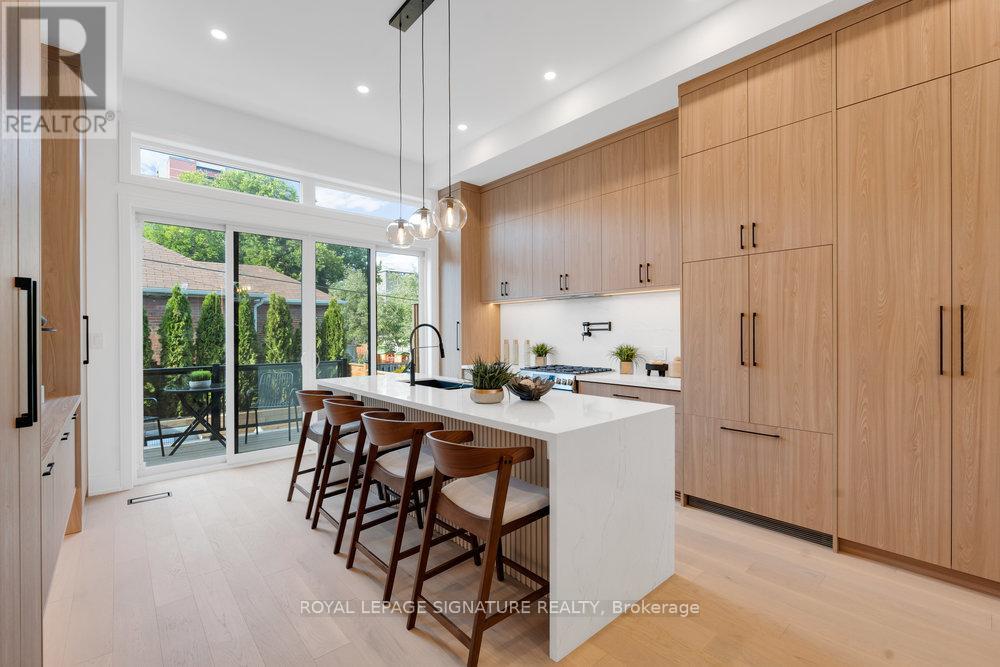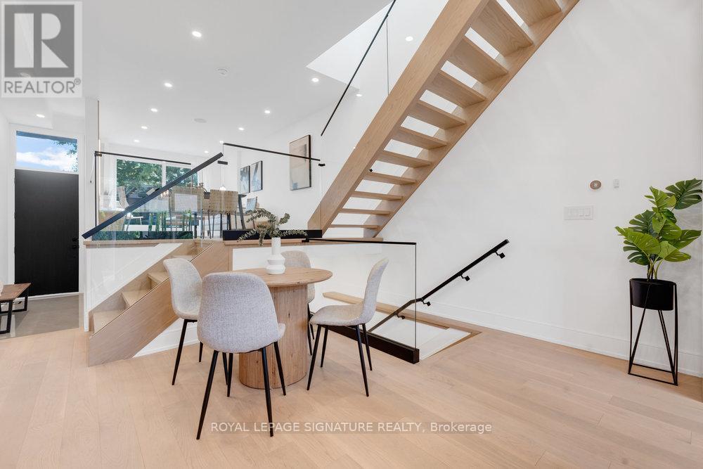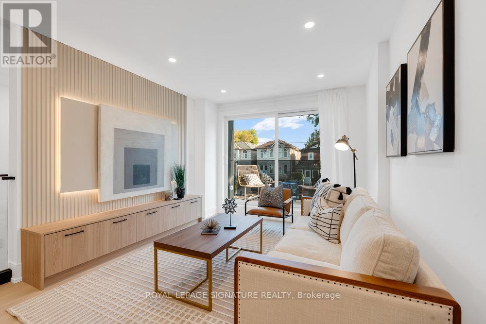 Your private oasis in the prime Broadview North neighbourhood of East York!! Welcome to 74B Floyd Ave! This stunning custom built, detached 2-storey modern masterpiece is nestled in a family friendly community, only minutes from top schools, parks, restaurants, shopping, TTC and DVP! This thoughtfully designed home stuns with beautiful engineered hardwood floors, pot lights and in-ceiling speakers throughout. The sun-drenched living room boasts an impressive feature wall, custom floating built-ins, speakers and floor-to-ceiling sliding doors to a gorgeous balcony with frameless glass railings. The combined dining area makes the flow of entertaining guests effortless! The gourmet kitchen is a chefs dream with a quartz waterfall centre island with ample seating, quartz backsplash, built-in panelled fridge, gas range with a convenient pot filler, an abundance of floor-to-ceiling cabinetry/storage and an additional breakfast area. Walk out from your kitchen to your private entertainers deck and spacious backyard that features privacy trees and fencing, perfect for summer nights, outdoor fun, and unforgettable gatherings! The upper level with double skylights highlight a primary retreat that includes custom built-in closets along with a lavish five-piece ensuite with warm finishes, double vanity, glass shower with a rain head and a custom niche. In addition to the primary there are two generous sized bedrooms with custom built-in closets and ample natural light. The family bathroom also has warm finishes with a floating vanity, rain shower head and shower niche. On the lower level, there is direct access to the garage and a cozy recreation room with built in speaker and floating cabinetry. A convenient 3 piece bathroom in the basement allows for the opportunity to use this space as a 4th bedroom! Don't miss this rare opportunity to own a turnkey designer home in one of Torontos most desirable neighbourhoods! (42034556)