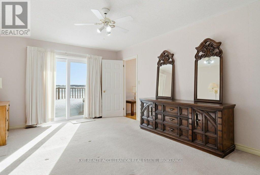 Located on the north shore of Hay Bay, this bright waterfront home offers three bedrooms and four bathrooms with a layout designed for comfort and flexibility. Large windows throughout the home provide beautiful views of the backyard and Hay Bay, filling the living spaces with natural light.The main level features multiple walkouts to the back deck, including one from the living room and two from the main floor bedrooms. Each main floor bedroom functions as its own private suite, complete with a walk-in closet and ensuite bathroom. The kitchen includes a bright breakfast nook overlooking the water, creating a welcoming space for everyday living.The lower level offers additional living space with a rec room that walks out to the backyard, a bedroom, and a three-piece bathroom, providing excellent in-law suite potential. The backyard is fenced for added safety while still allowing full enjoyment of the waterfront setting. Additional features include a two-car attached garage and a convenient location just a three-minute drive to Sherman's Point boat launch and playground. (42034972)