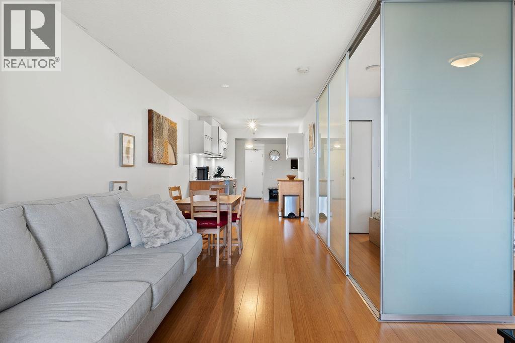 Welcome to this BEAUTIFUL corner Unit at Ginger. This RARE oversized 1 Bedroom & Den, 1 Bath apartment comes with A/C, and sits on the quiet side of the building! The Den could EASILY be a second bedroom and is huge! Exceptionally well maintained at 780 SqFt, this unit boasts a wide open floorplan, perfect for functional living and entertainment. Many upgrades throughout including the washer/dryer, dishwasher, oven, stove top, blackout blinds and more. Large Primary Bedroom fits a king size bed with space left over. The building is AIR BNB ALLOWED, comes with 1 parking & 1 Storage in the heart of Downtown Vancouver. Close to Transit/Skytrain, coffee shops, plenty of restaurants, speak easy bars, recreation, grocery stores. (32383112)