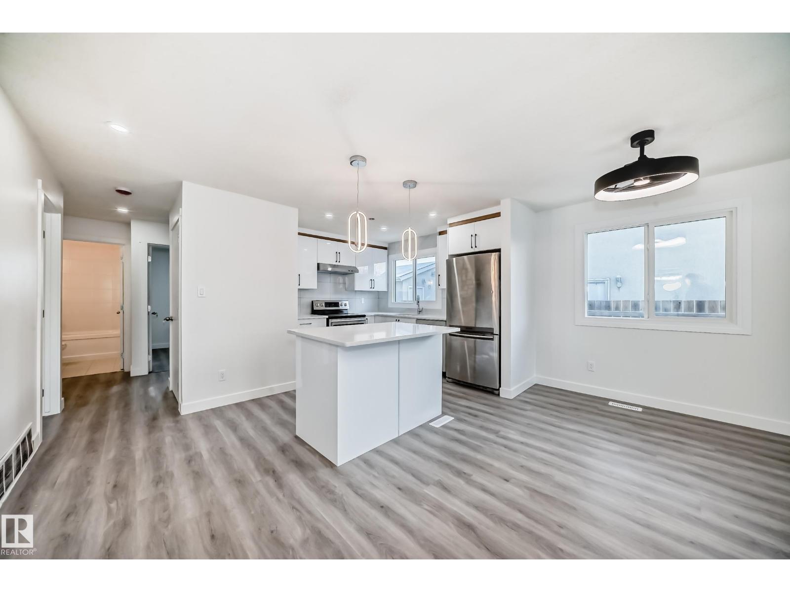 Welcome to this beautifully renovated bungalow duplex offering over 1,900 sq. ft. of bright, open living space with 5 bedrooms. The main floor features a brand-new kitchen with a large island, spacious dining area, and a stunning great room with a new tiled fireplace. You’ll also find three bedrooms, a stylish 4-piece bathroom, and convenient main-floor laundry. The fully developed basement adds exceptional flexibility with a second kitchen, 4-piece bathroom, laundry room, and two large bedrooms—perfect for extended family or additional living options. With over $100K in upgrades and renovations including a brand new roof this home offers it all! Enjoy a generous backyard and an ideal location just steps from Fraser Park, a short walk to the elementary school, and minutes to shopping, restaurants, Manning Town Centre & Clareview Rec Center. Getting around the city is easy being only minutes from Anthony Henday. Move-in ready and fully updated from top to bottom. (33770299)