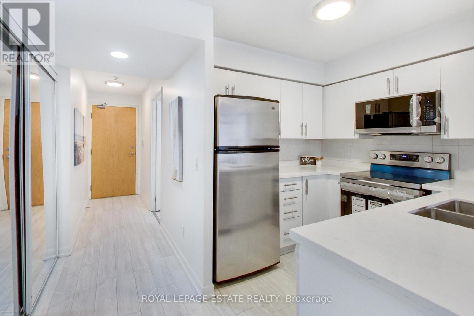 No more shoebox living - enjoy approximately 715 sq feet, the largest 1+1 in the building. Freshly painted and recently renovated with a smart, highly functional layout that lives more like a two room suite. The fully renovated kitchen features quartz countertops, backsplash, modern cabinetry, and brand-new LG stainless steel stove, LG hood vent/microwave and Whirlpool stainless steel dishwasher, installed as part of the recent renovation. New vinyl plank flooring flows seamlessly into the living space, complemented by brand new light fixtures in the living room and bathroom. The enclosed den functions as a true second room, complete with a full door and closet, and was previously used as a bedroom - a rare and valuable layout not often found in 1+1 units. Enjoy full-service amenities including indoor pool, gym, sauna, virtual golf, billiards, party room, guest suites, visitor parking, and 24 hour concierge. The building has been recently upgraded with renovated hallways, concierge area, and amenities. Perfectly located in the heart of North York, with direct underground access to North York Centre Station and Sheppard Station. Steps to shopping, dining, and entertainment, with quick access to Highway 401. Owner occupied, exceptionally well maintained, and move-in ready. Includes parking and locker. (42036060)
