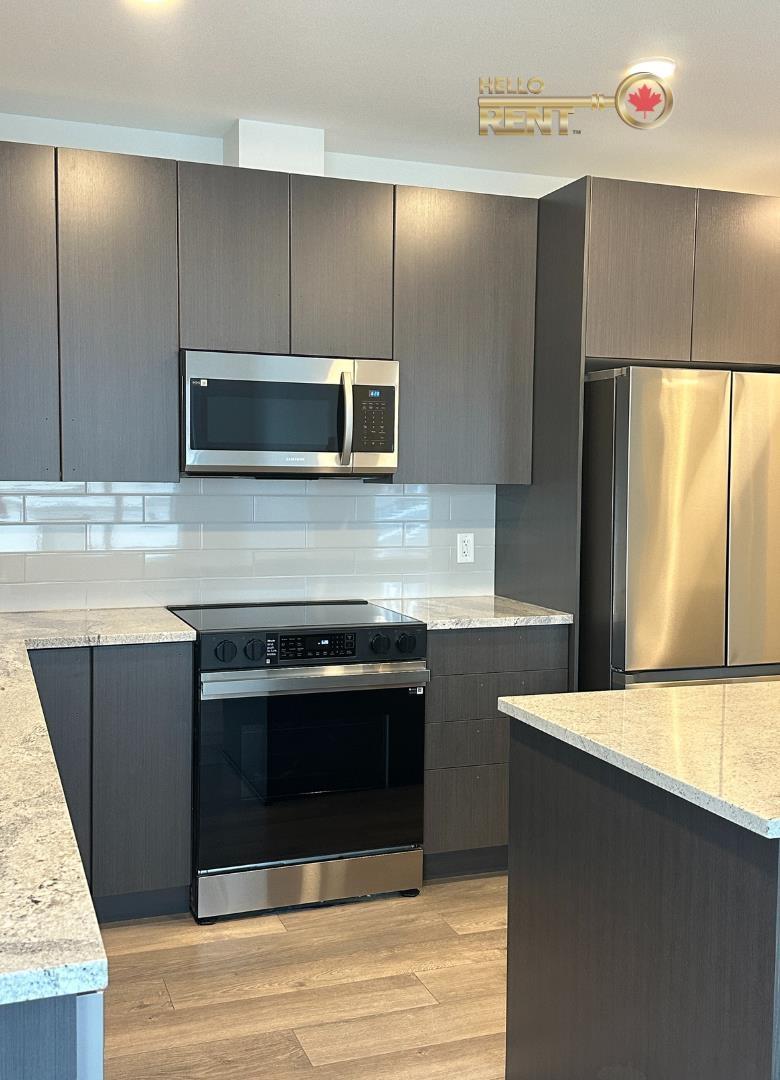 Avail Mar 1/26 Min 1 Year Term Unfurnished Pets on Owner Approval & Closely Monitored 1 Parking Space & 1 Storage Locker Incl Professionally Managed by Hello Rent Welcome home to Canvas, where suburban comfort meets nature. This corner unit features an open layout with 9' ceilings, laminate flooring, and private patio perfect for relaxing or entertaining. The modern kitchen boasts quartz countertops, Samsung SS appliances, and under-cabinet lighting. The primary bedroom offers a spa-like ensuite. A versatile second bedroom perfect for guests, kids, or home office, is complemented by a full bathroom. Enjoy exclusive access to Canvas Club with indoor amenities, fully equipped gym, and furnished outdoor space. Near transit, shopping, schools & Hwy 1. Tenant Insurance required at move-in. (32383469)